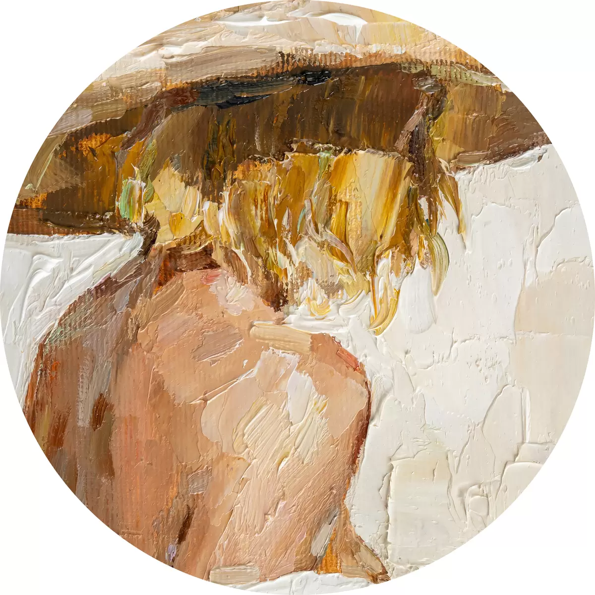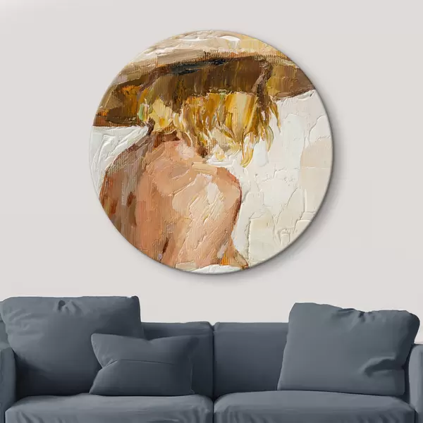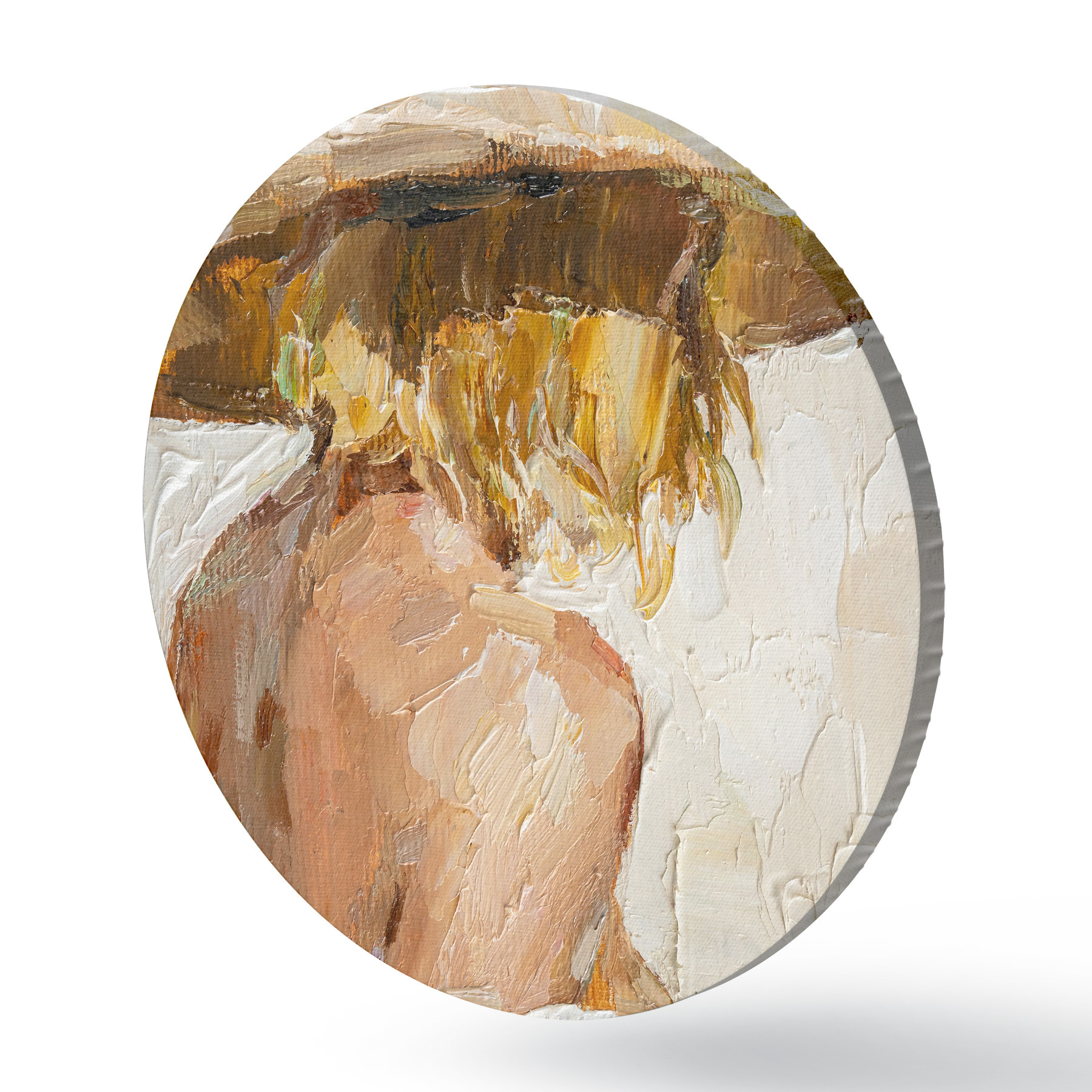 Runde Gemälde Porträt einer Frau von hinten in Öl r37061