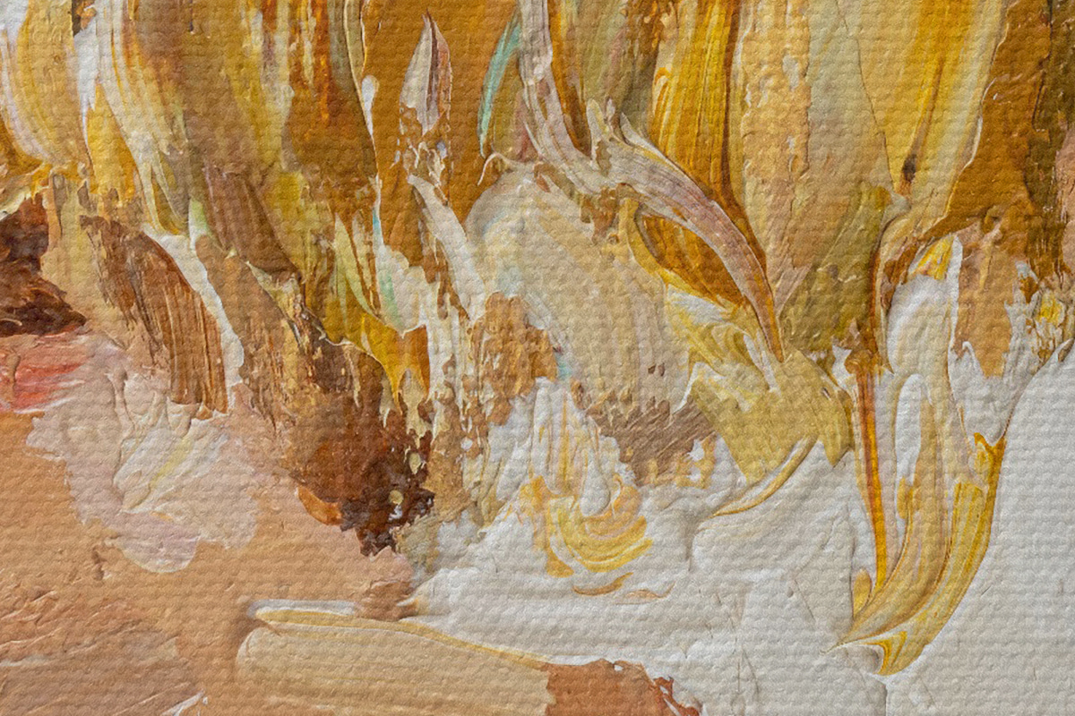 Das Gemälde kann sofort nach Erhalt aufgehängt werden. Das Gemälde wird auf einen 2 cm breiten Holzkeilrahmen aufgespannt.
