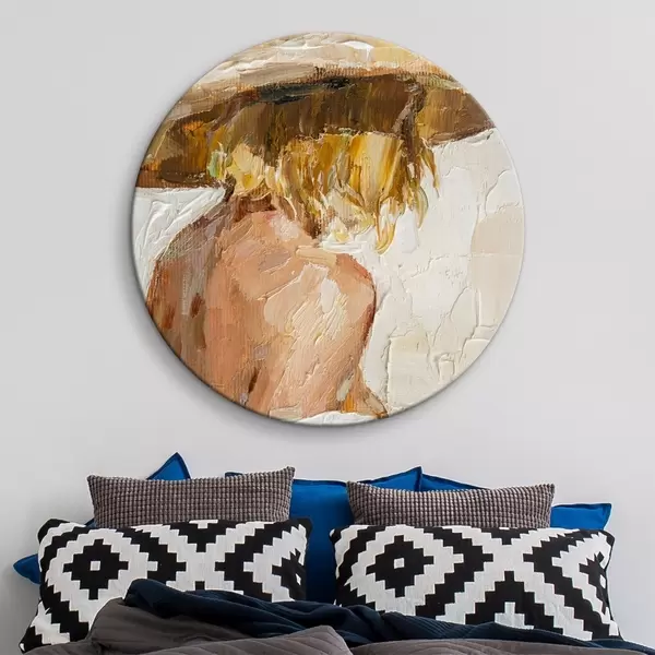 Runde Gemälde Porträt einer Frau von hinten in Öl r37061