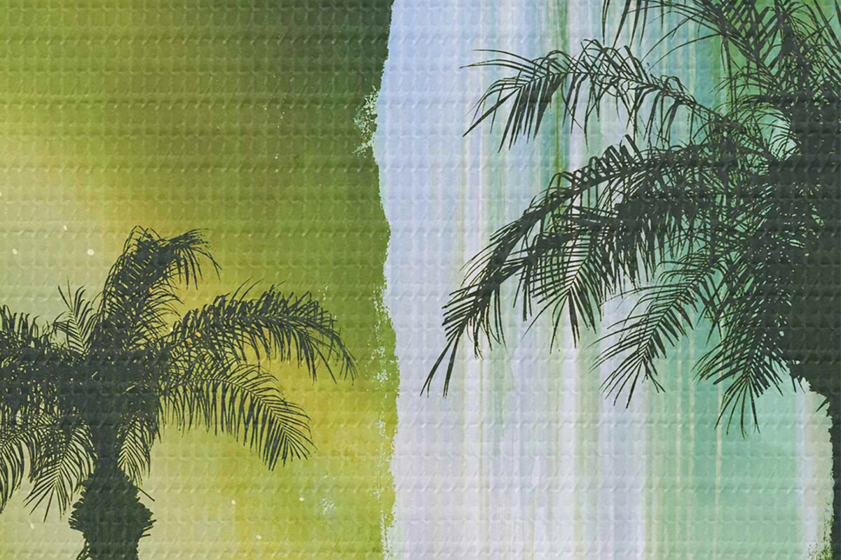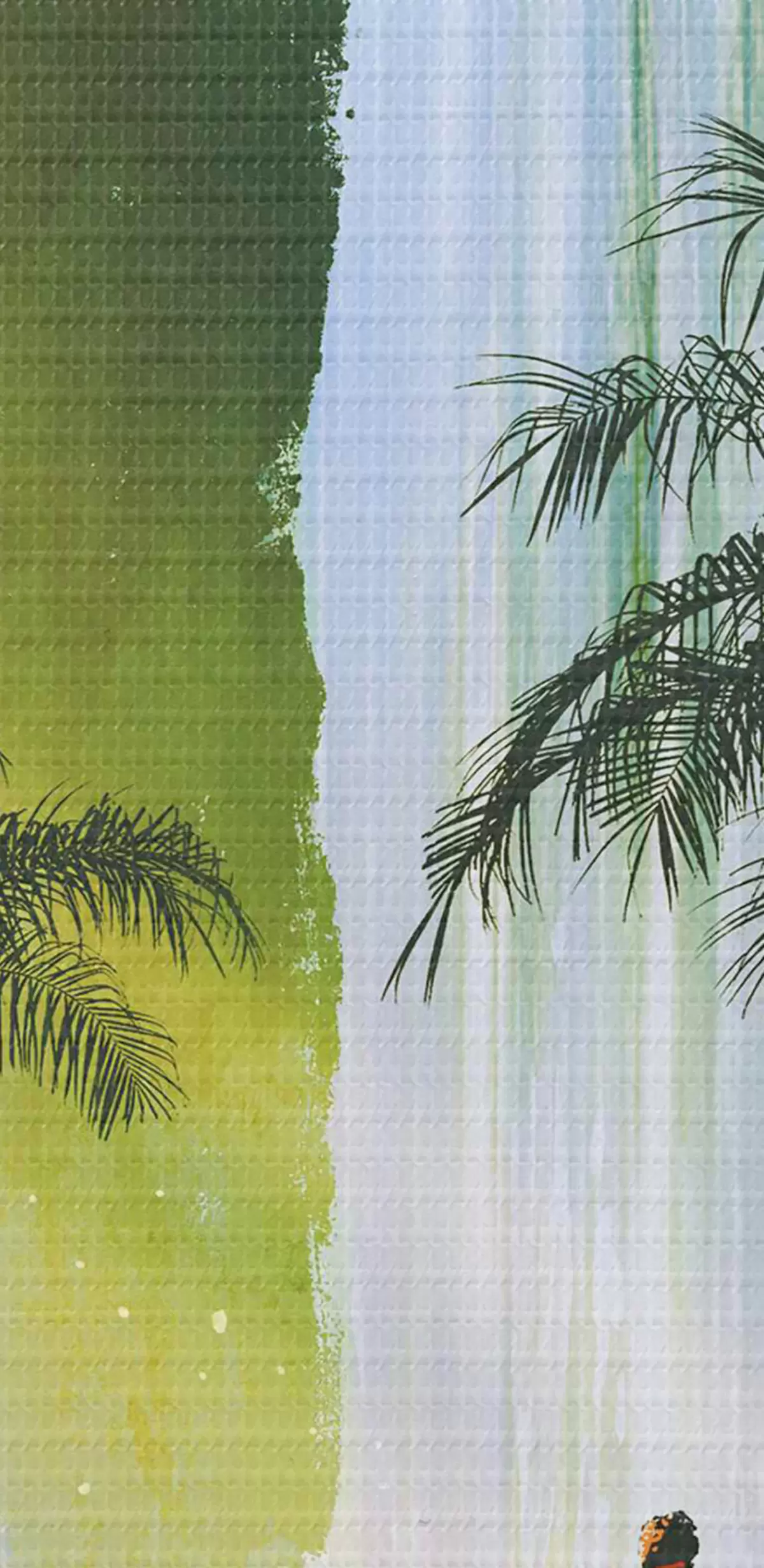 Um die Leinwand auf Keilrahmen zu spannen, ohne das Bild zu beschädigen, verwenden wir ein gespiegeltes Bild.