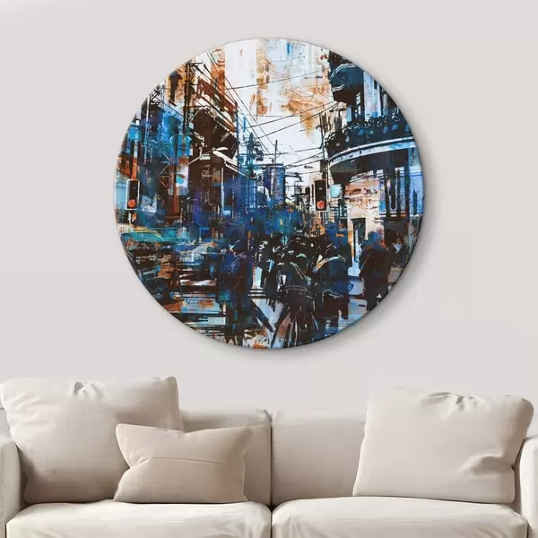 Runde Gemälde Straße mit Gebäuden und Menschen r37087