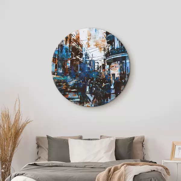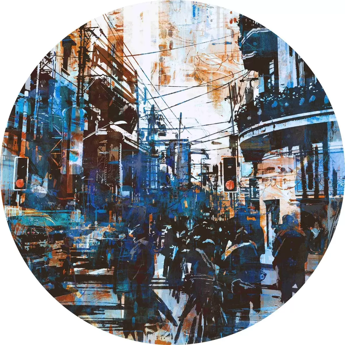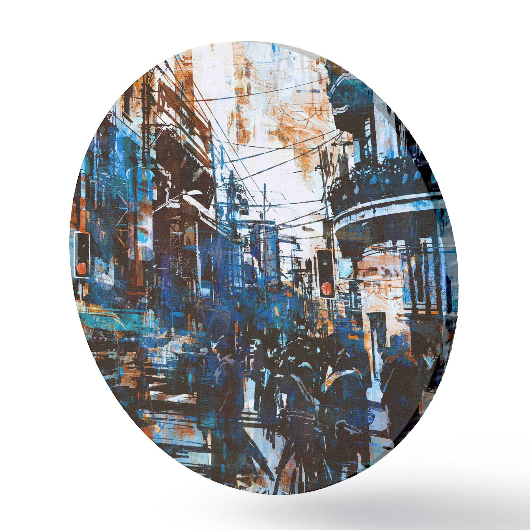 Runde Gemälde Straße mit Gebäuden und Menschen r37087