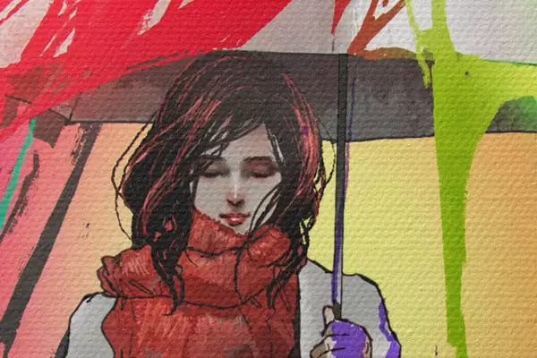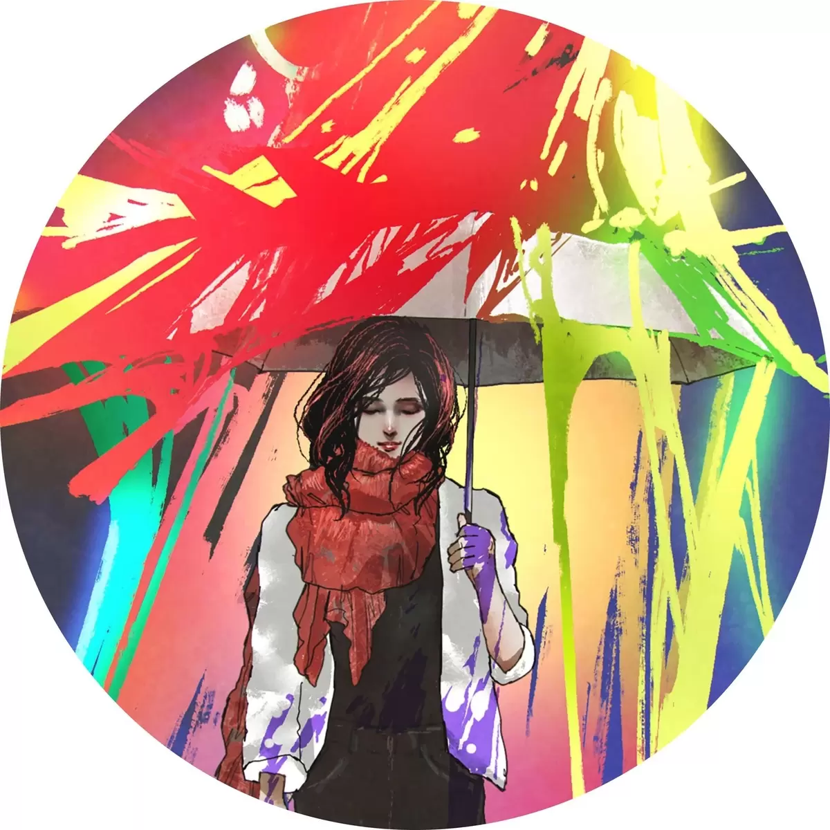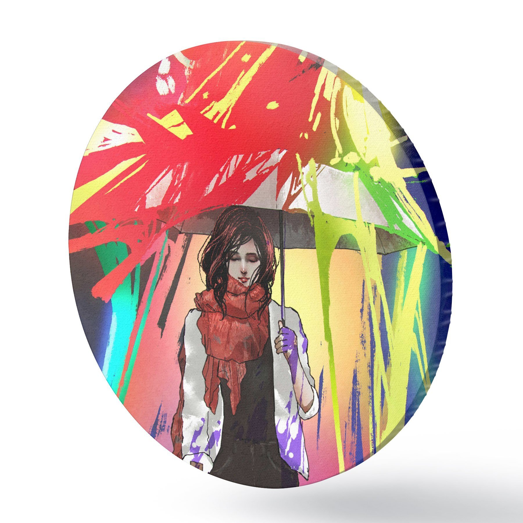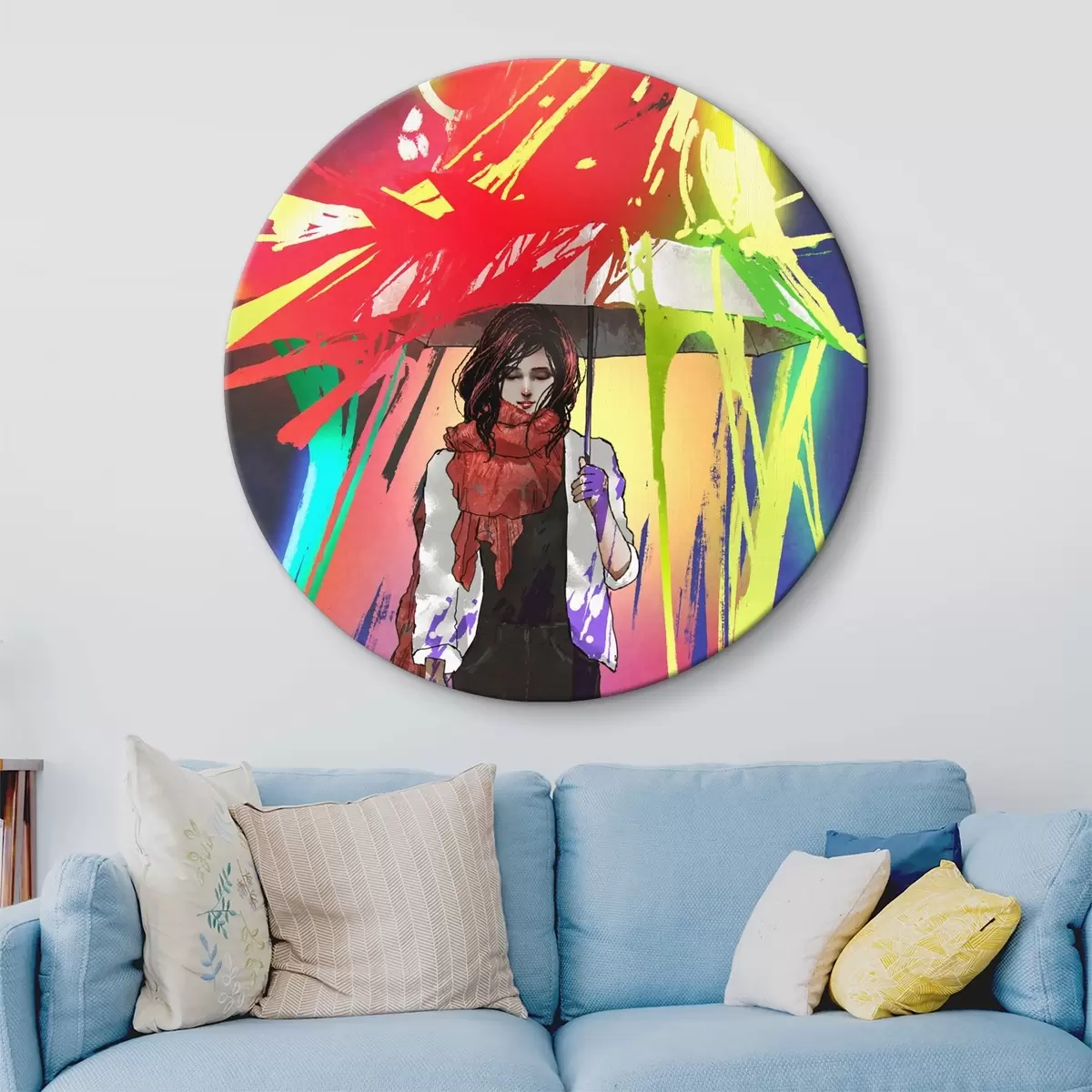Runde Gemälde Frau hält einen Regenschirm r37089