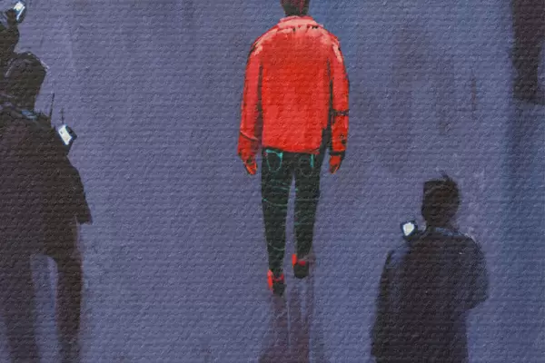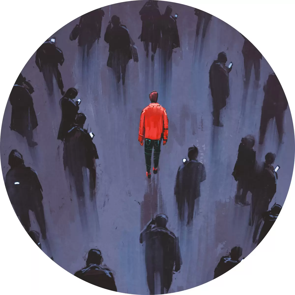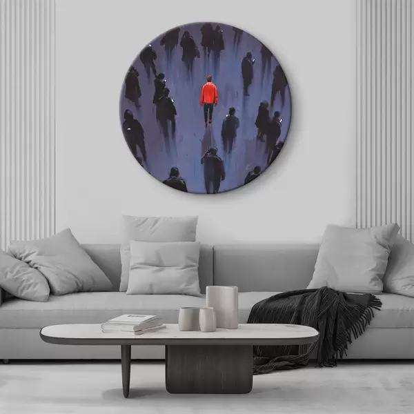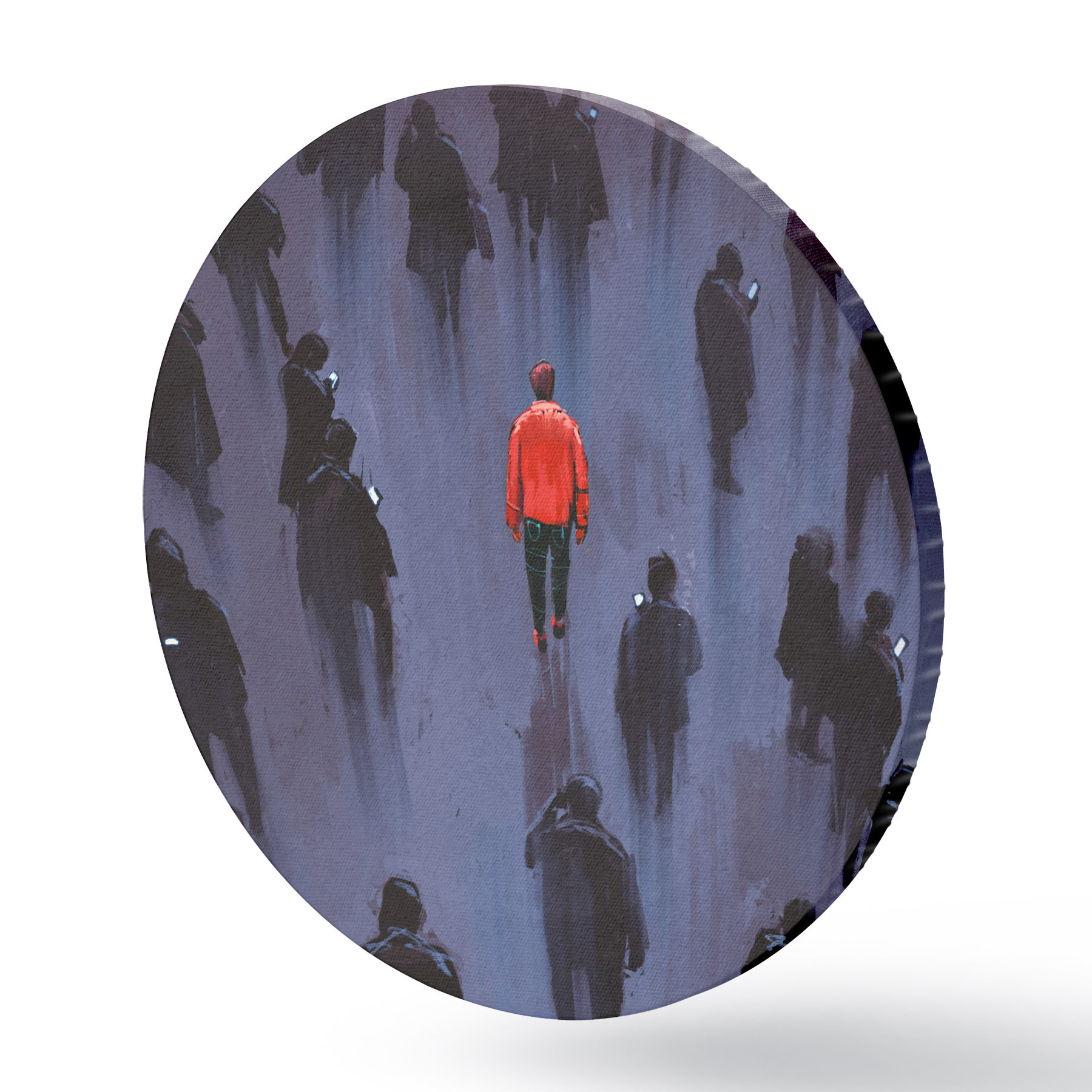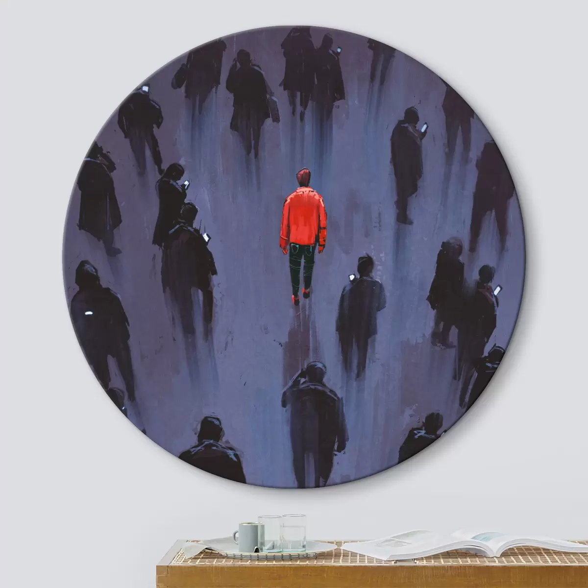 Runde Gemälde Ein Mann steht in einer Menschenmenge r37093