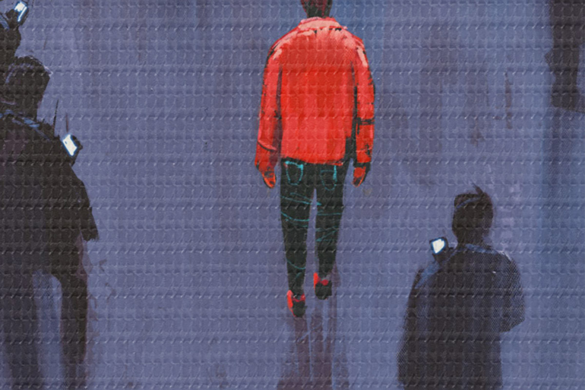 Um die Leinwand auf Keilrahmen zu spannen, ohne das Bild zu beschädigen, verwenden wir ein gespiegeltes Bild.