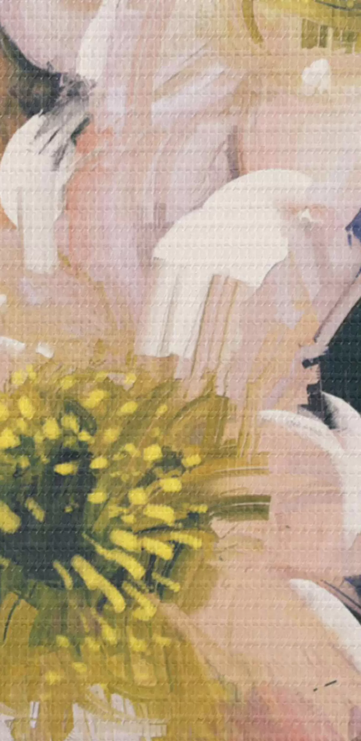 Drei Materialtypen stehen zur Verfügung: Economic Canvas - ein dichtes und haltbares Material für den Digitaldruck, identisch mit Malerleinwand, wasserfeste Oberfläche, realistische Wiedergabe von Details, mittelkörniges Material. Premium Canvas - die Textur ähnelt der einer Malerleinwand (verwobene kleine Fäden). Weiche, detaillierte Wiedergabe des Bildes auf einer matten Oberfläche. Eco-Premium - hochwertiges Gewebe aus 100% Baumwolle. Dank der natürlichen Baumwollfasern ist das Material langlebig und verschleißfest. Hervorragende Farbwiedergabe und Detailtreue.