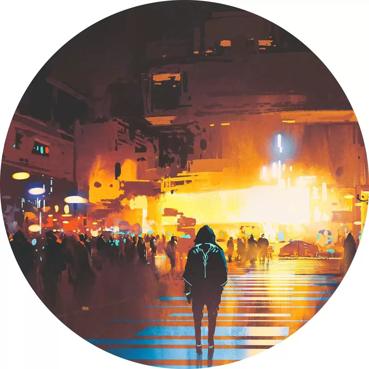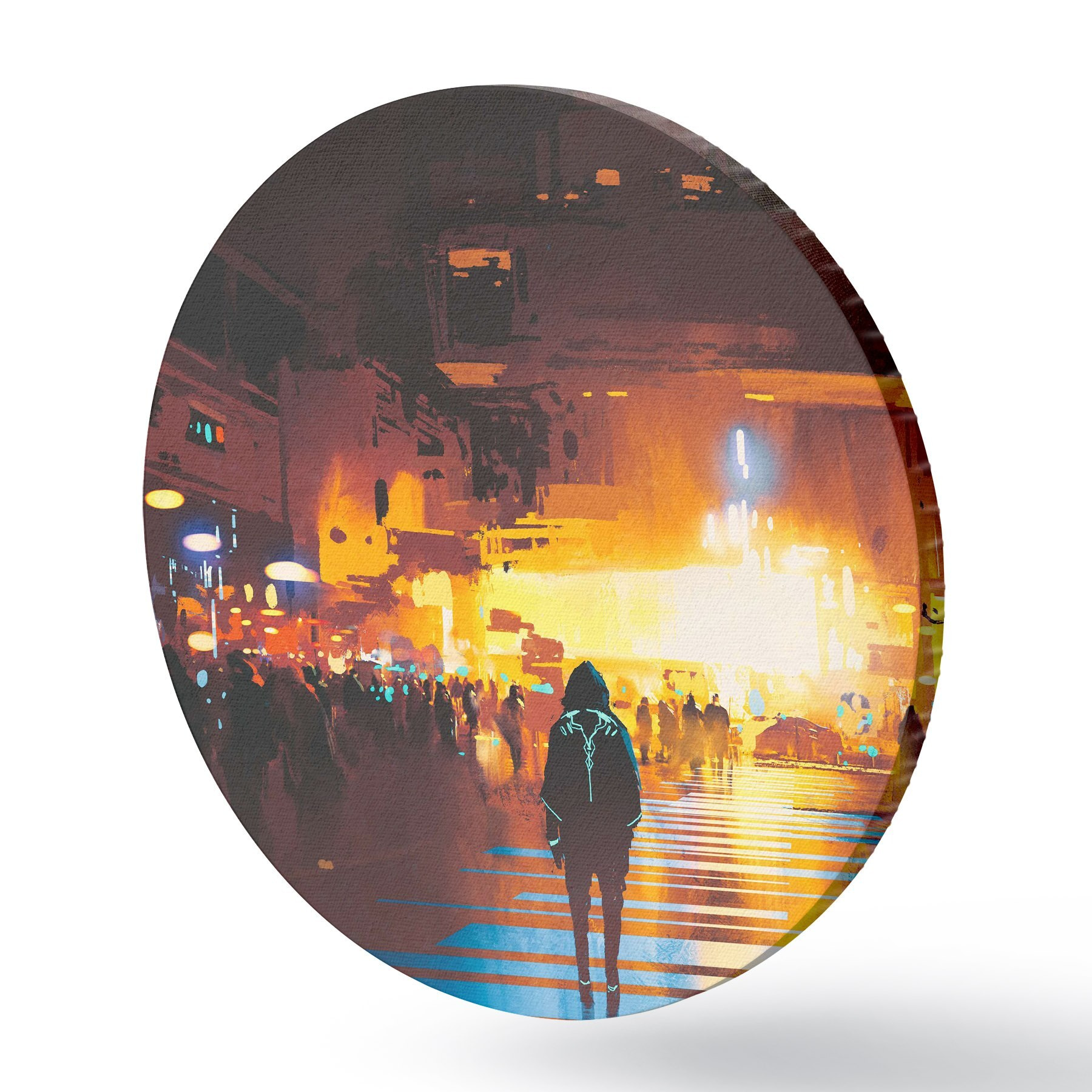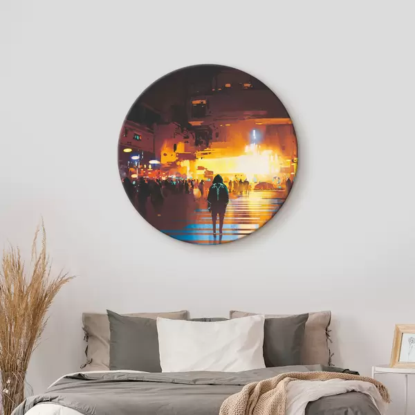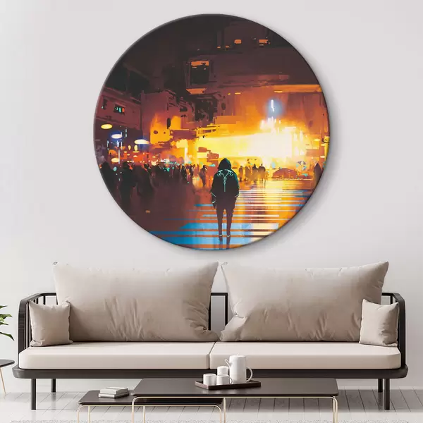 Runde Gemälde Eine Person, die die Straße entlanggeht r37104