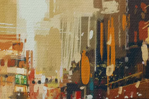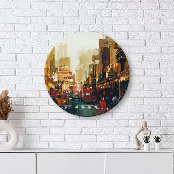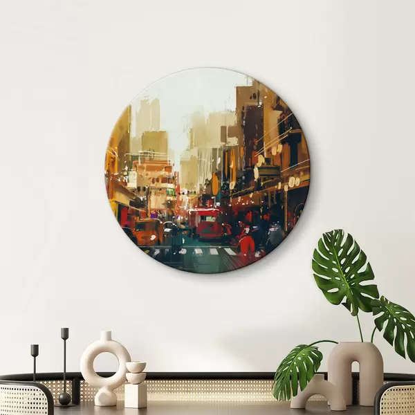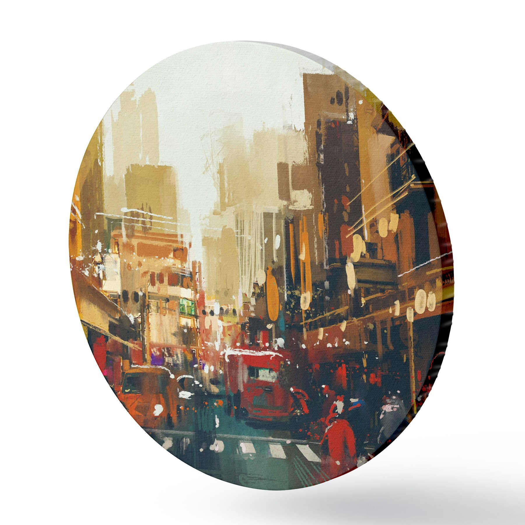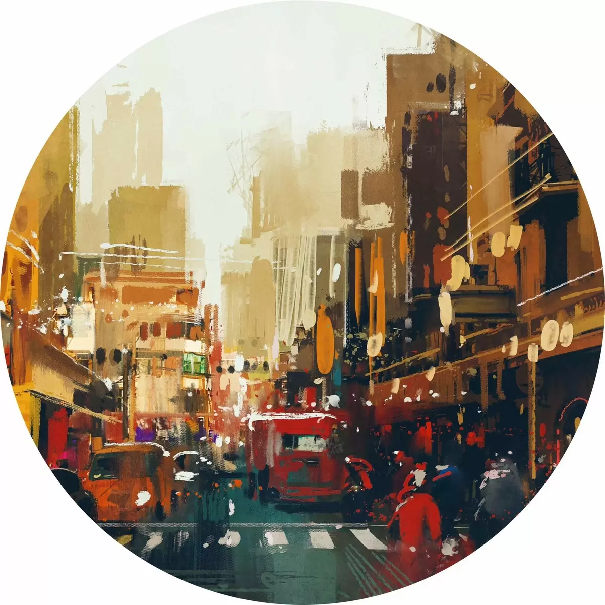 Runde Gemälde Stadtstraße mit Spaziergängern r37107