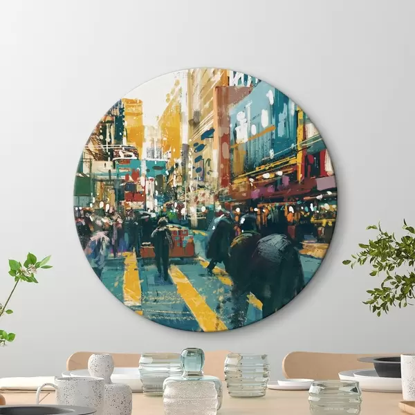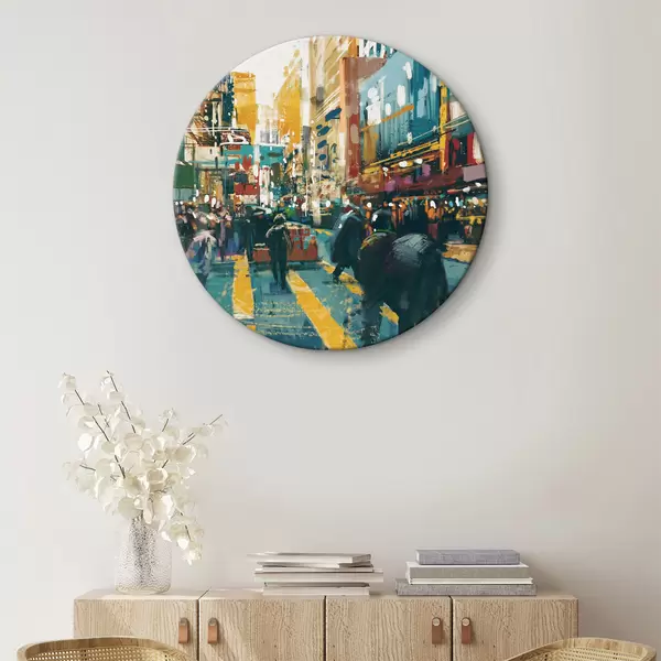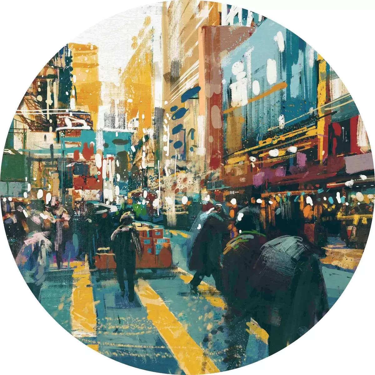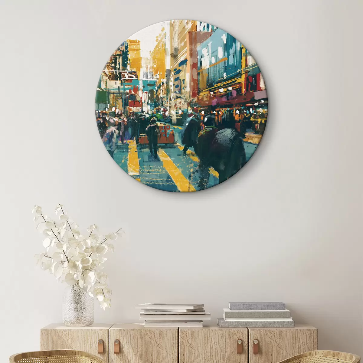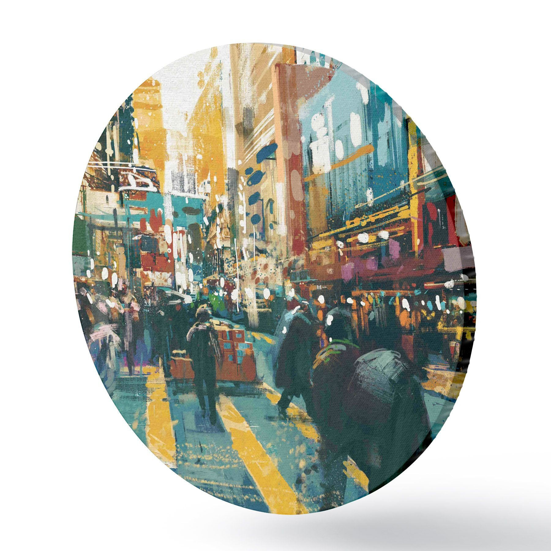 Runde Gemälde Stadtansichten Belebte Großstadtstraße r37108