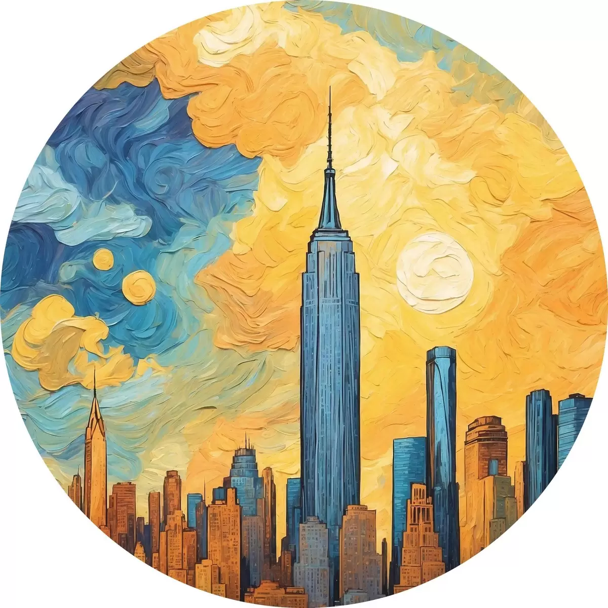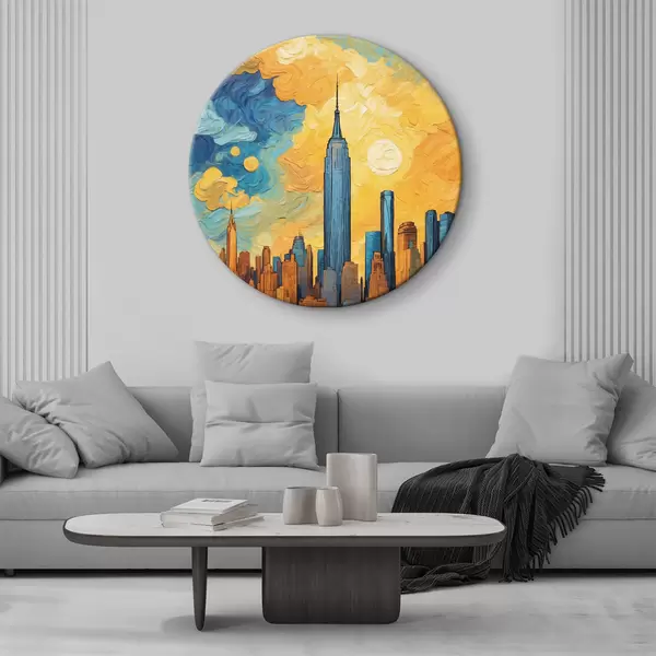 Runde Gemälde Ein Stadtpanorama malen r37121