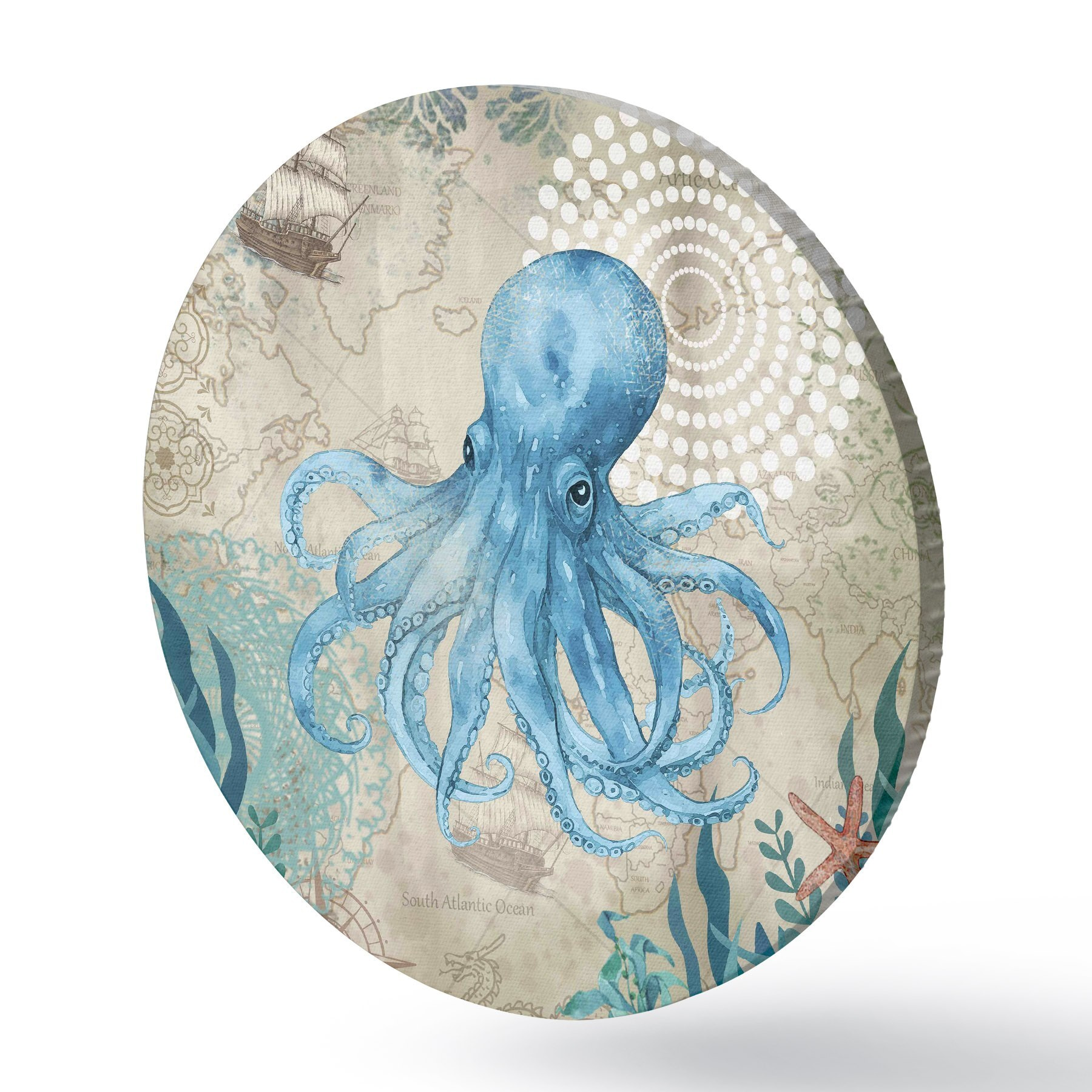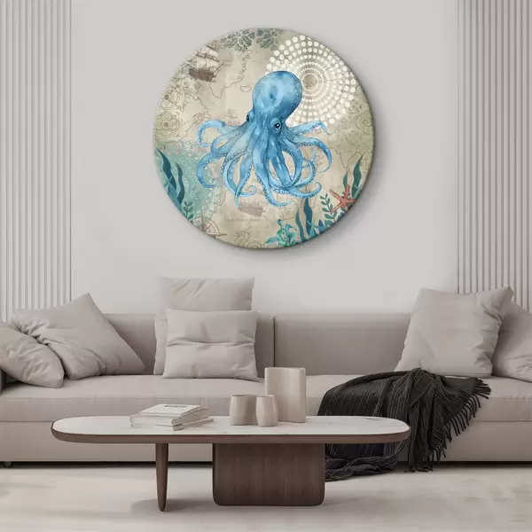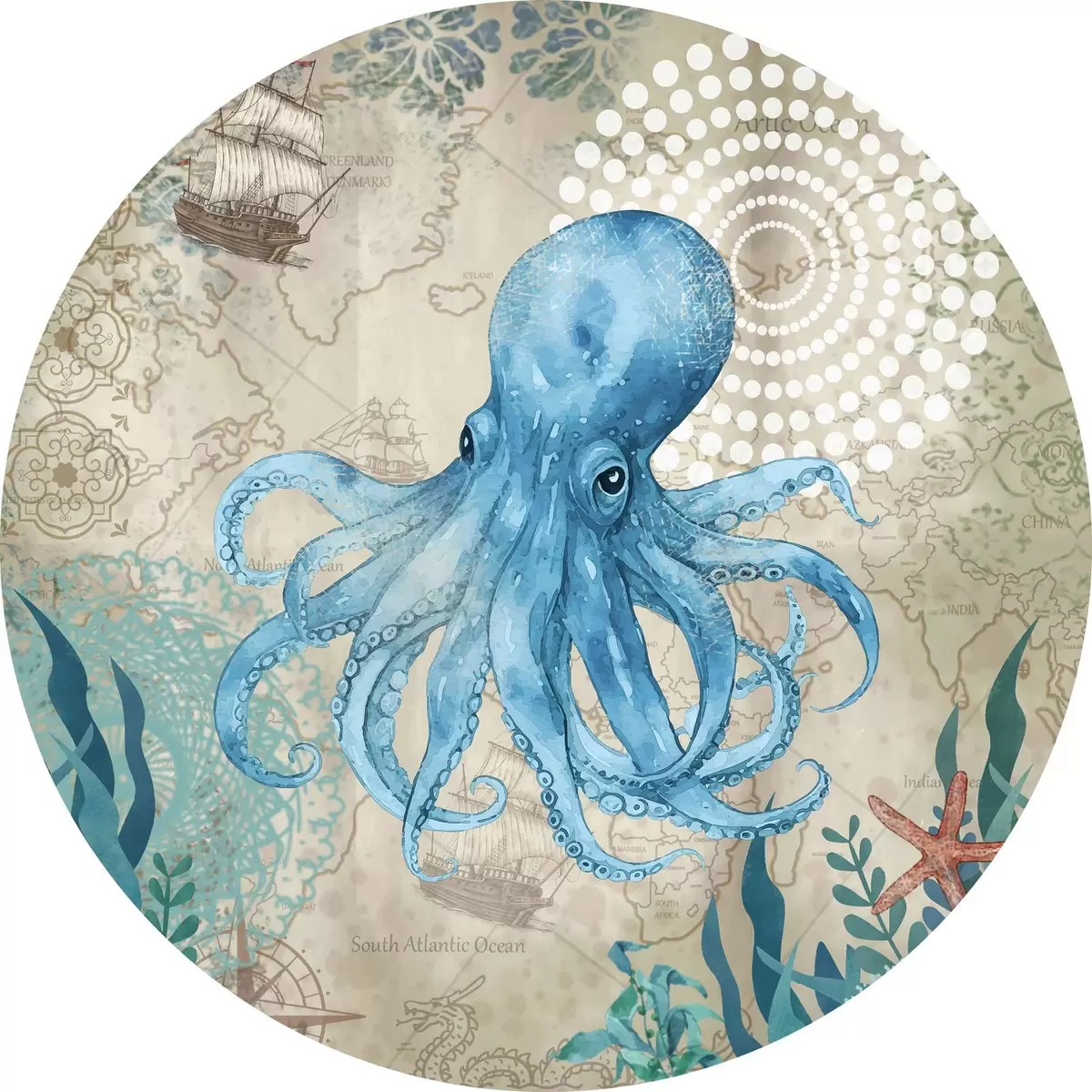 Runde Gemälde Blauer Oktopus mit Meereskarte r37154