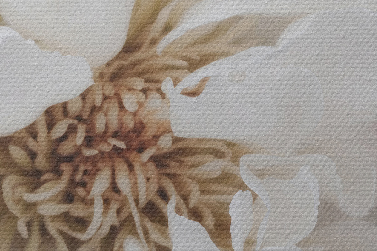 Drei Materialtypen stehen zur Verfügung: Economic Canvas - ein dichtes und haltbares Material für den Digitaldruck, identisch mit Malerleinwand, wasserfeste Oberfläche, realistische Wiedergabe von Details, mittelkörniges Material. Premium Canvas - die Textur ähnelt der einer Malerleinwand (verwobene kleine Fäden). Weiche, detaillierte Wiedergabe des Bildes auf einer matten Oberfläche. Eco-Premium - hochwertiges Gewebe aus 100% Baumwolle. Dank der natürlichen Baumwollfasern ist das Material langlebig und verschleißfest. Hervorragende Farbwiedergabe und Detailtreue.