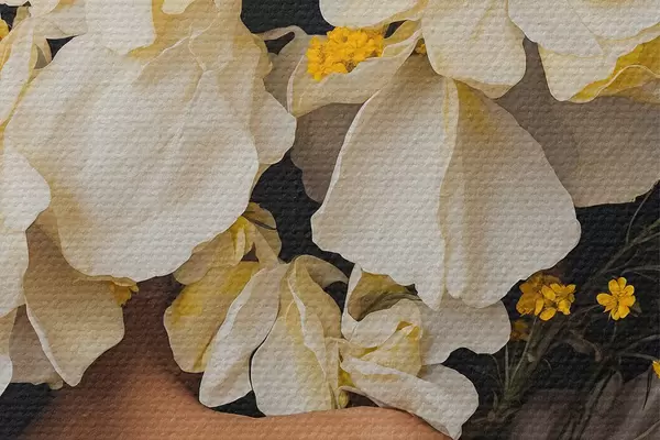 Bild Frau mit gelben Blumen auf schwarzem Hintergrund Nr r37162
