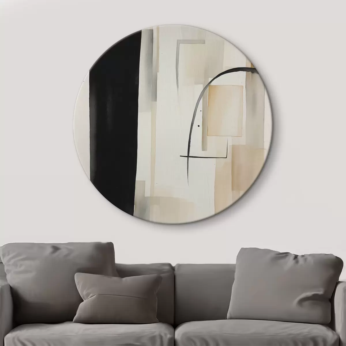 Runde Gemälde Aquarellierte Abstraktion mit rechteckigen Figuren r37170