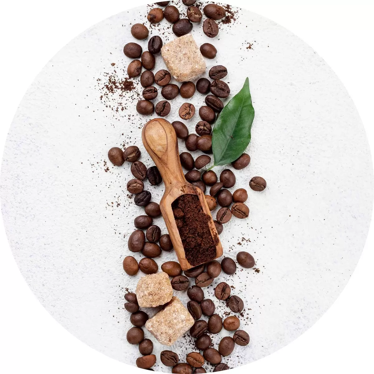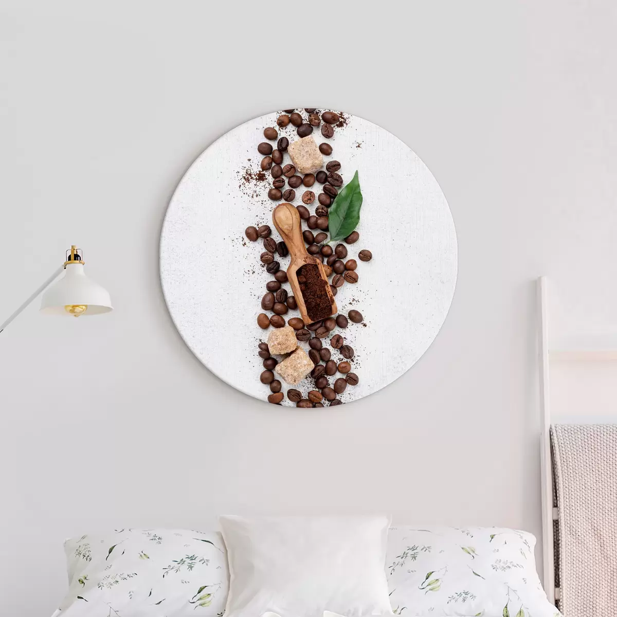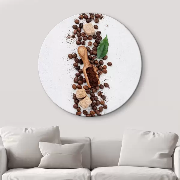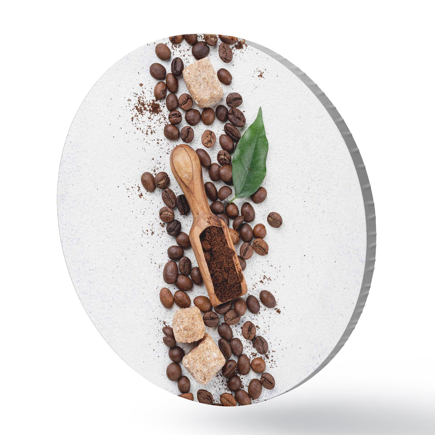 Runde Gemälde Ein Löffel mit Kaffeebohnen und Zucker obenauf r37178