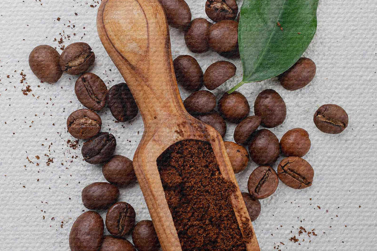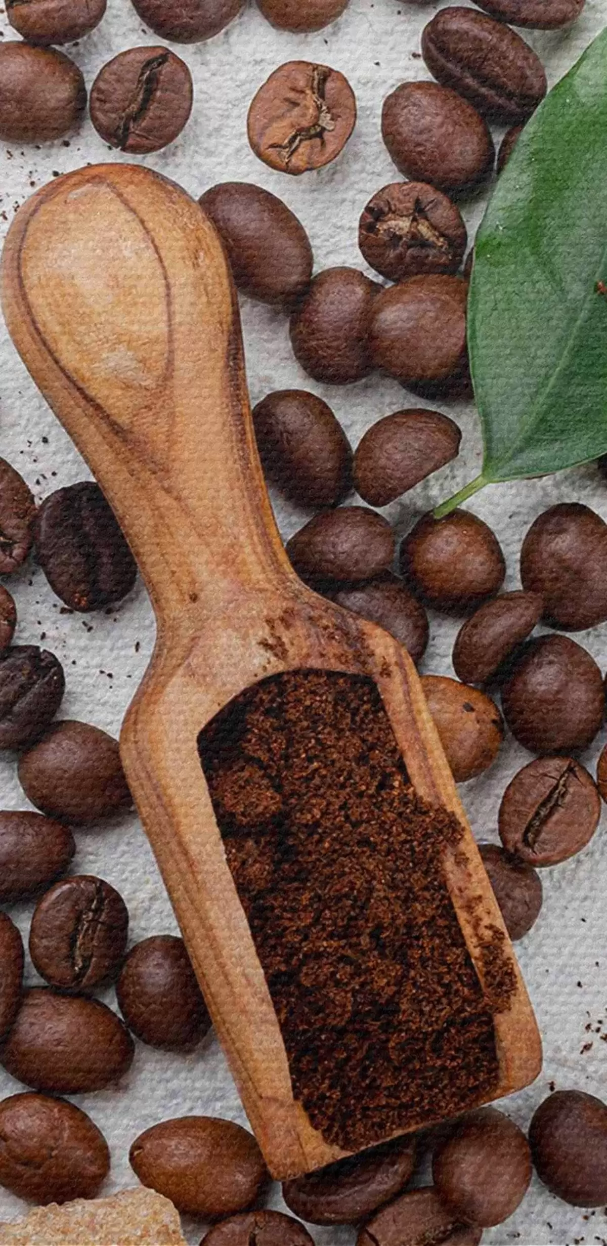 Bild Ein Löffel mit Kaffeebohnen und Zucker obenauf Nr r37178