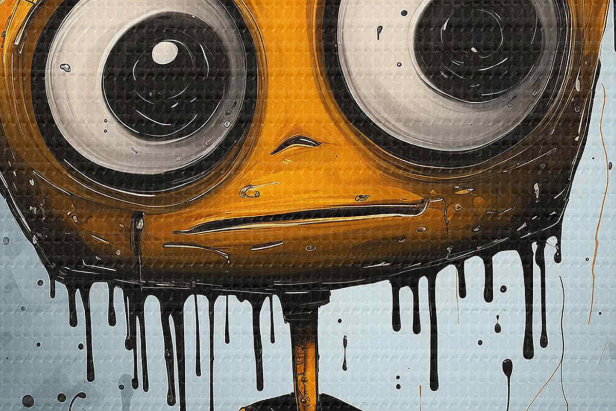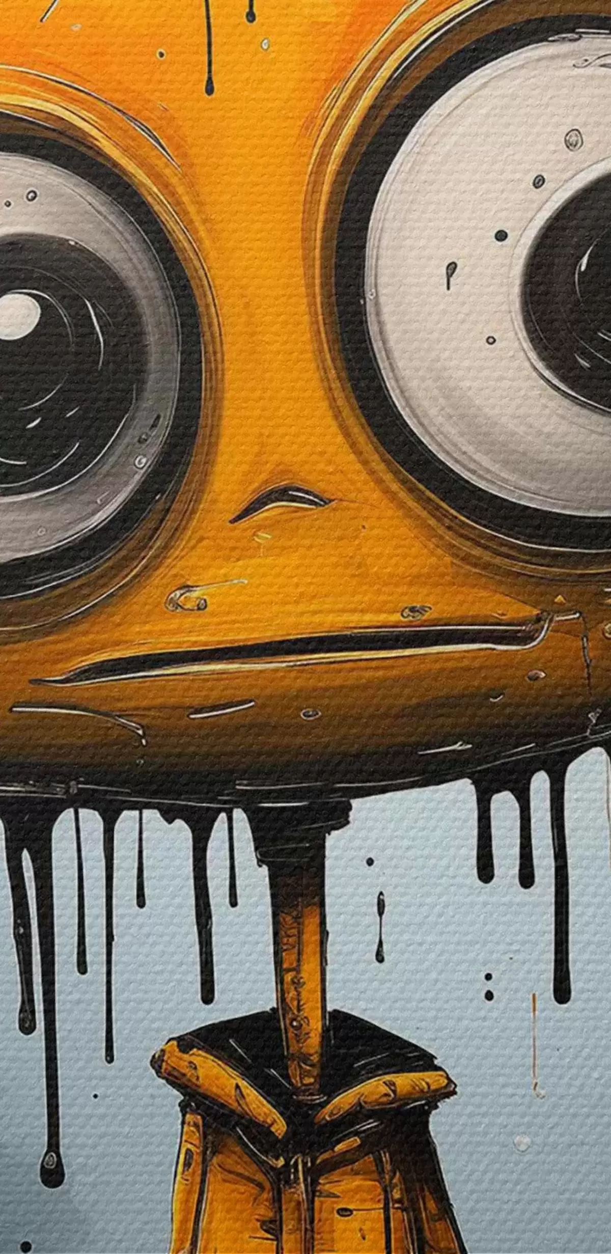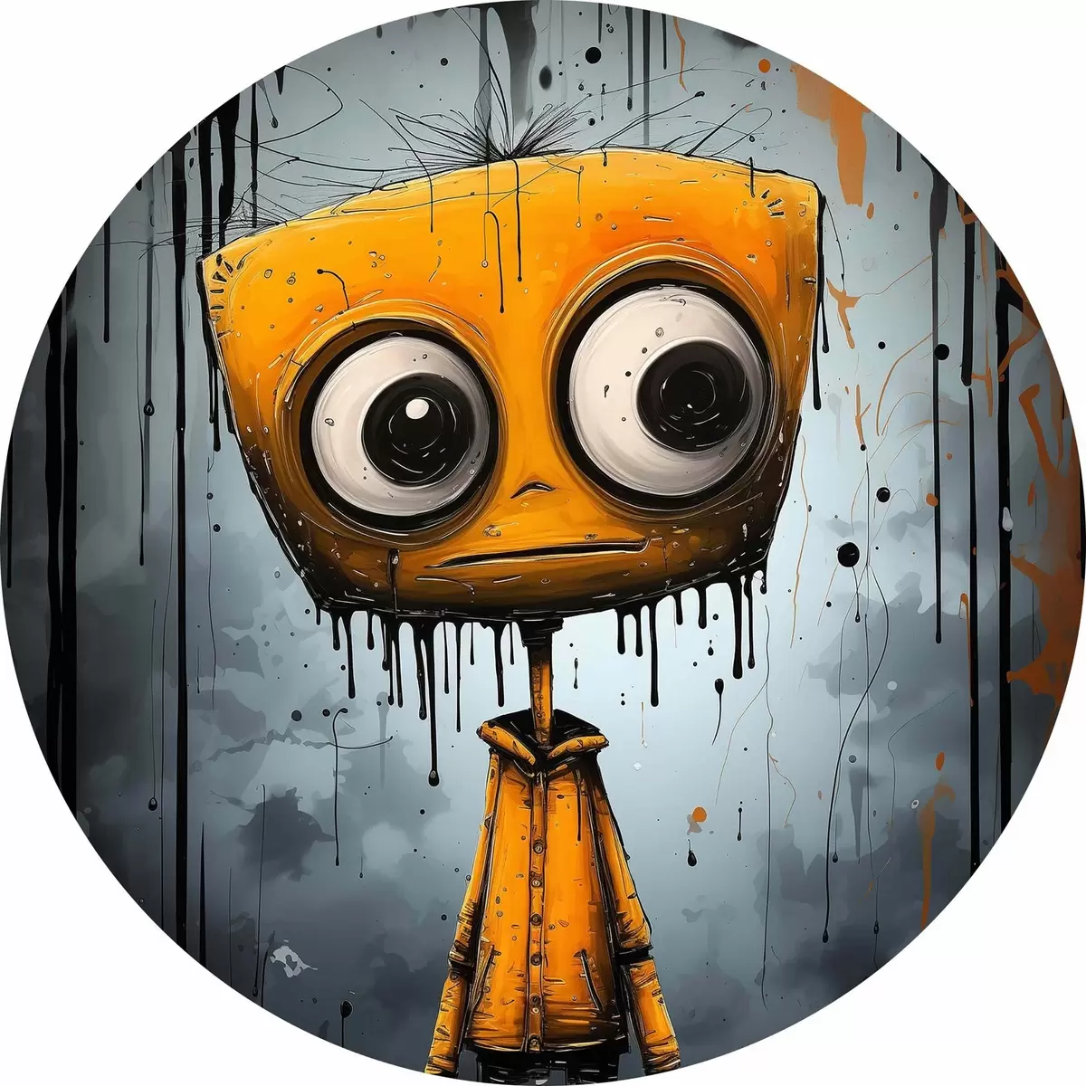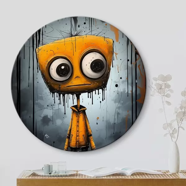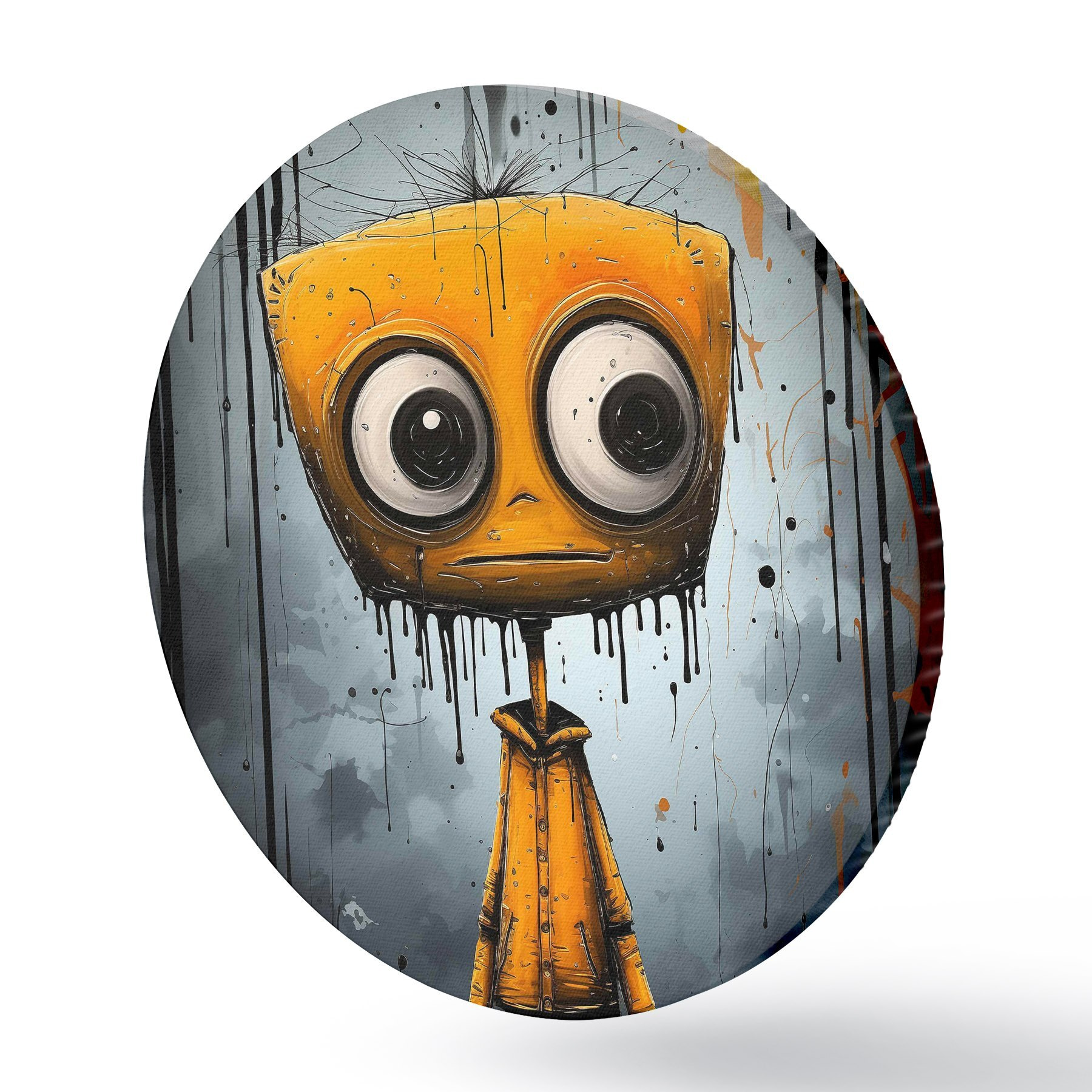 Runde Gemälde Cartoonfigur mit quadratischem Kopf und großen Augen r37254