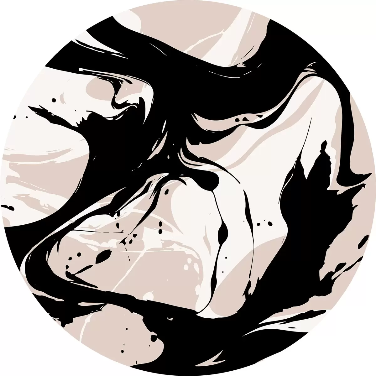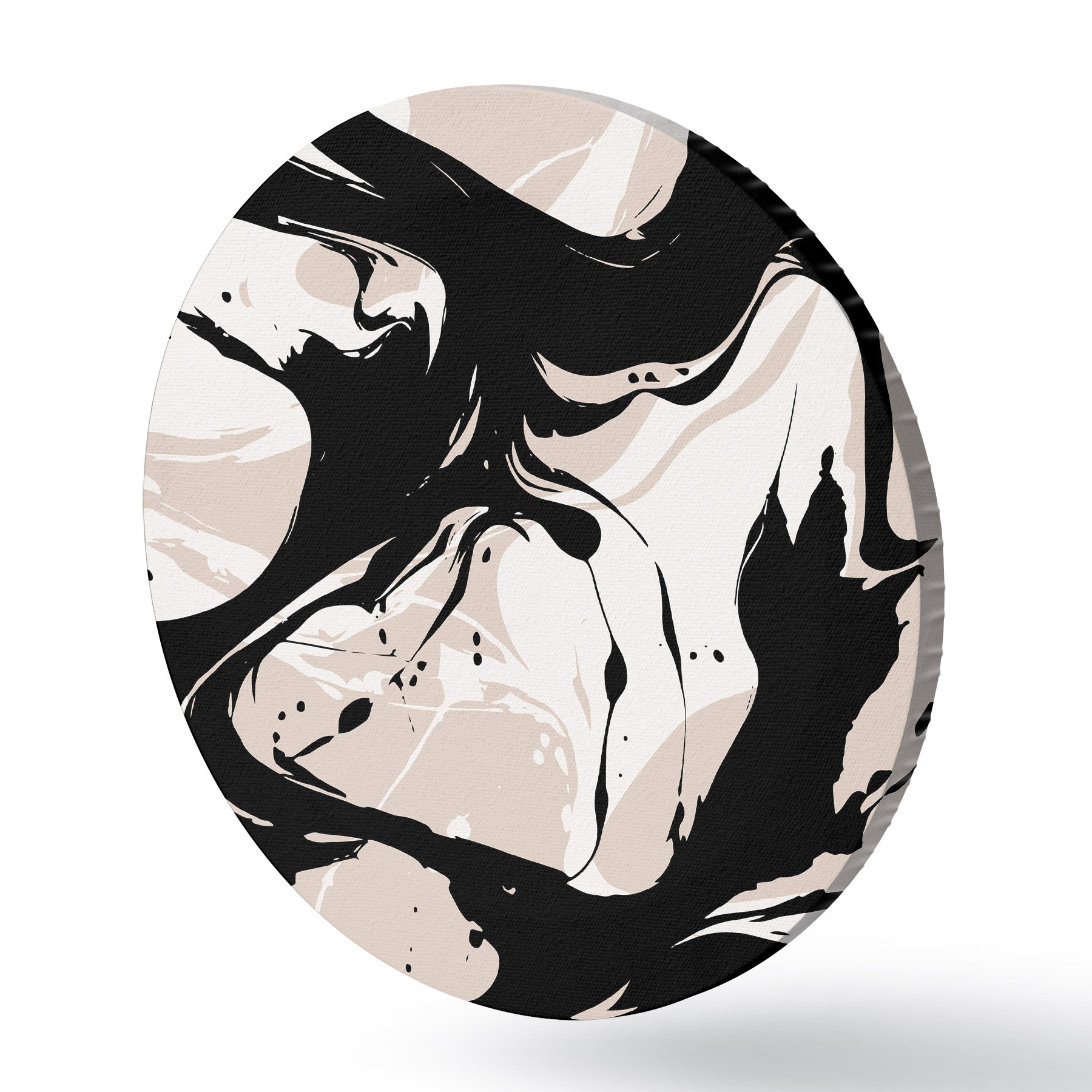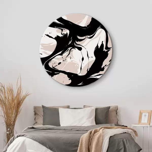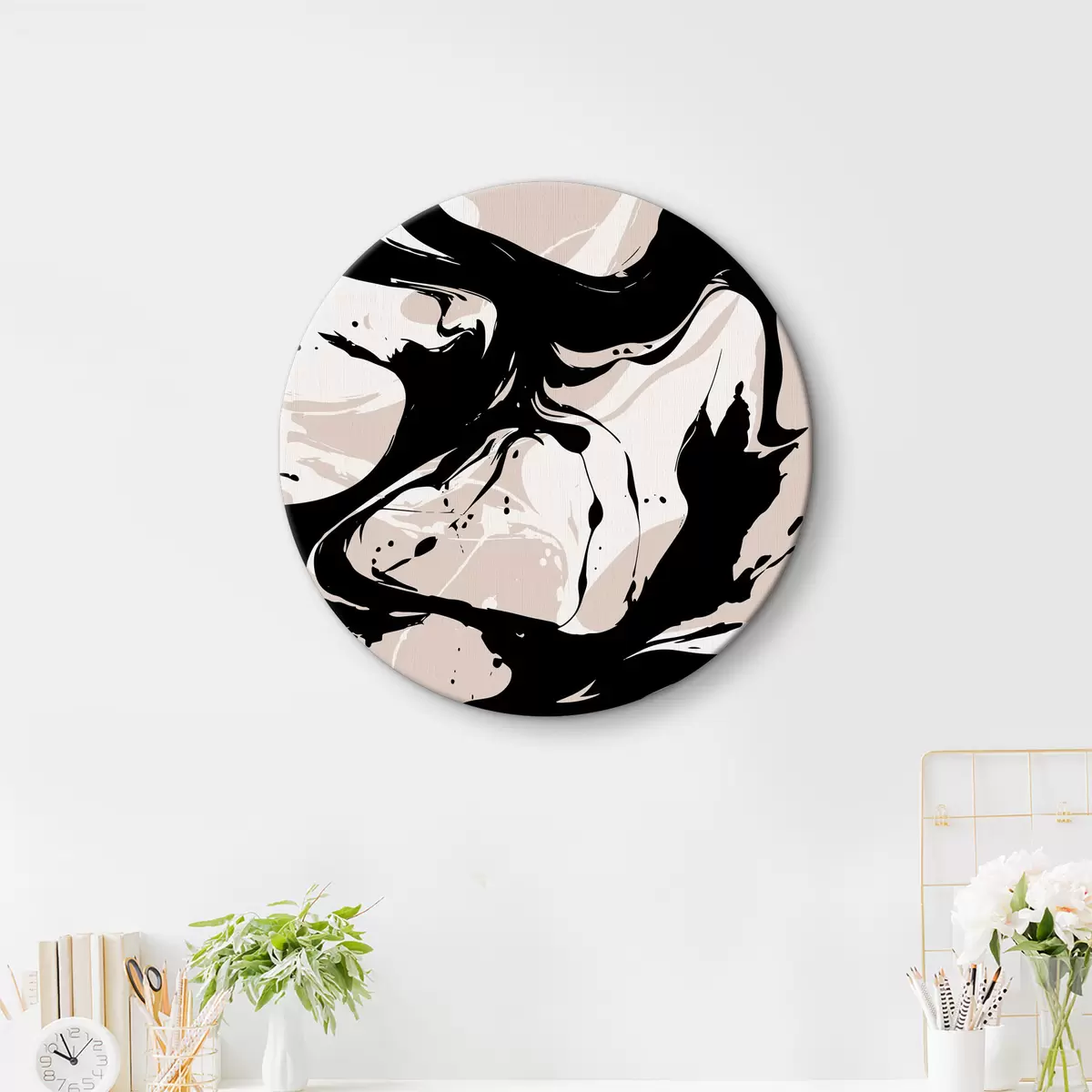 Runde Gemälde Schwarzer und weißer Wirbel auf beigem Hintergrund r37286