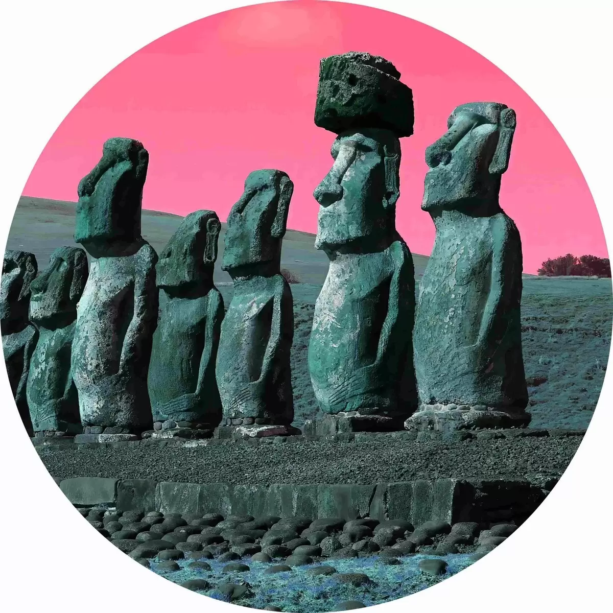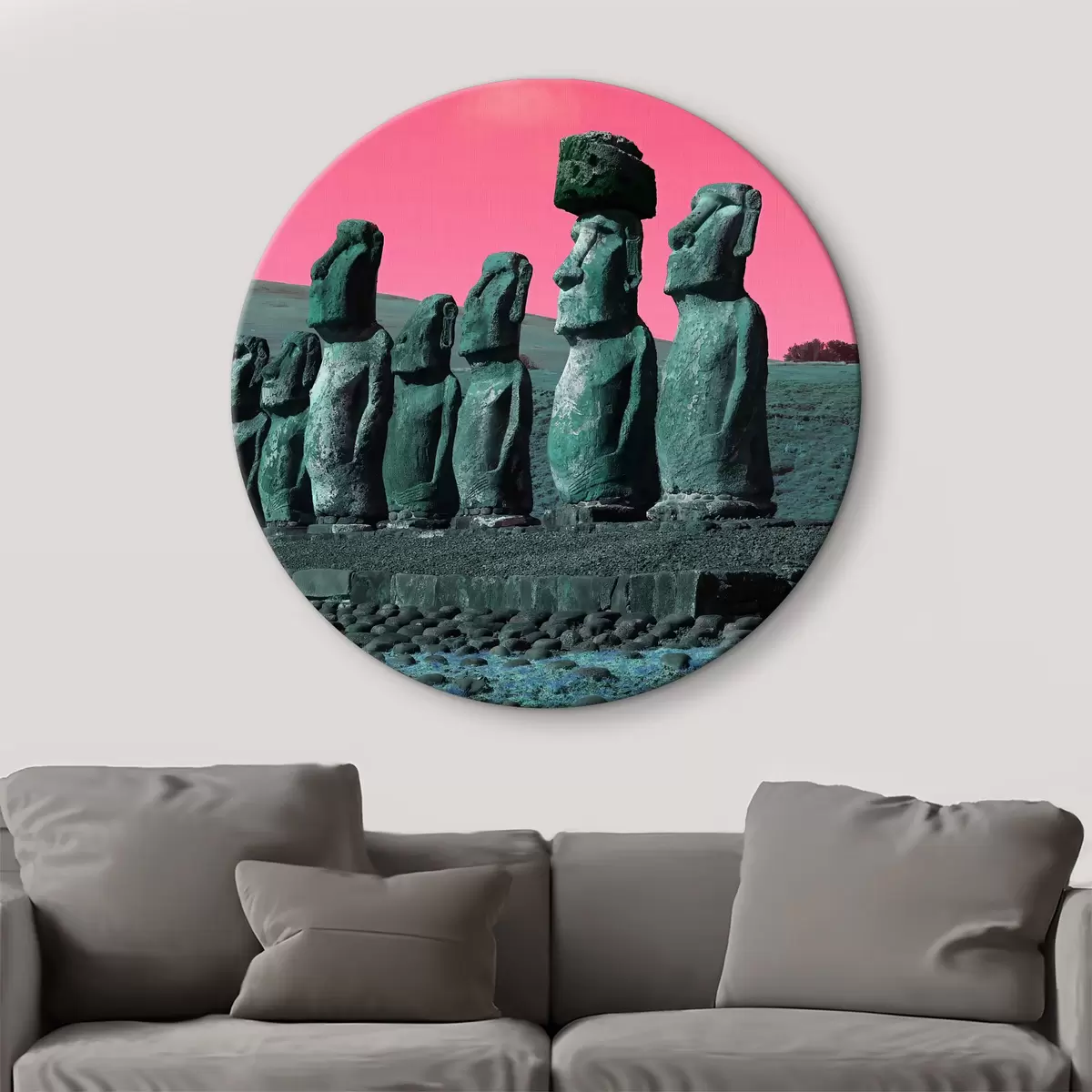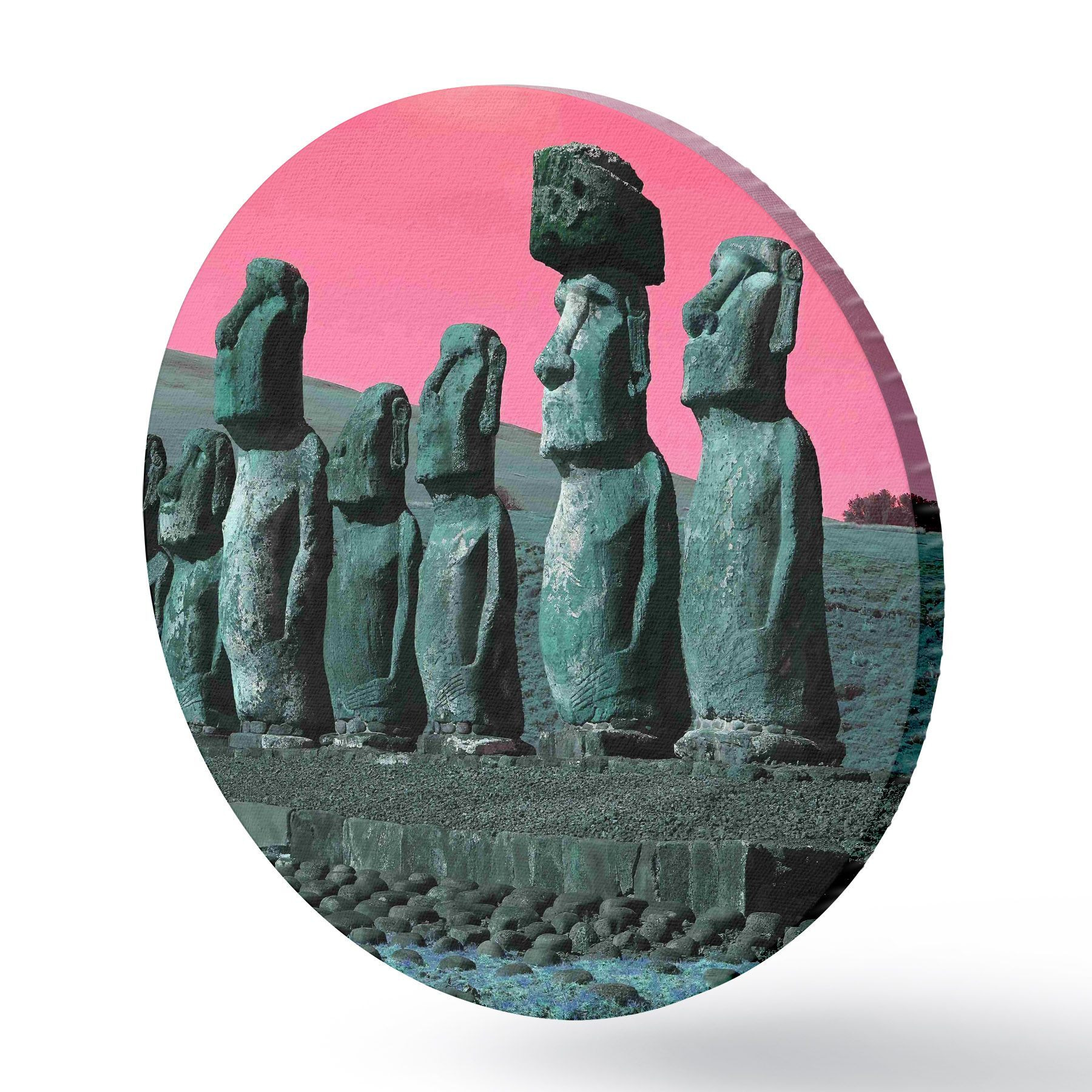 Runde Gemälde Antike Statuen unter einem surrealen Himmel r37288