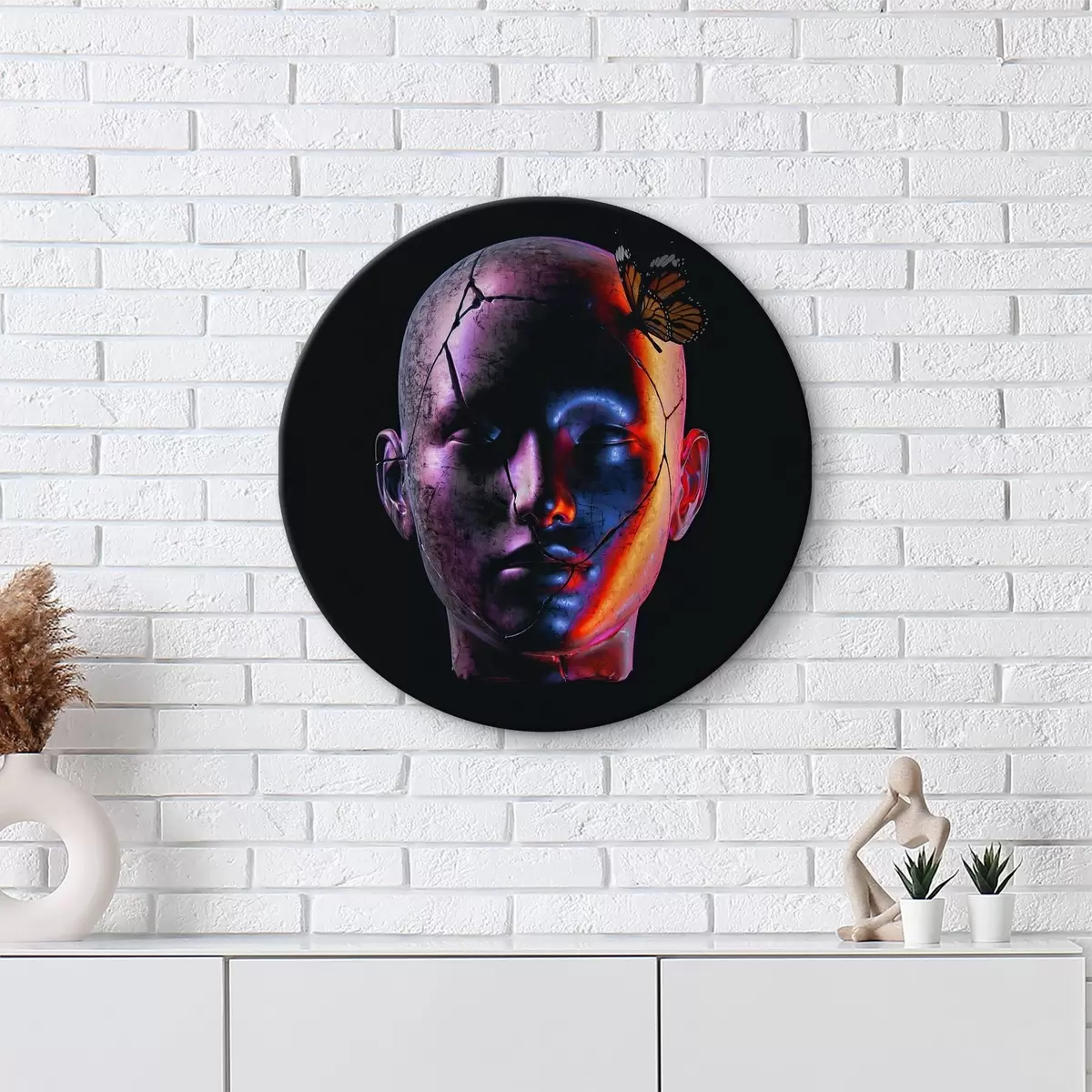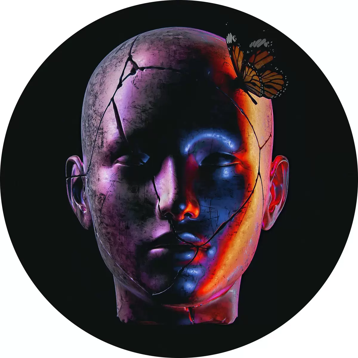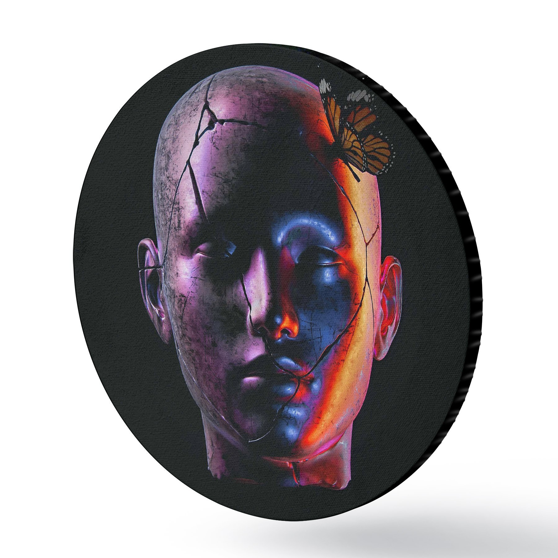 Runde Gemälde Ein buntes Gesicht, geteilt durch die Dunkelheit r37289