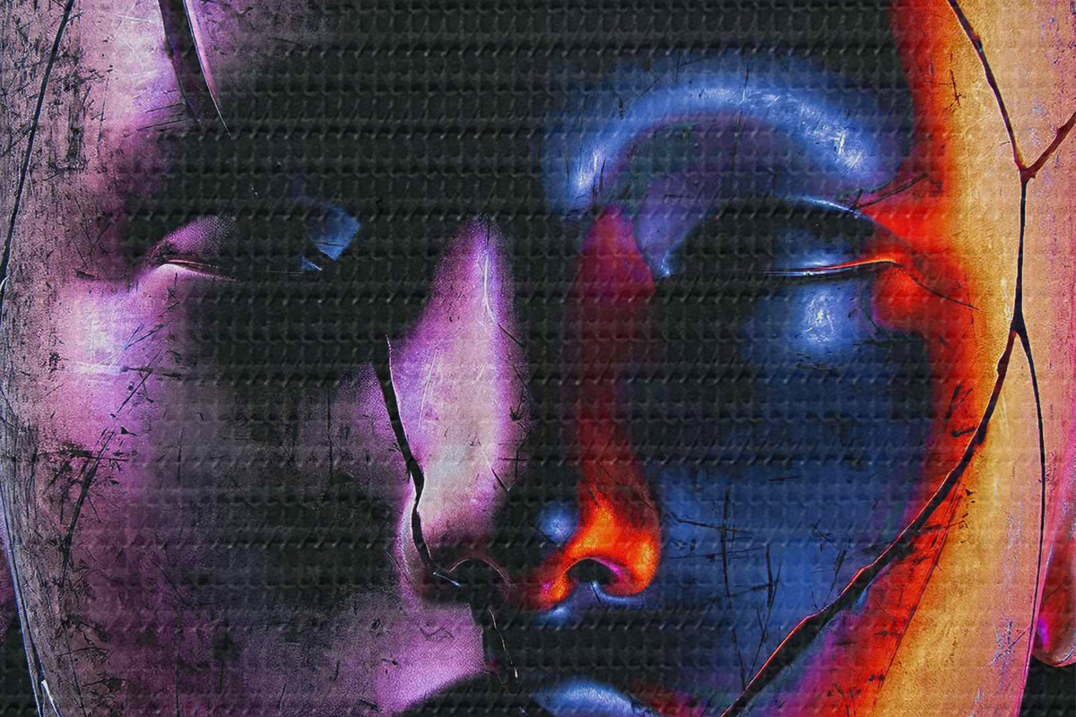 Bild Ein buntes Gesicht, geteilt durch die Dunkelheit Nr r37289