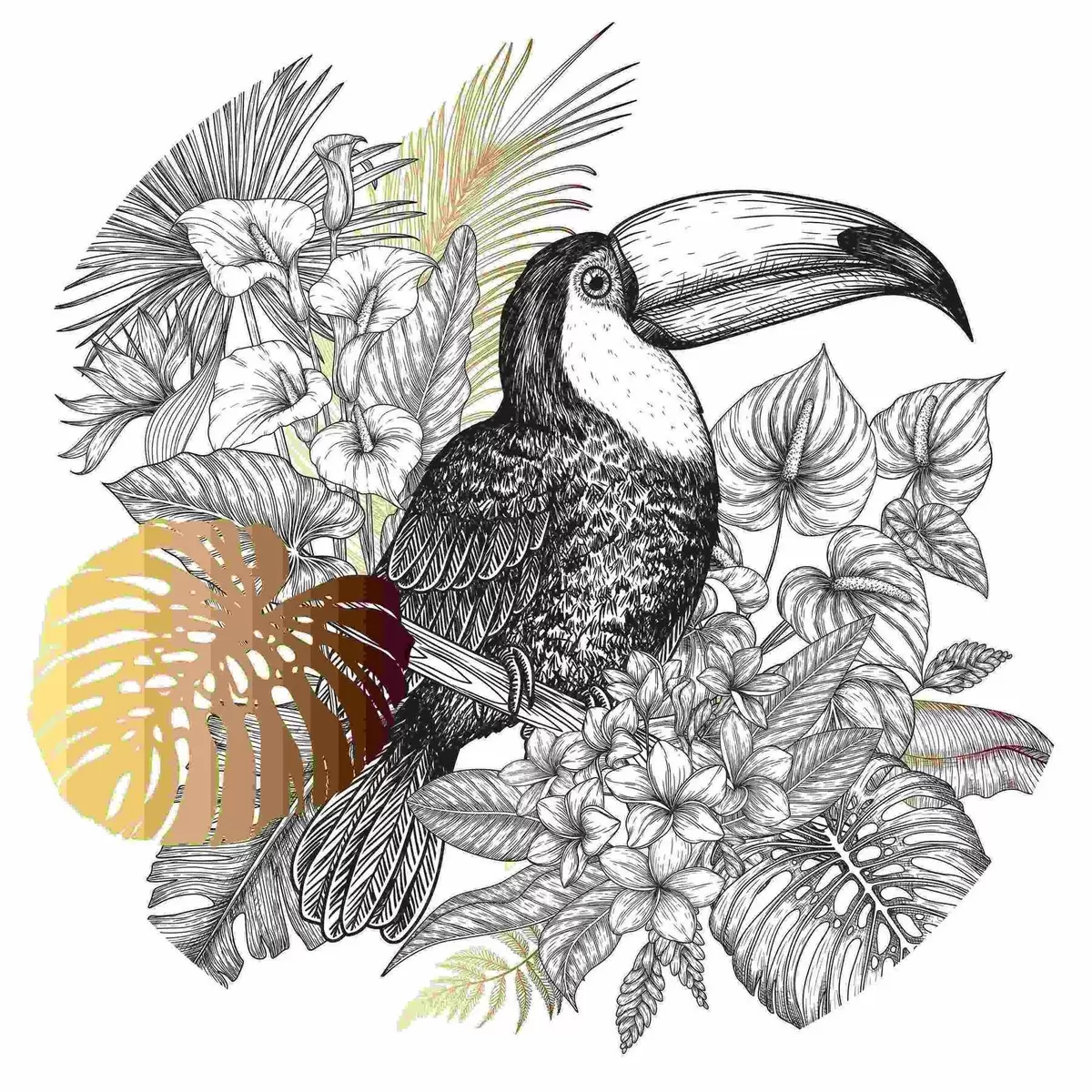 Bild Tukan mit Blättern und Blumen Nr r37303