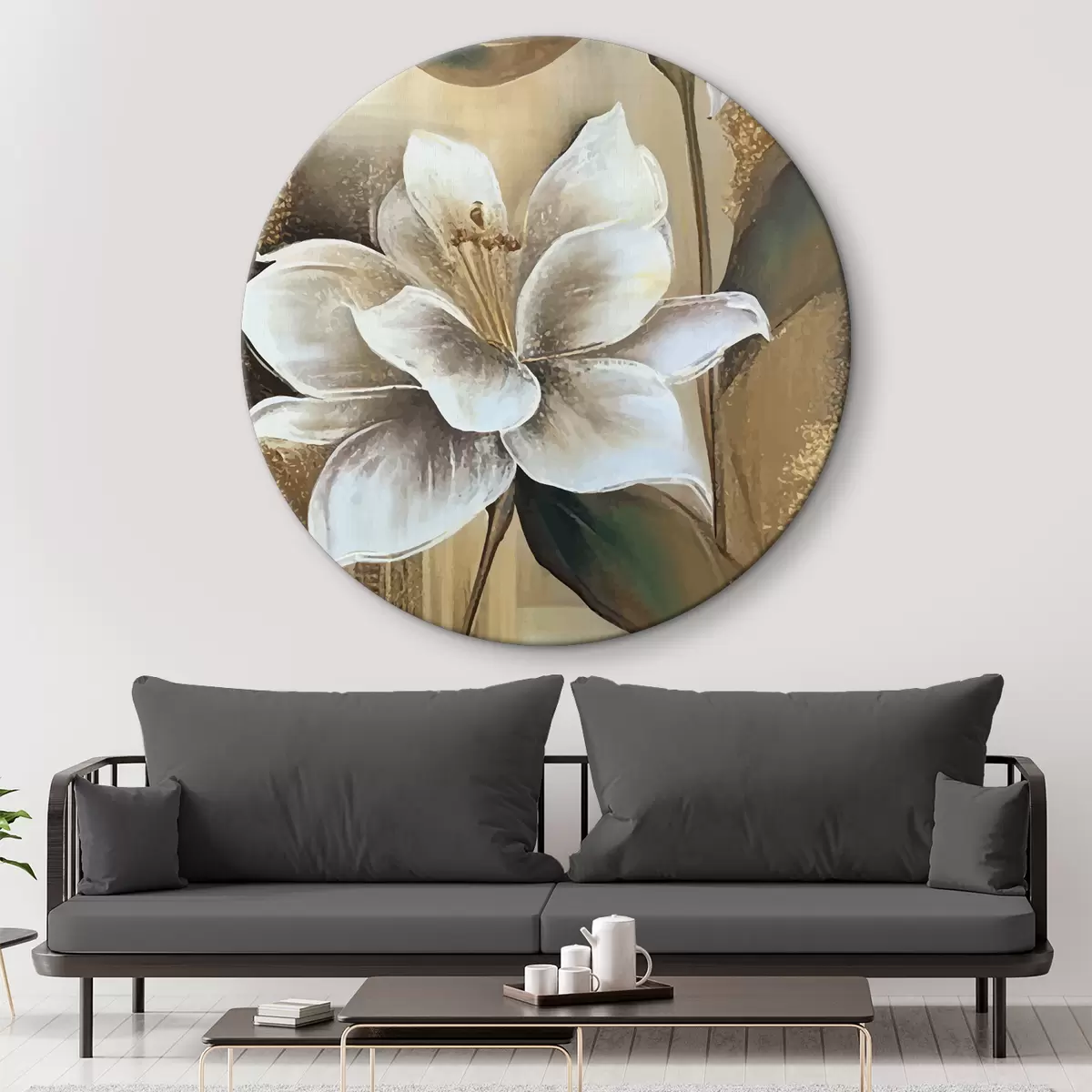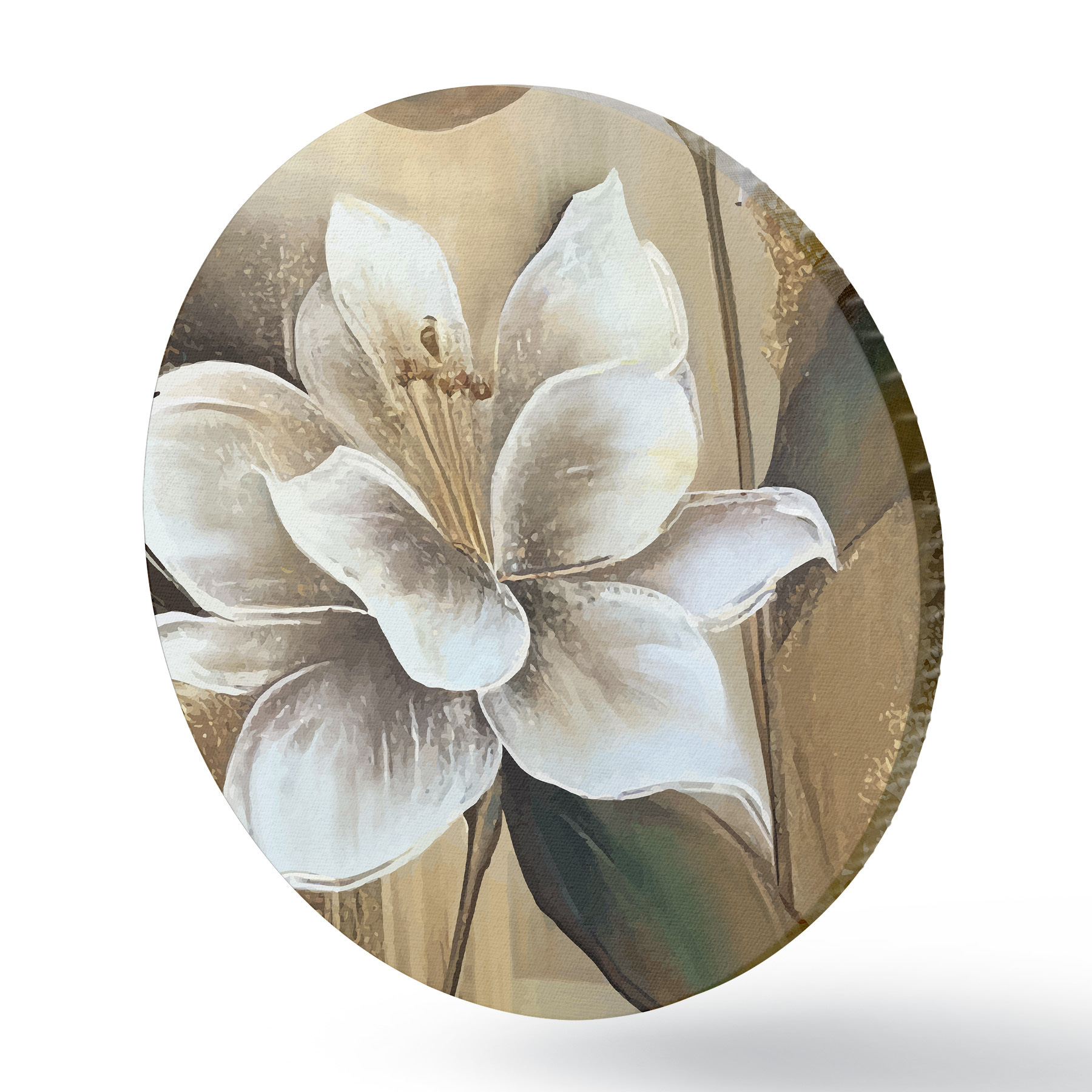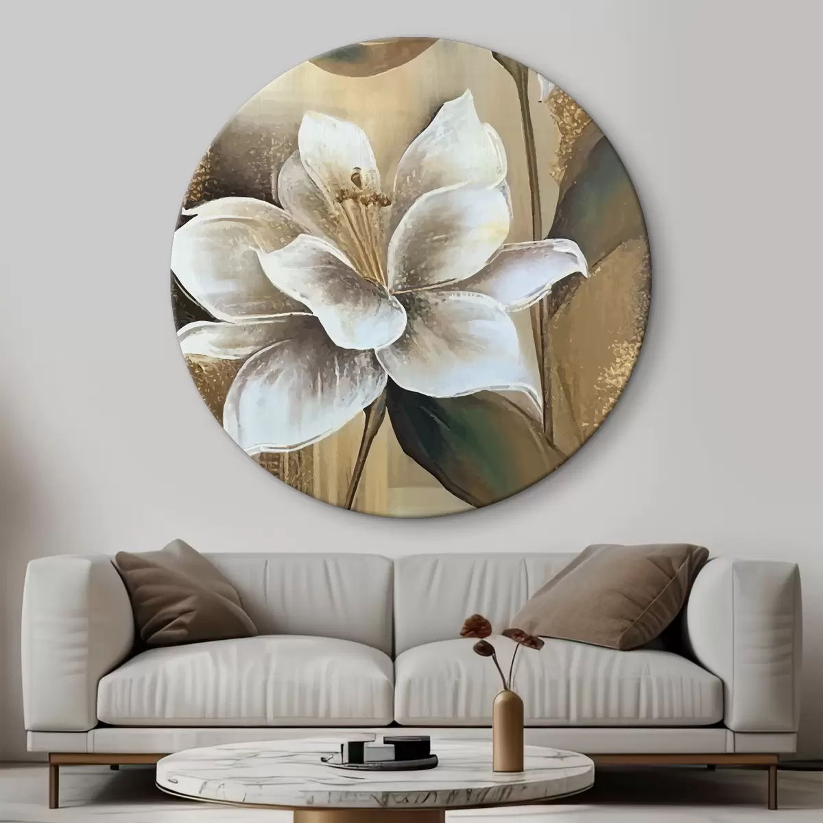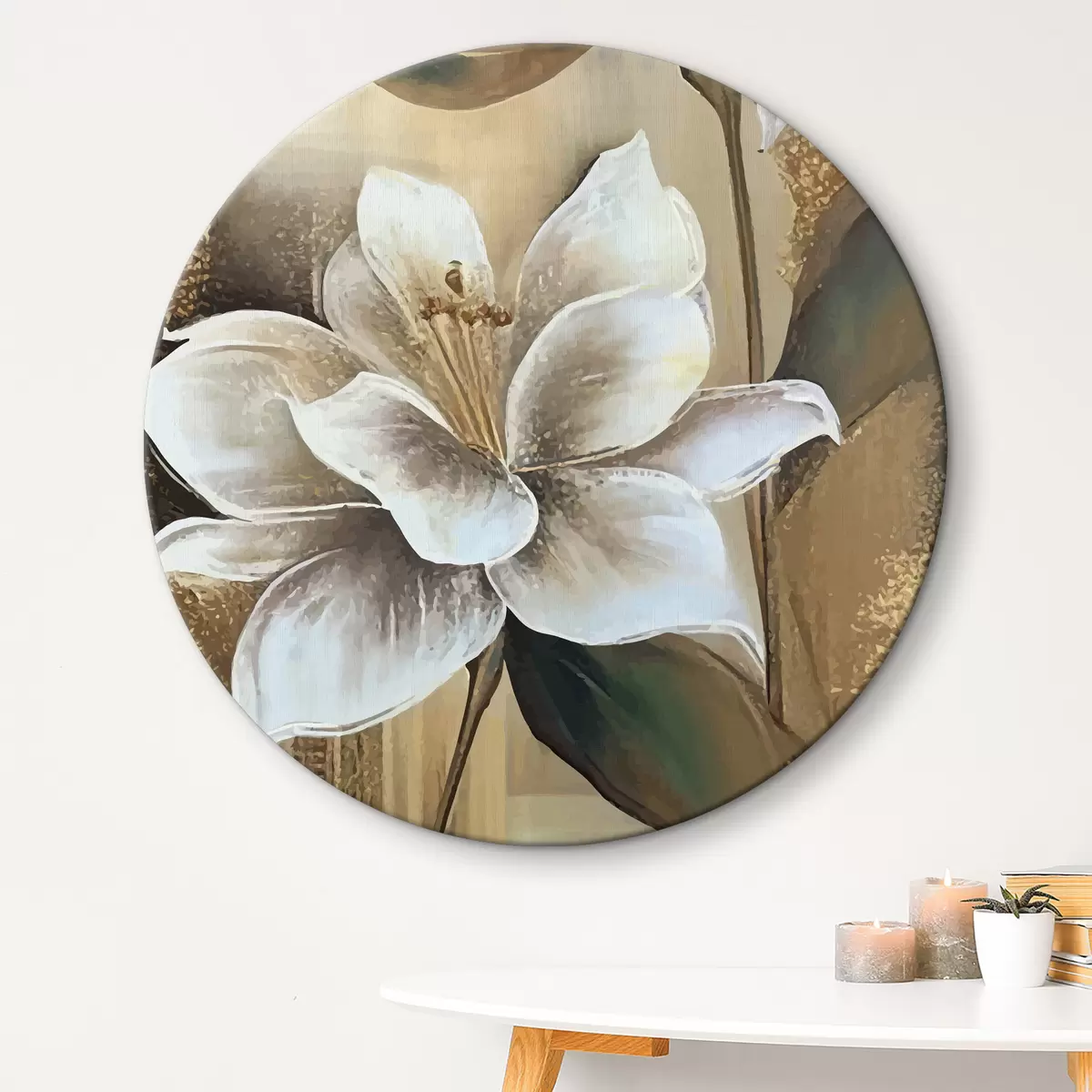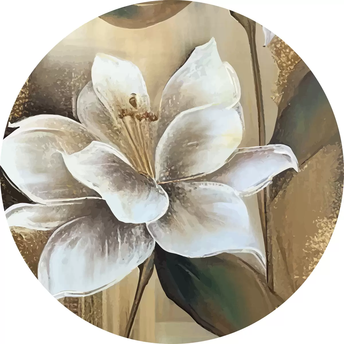 Runde Gemälde Weiße Blumen vor einem Hintergrund r37308