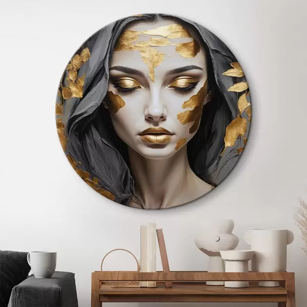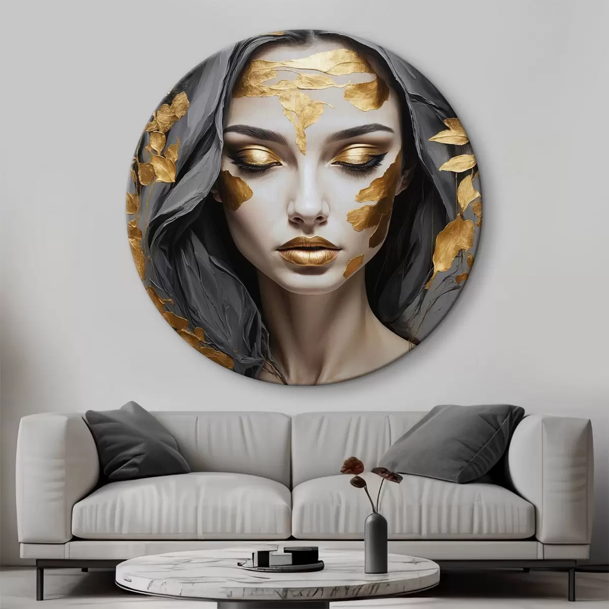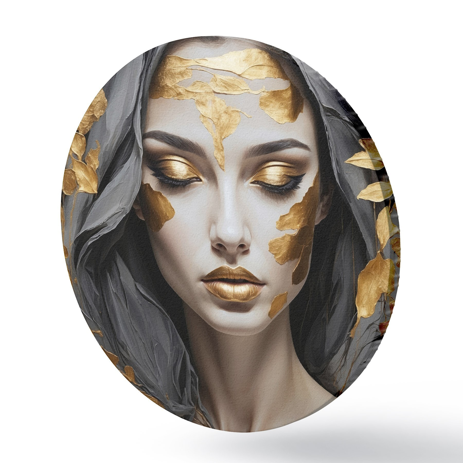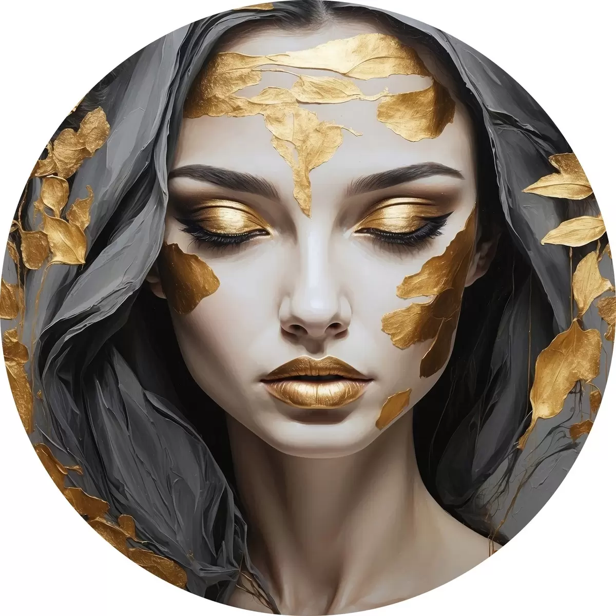 Runde Gemälde Eine schöne Frau, die mit Farbe beschmiert ist r37326