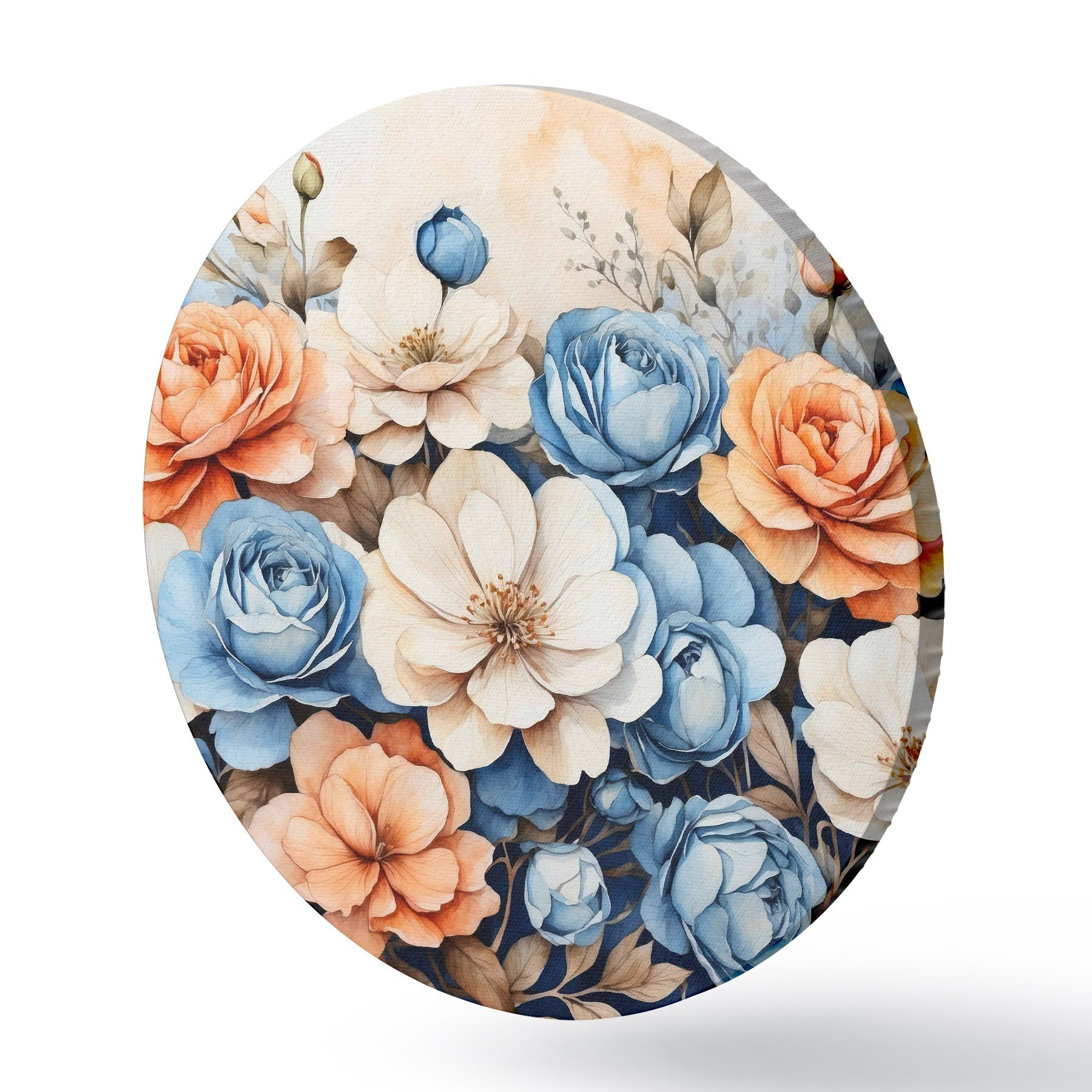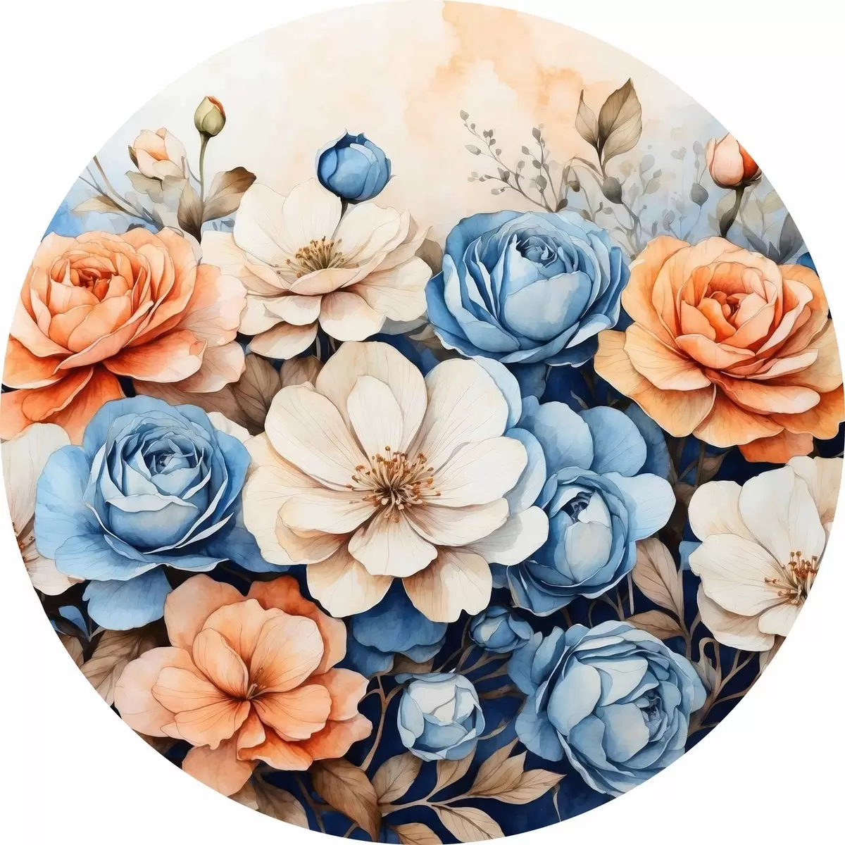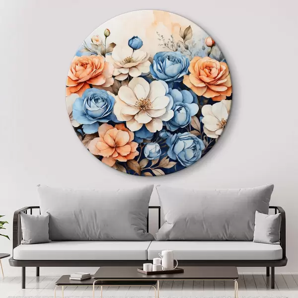 Runde Gemälde Bild von Blumen auf einem blauen Hintergrund r37335