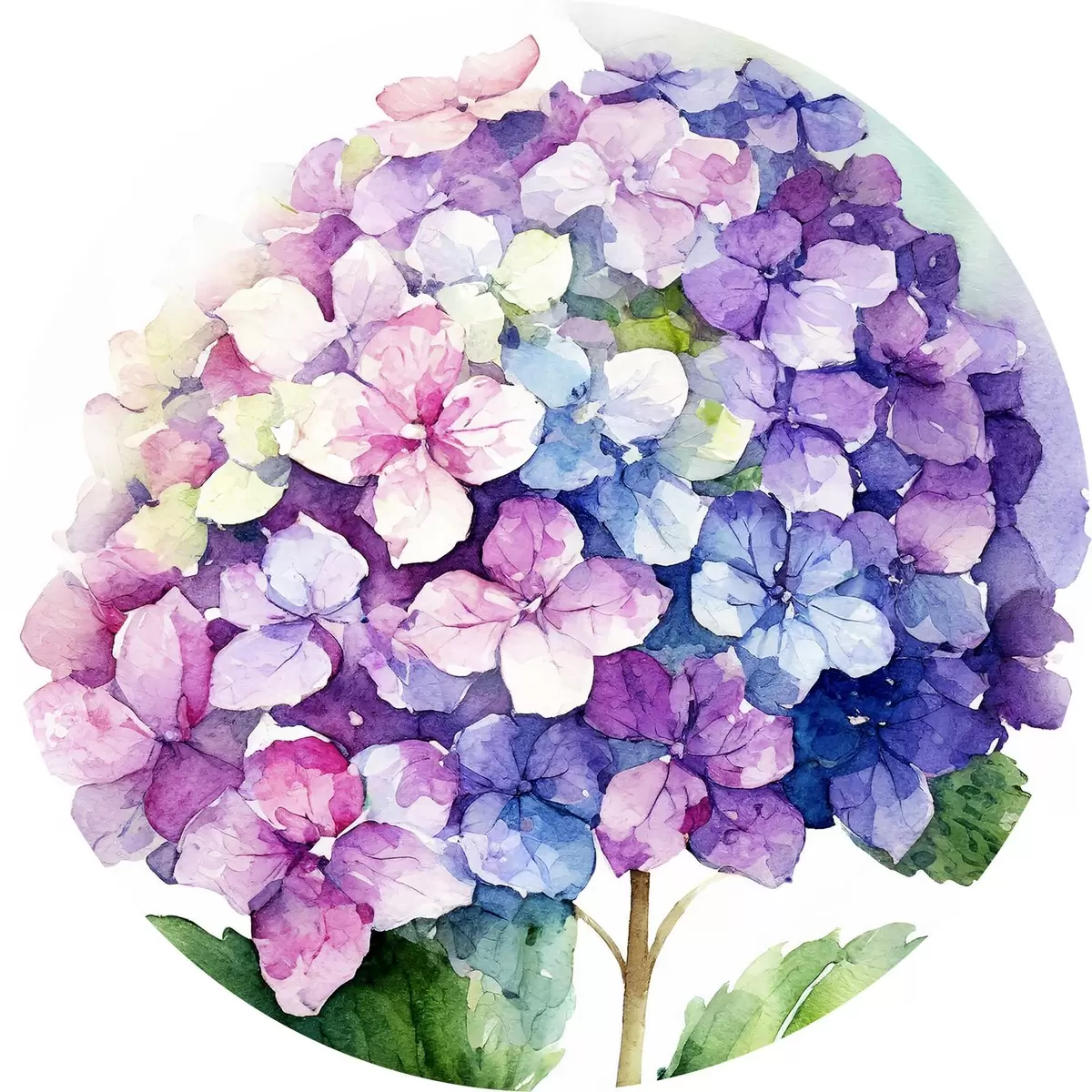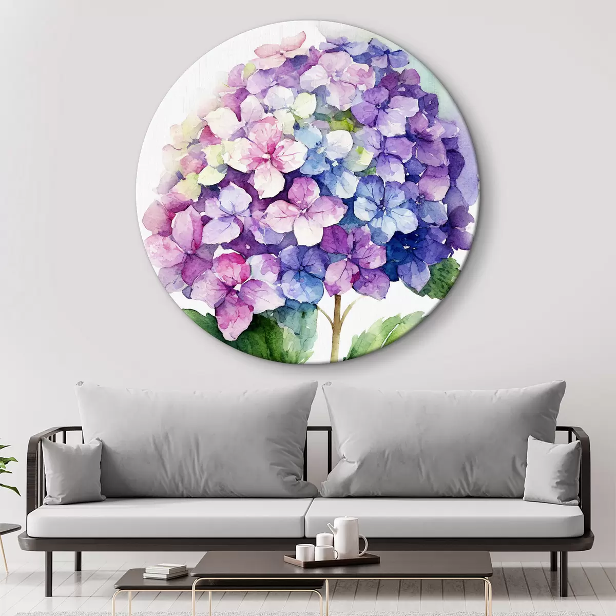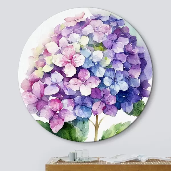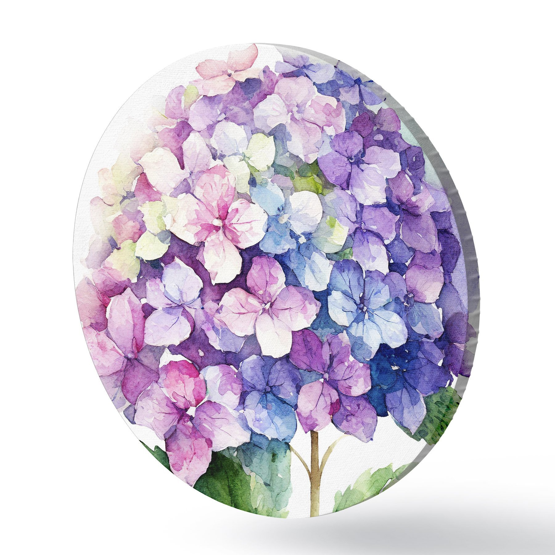 Runde Gemälde Aquarell-Hortensie, florale Illustration, Minimalismus r37344