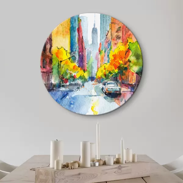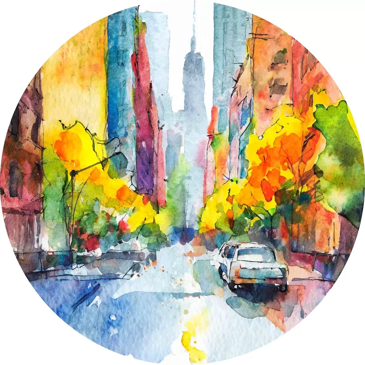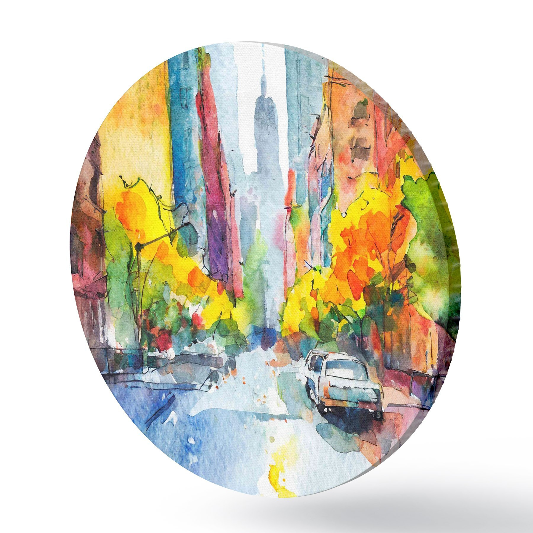 Runde Gemälde New York Aquarell, Straßen mit Wolkenkratzern, abstrakte Kunst r37345