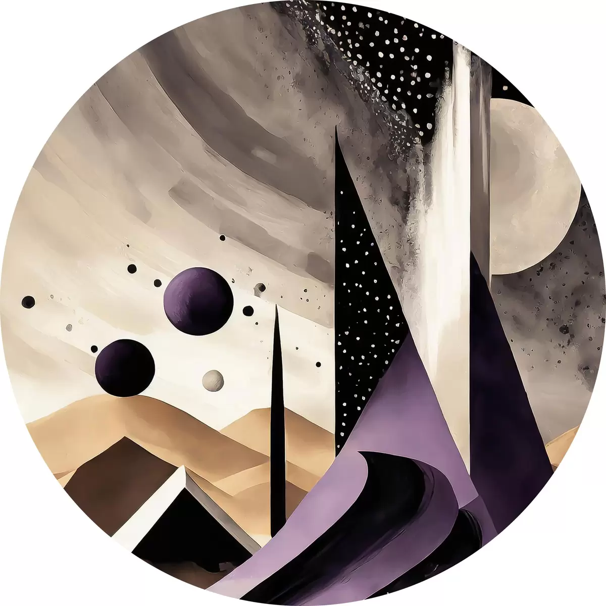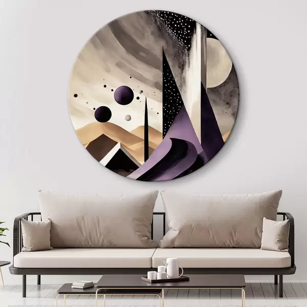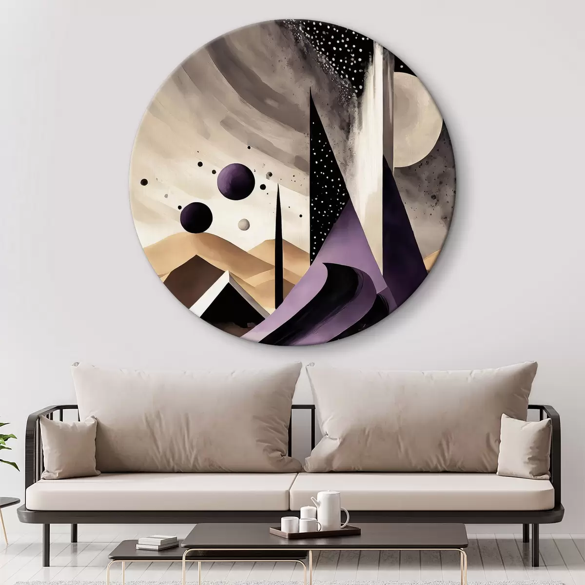 Runde Gemälde Lila und weiße Wüstenlandschaft r37359