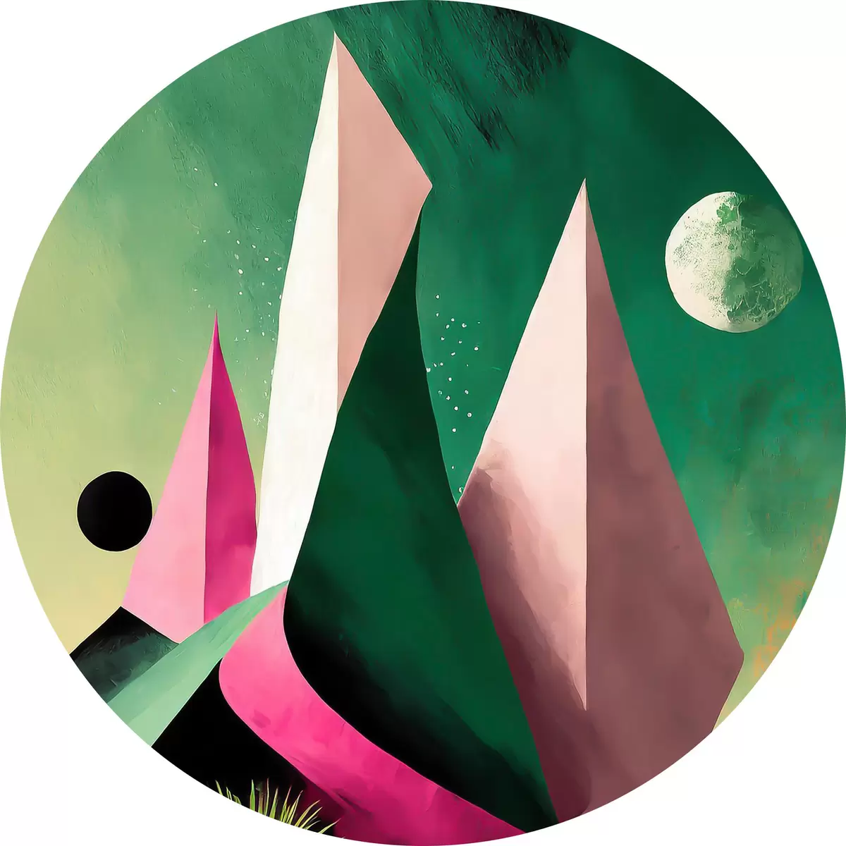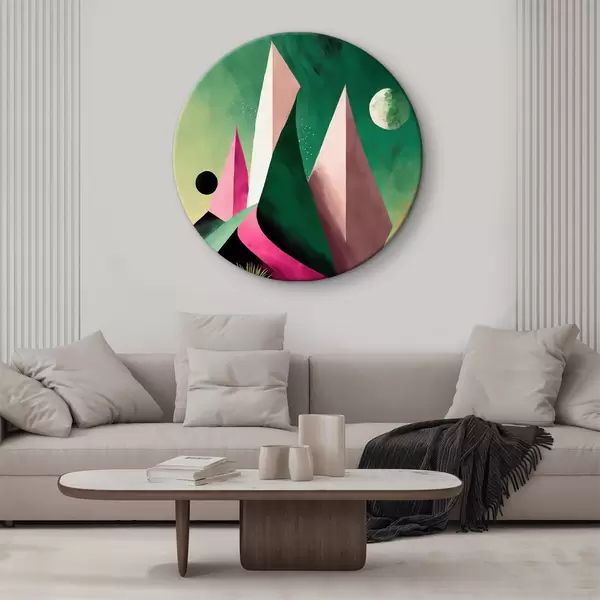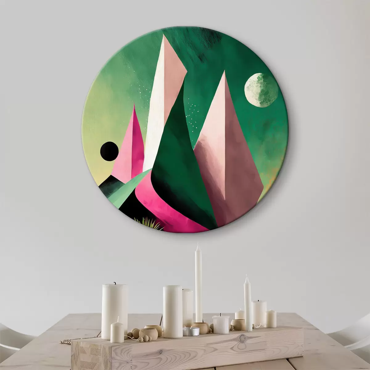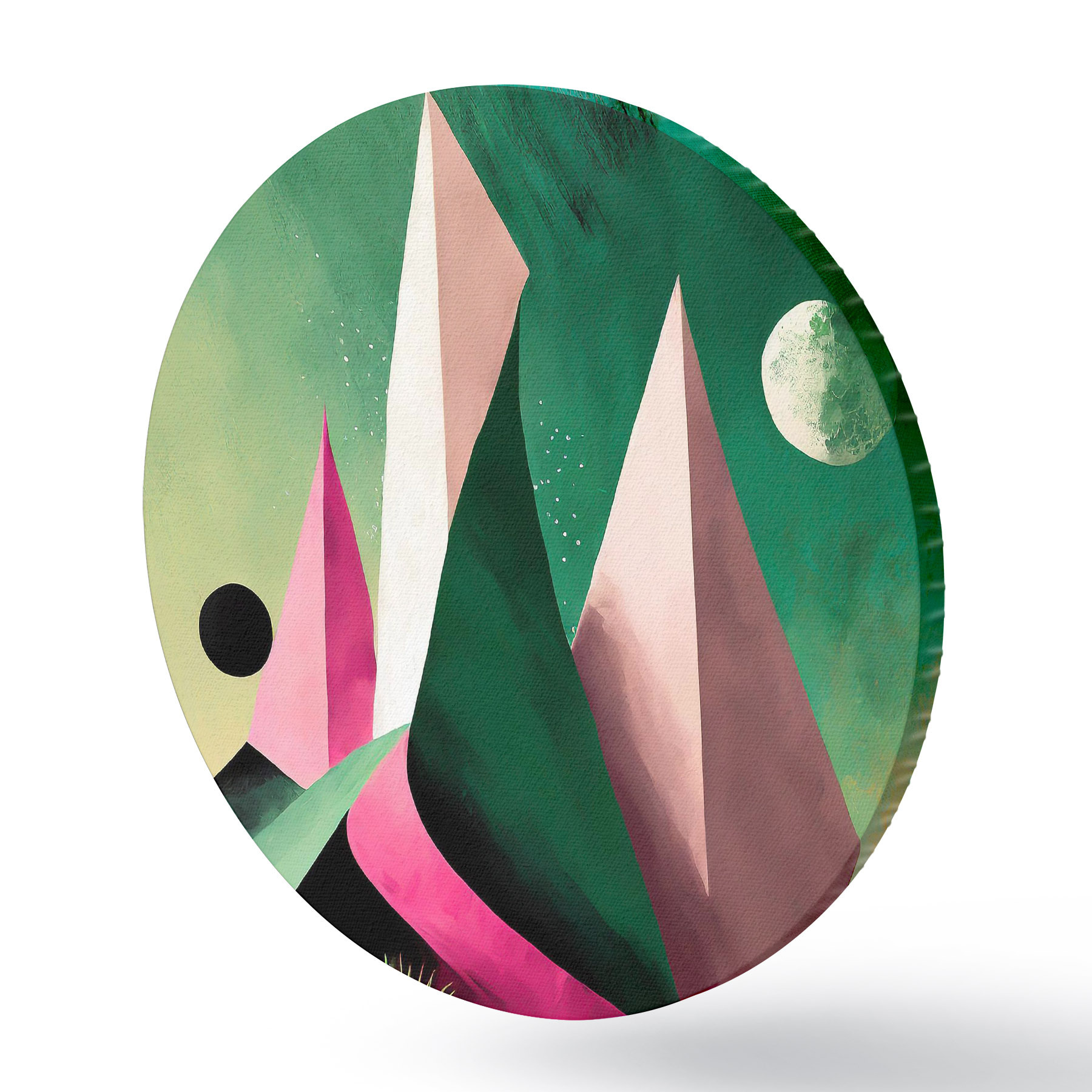 Runde Gemälde Wüstenlandschaft mit Bäumen und Bergen r37360
