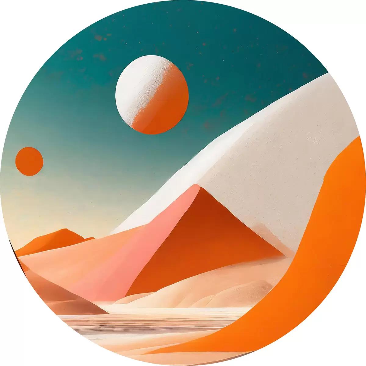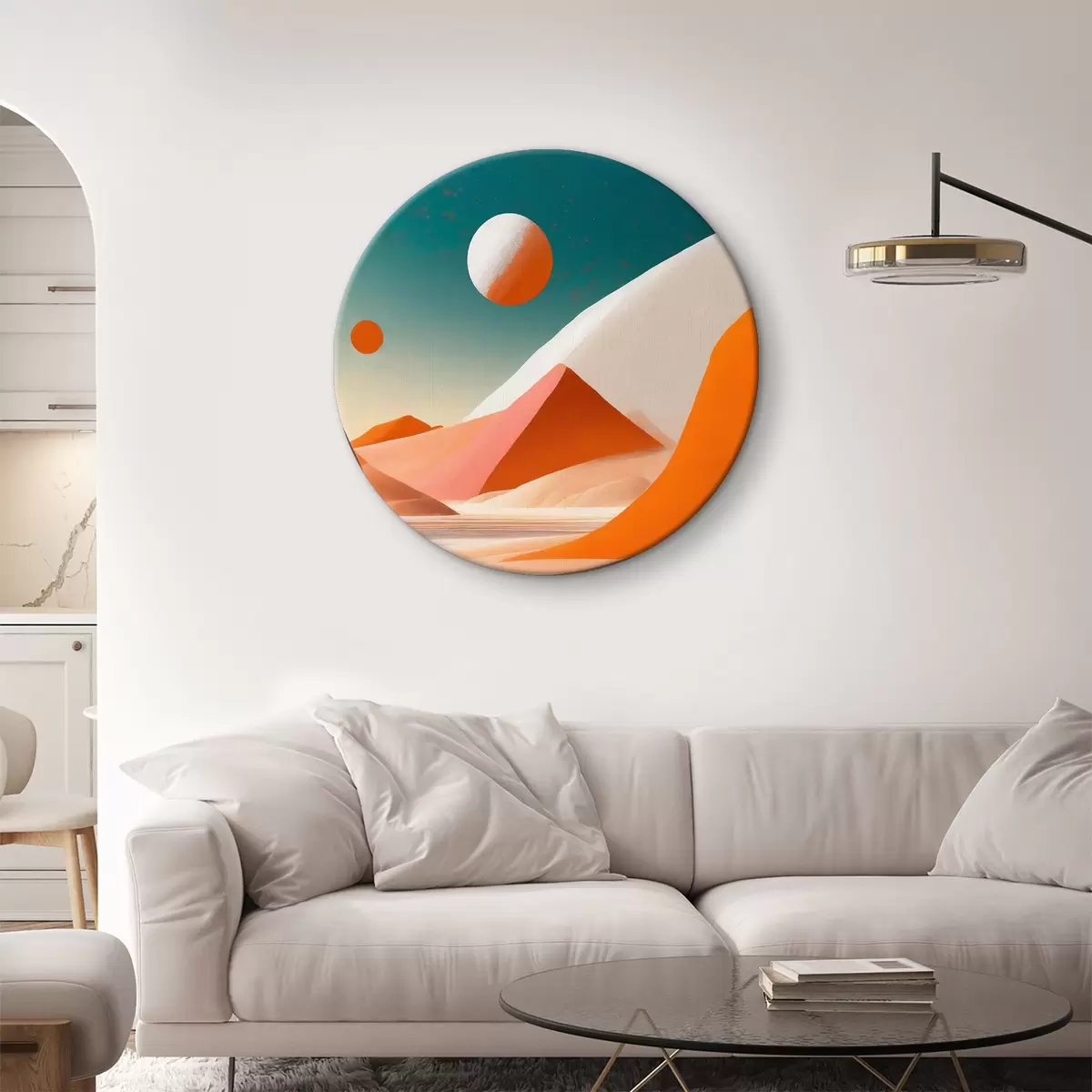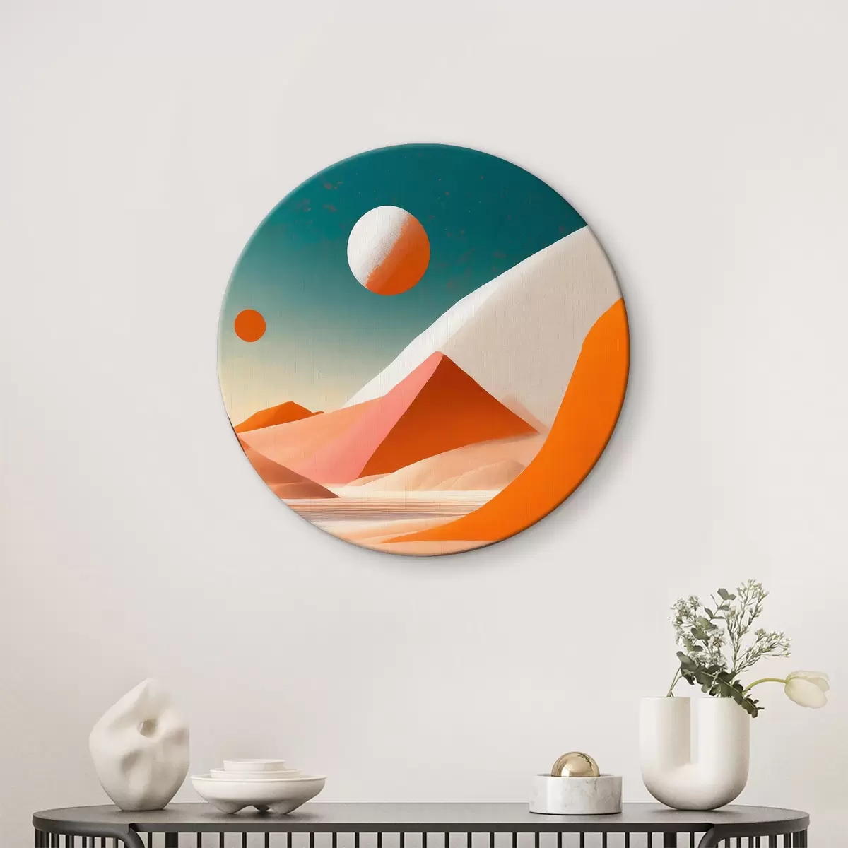 Runde Gemälde Wüstenlandschaft mit Sandhügeln und einer Wasserfläche r37367