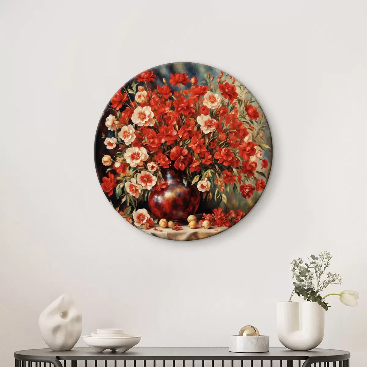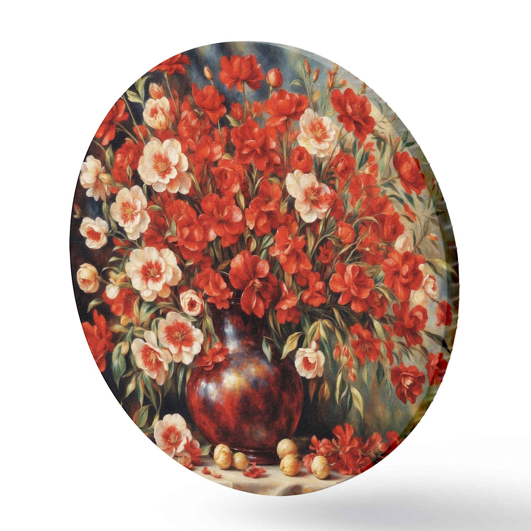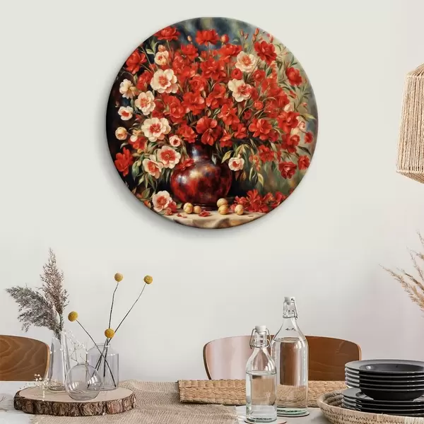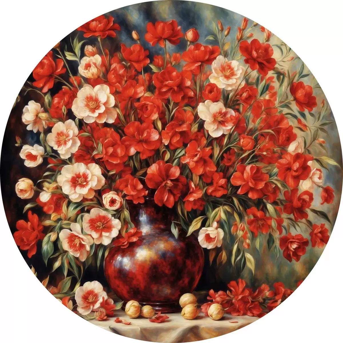 Runde Gemälde Roter Blumenstrauß im Stil von Auguste Renoir r37439