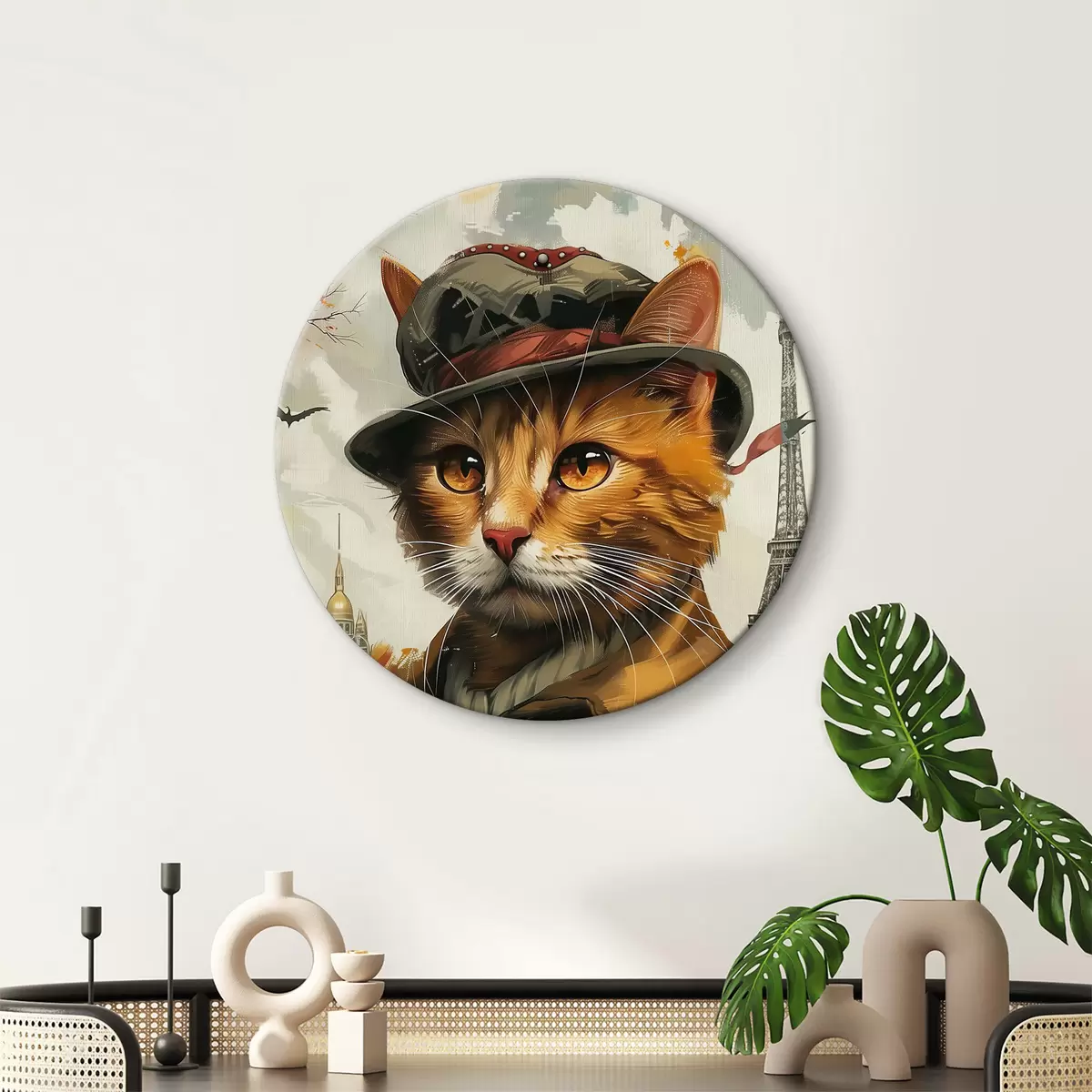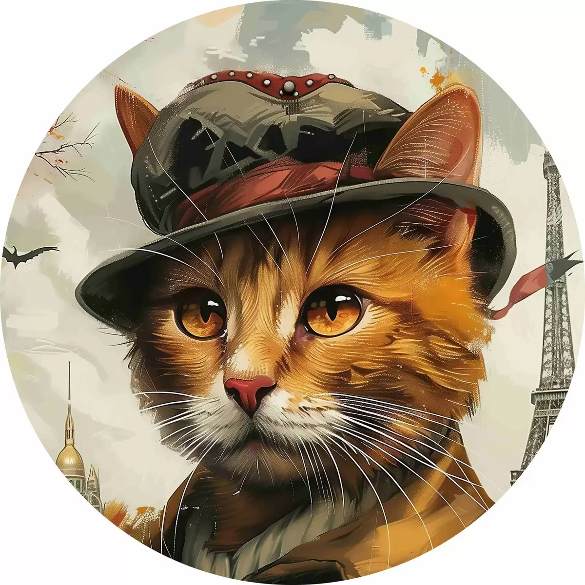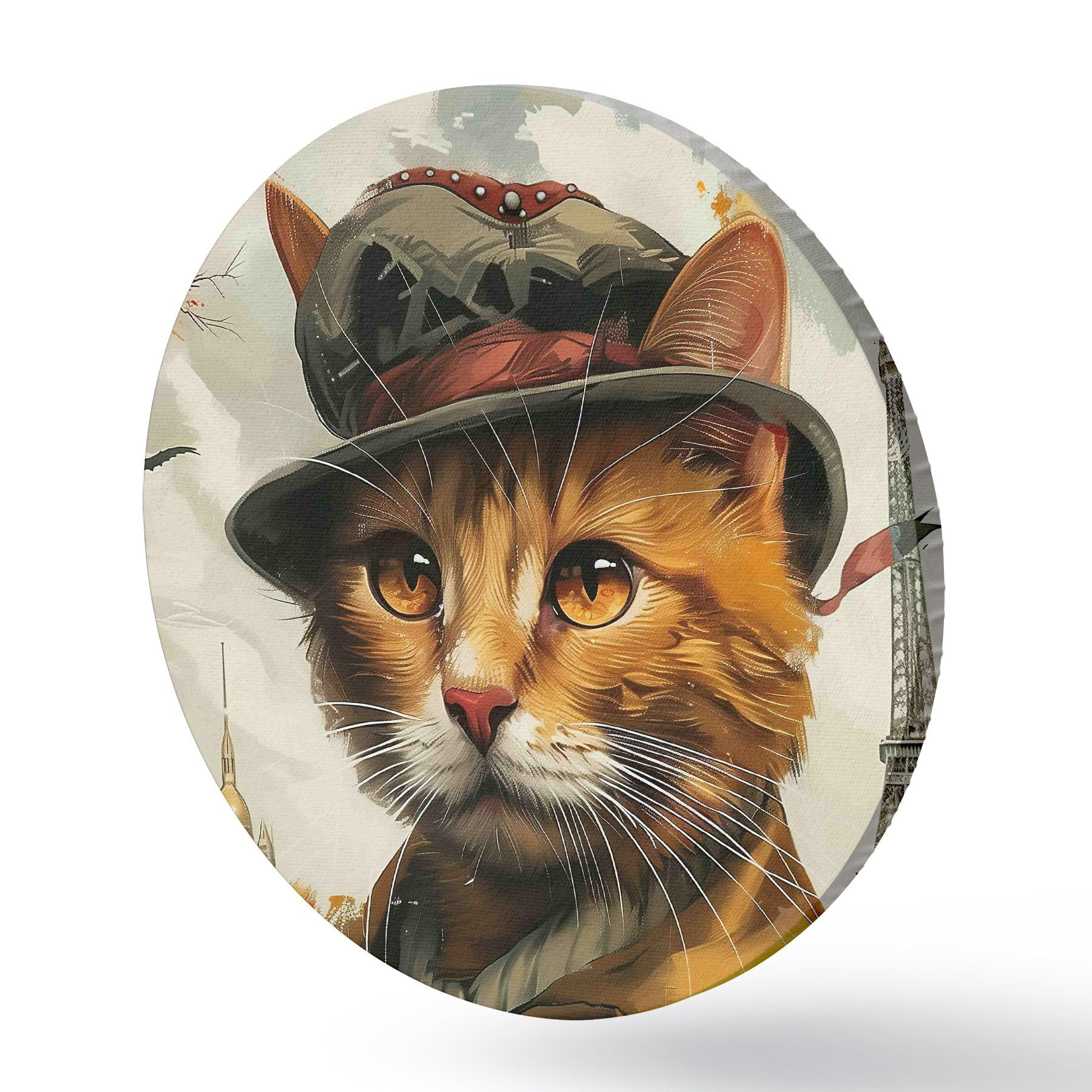 Runde Gemälde Katze mit Hut und Mantel r37457