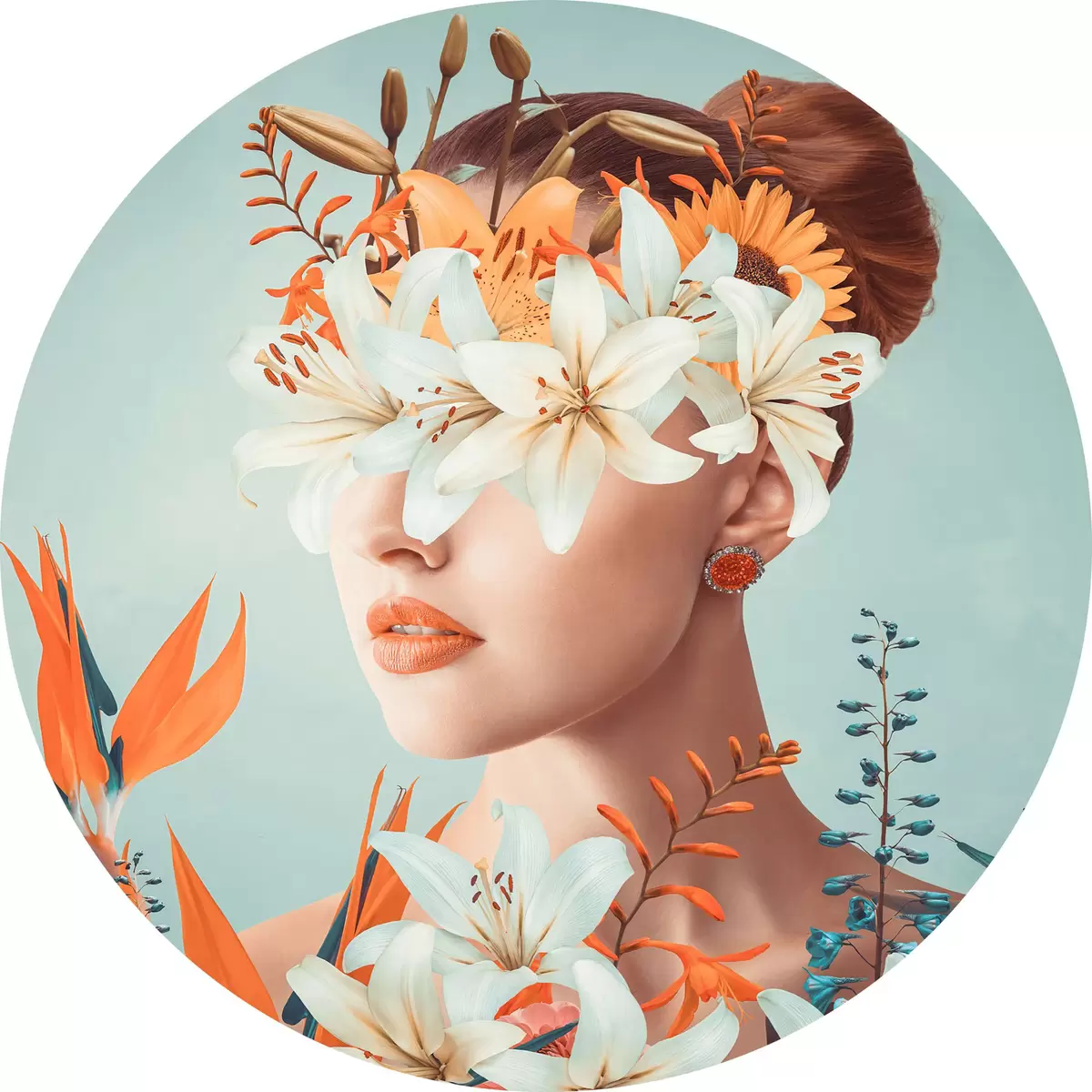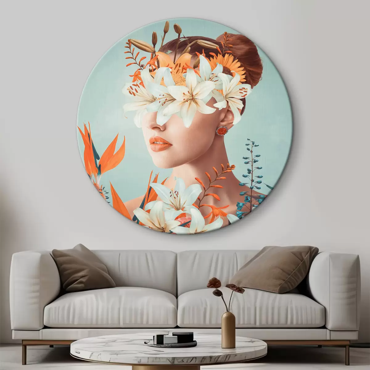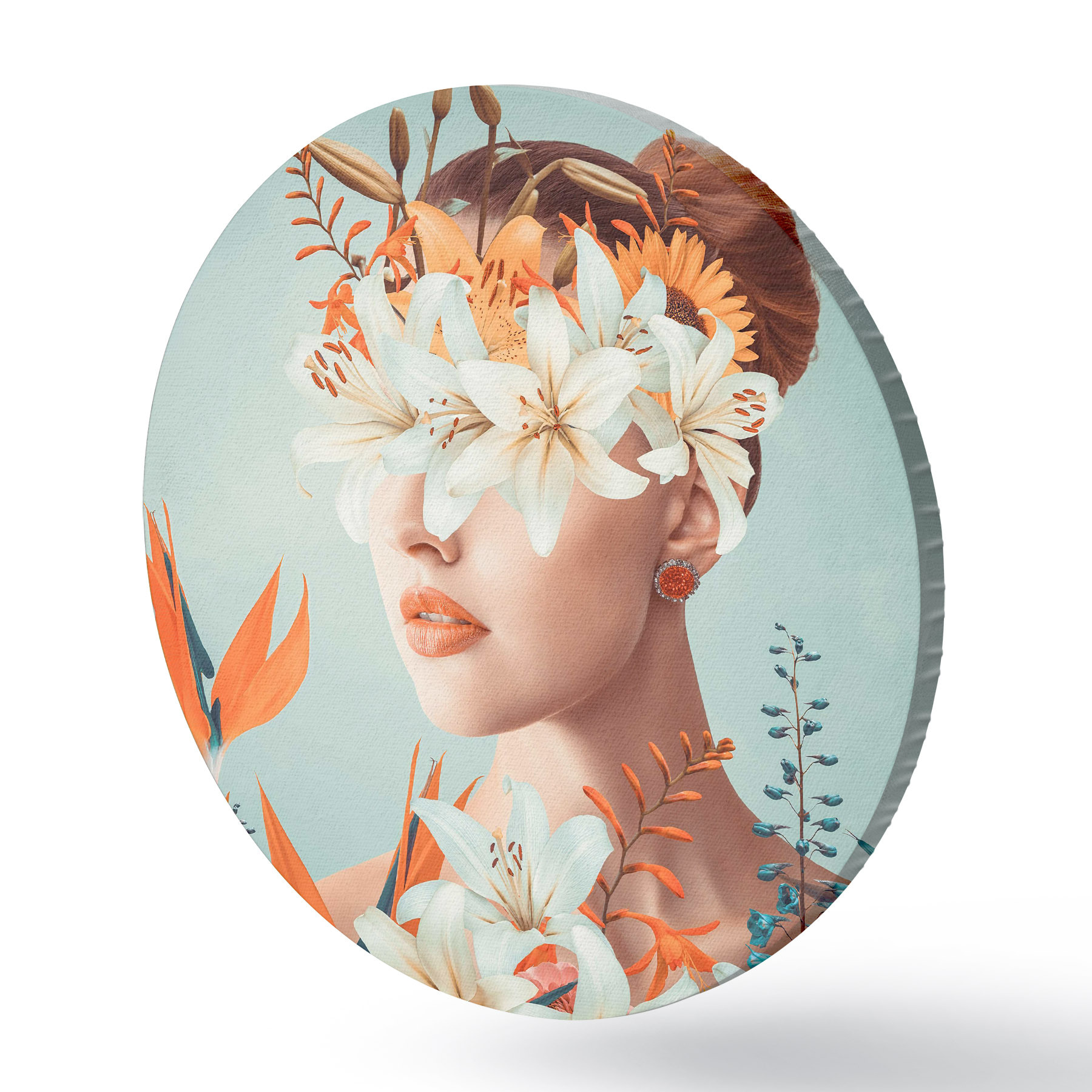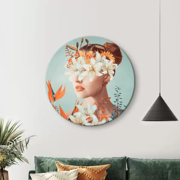 Runde Gemälde Frau mit Blumen um ihre Augen r37480