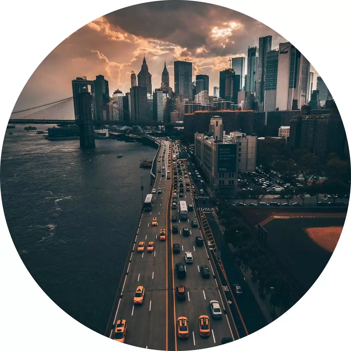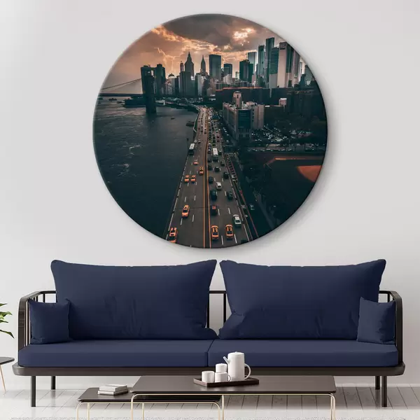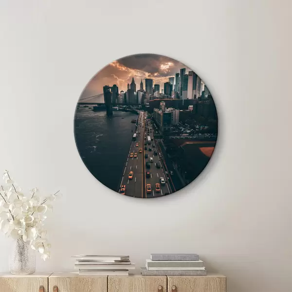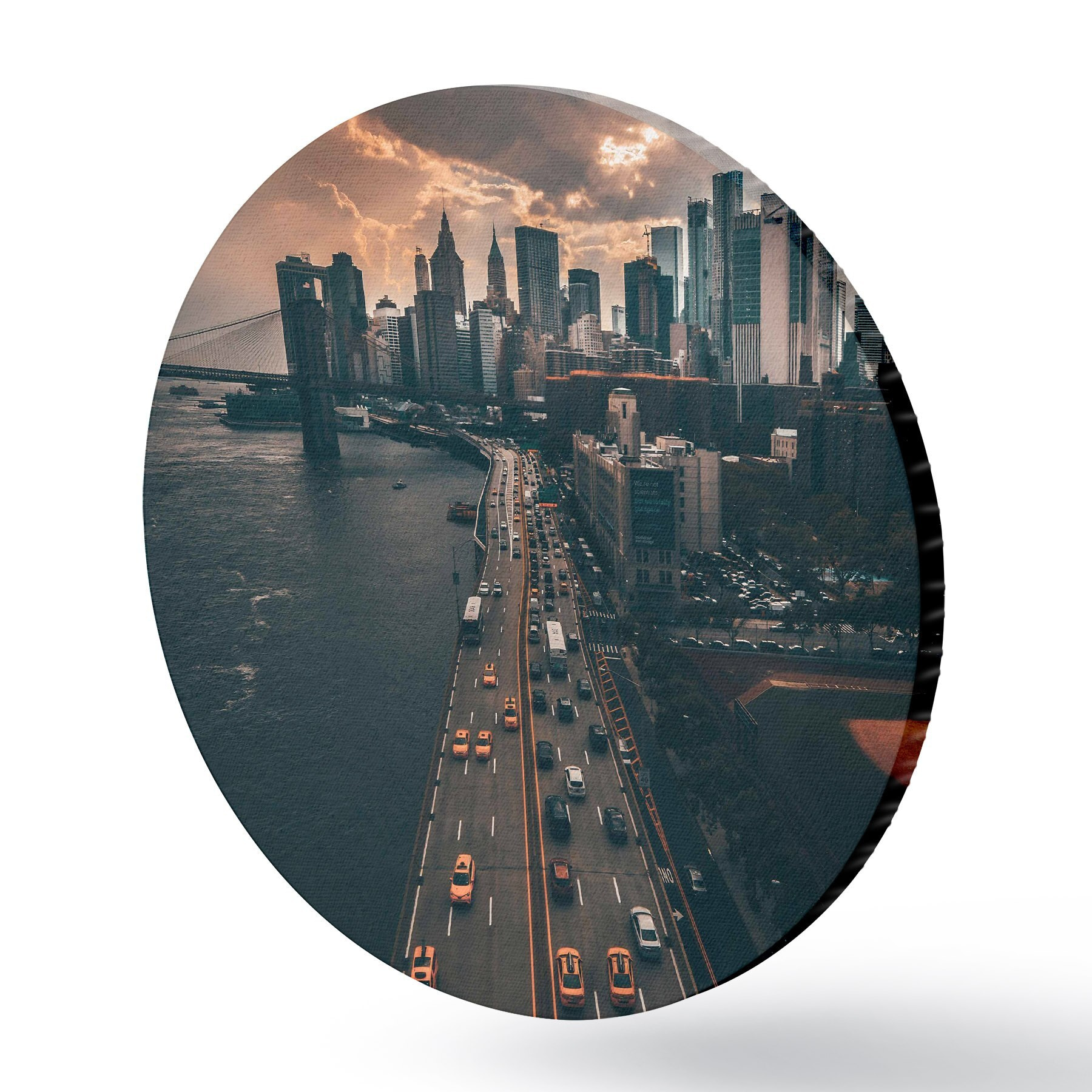 Runde Gemälde Brücke über das Wasser mit Autos und Gebäuden im Hintergrund r37482