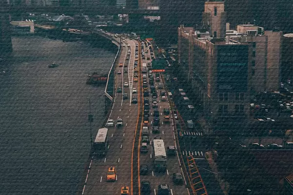 Bild Brücke über das Wasser mit Autos und Gebäuden im Hintergrund Nr r37482