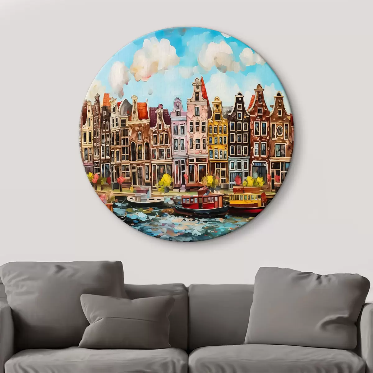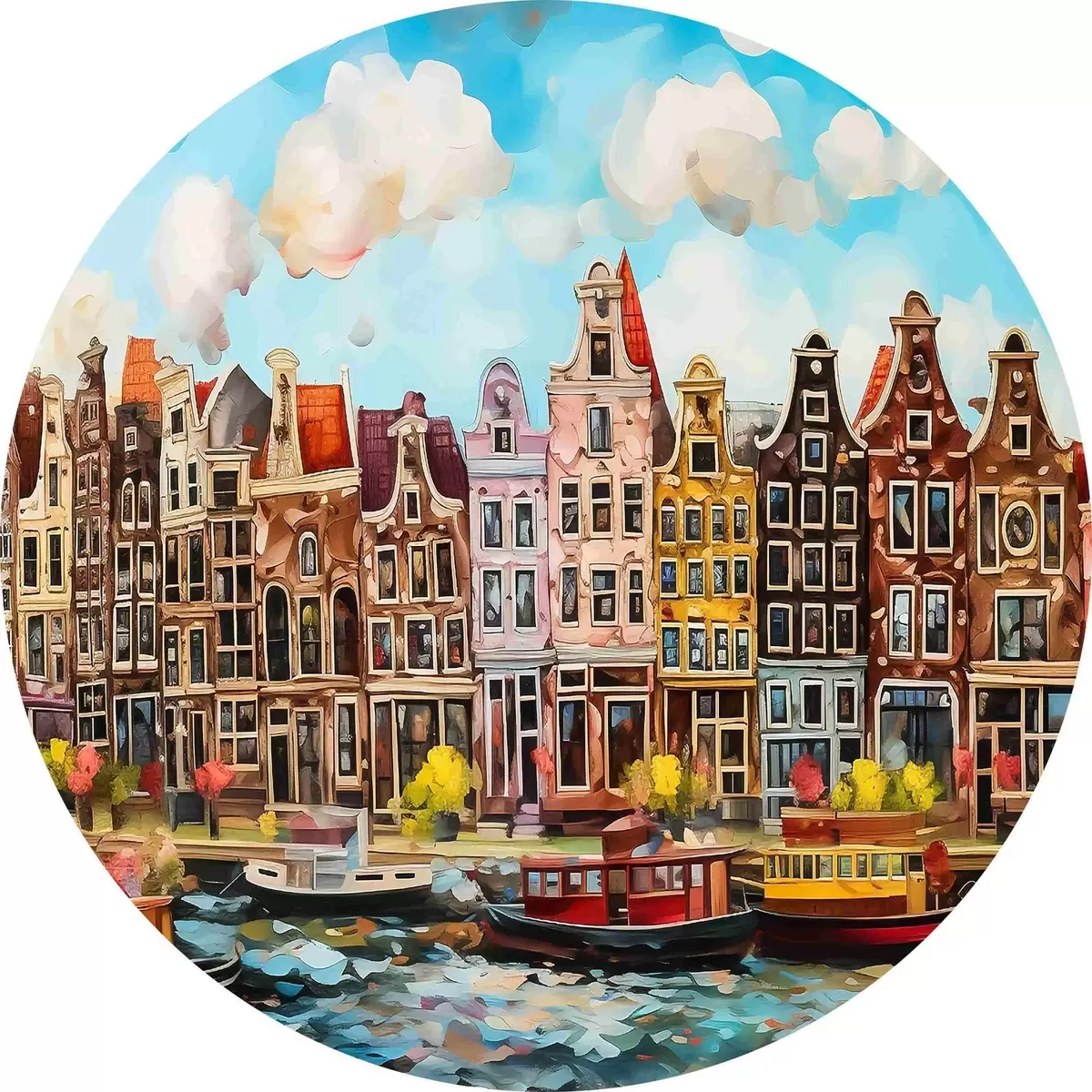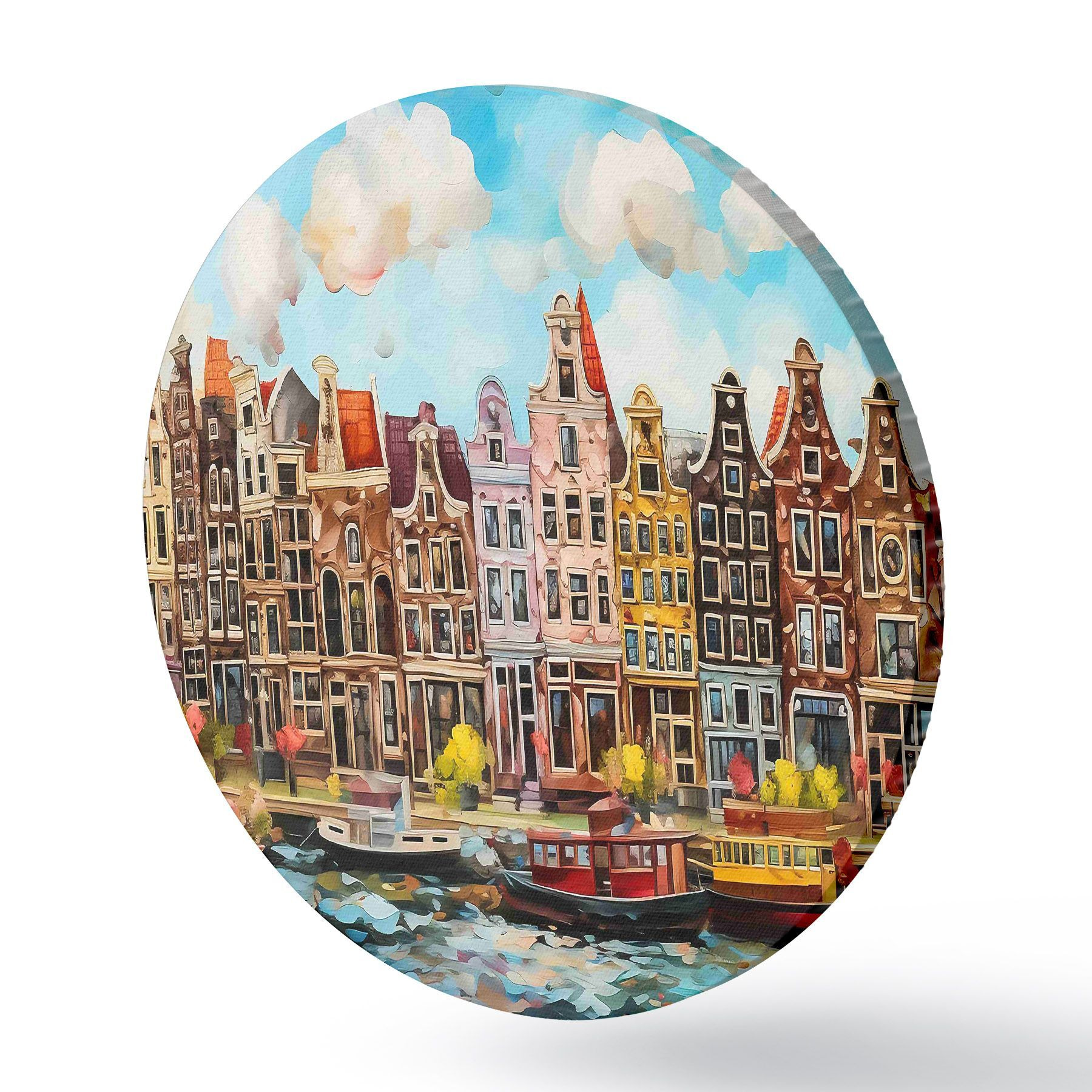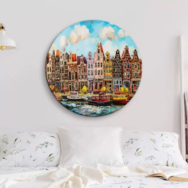 Runde Gemälde Aquarell, das eine Stadt darstellt r37555
