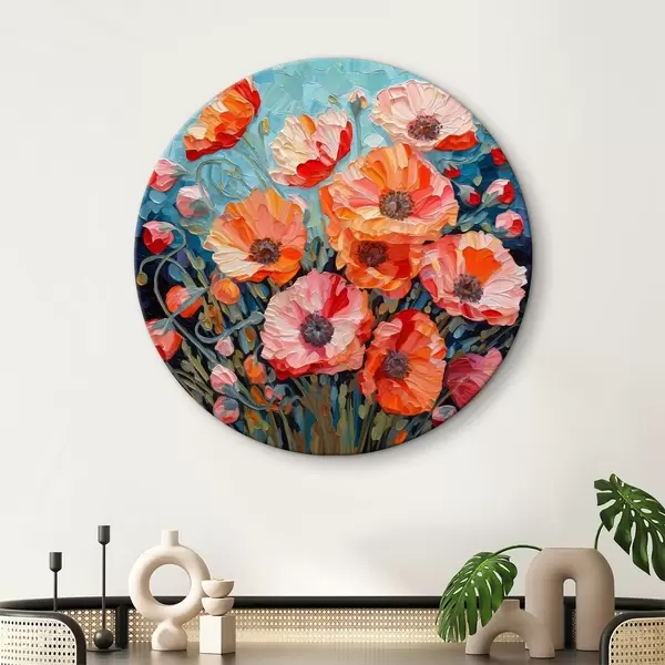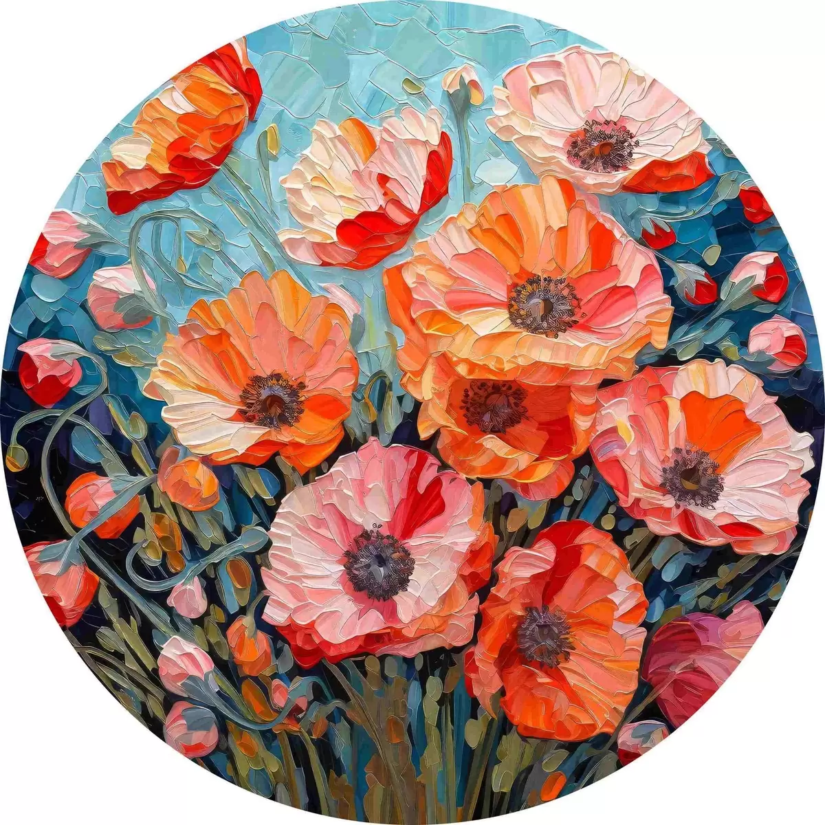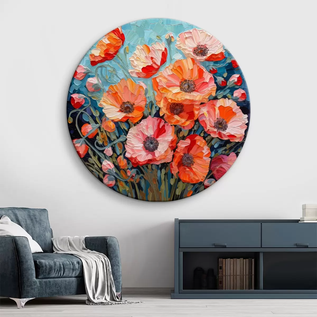 Runde Gemälde Aquarellierte Mohnblumen r37556