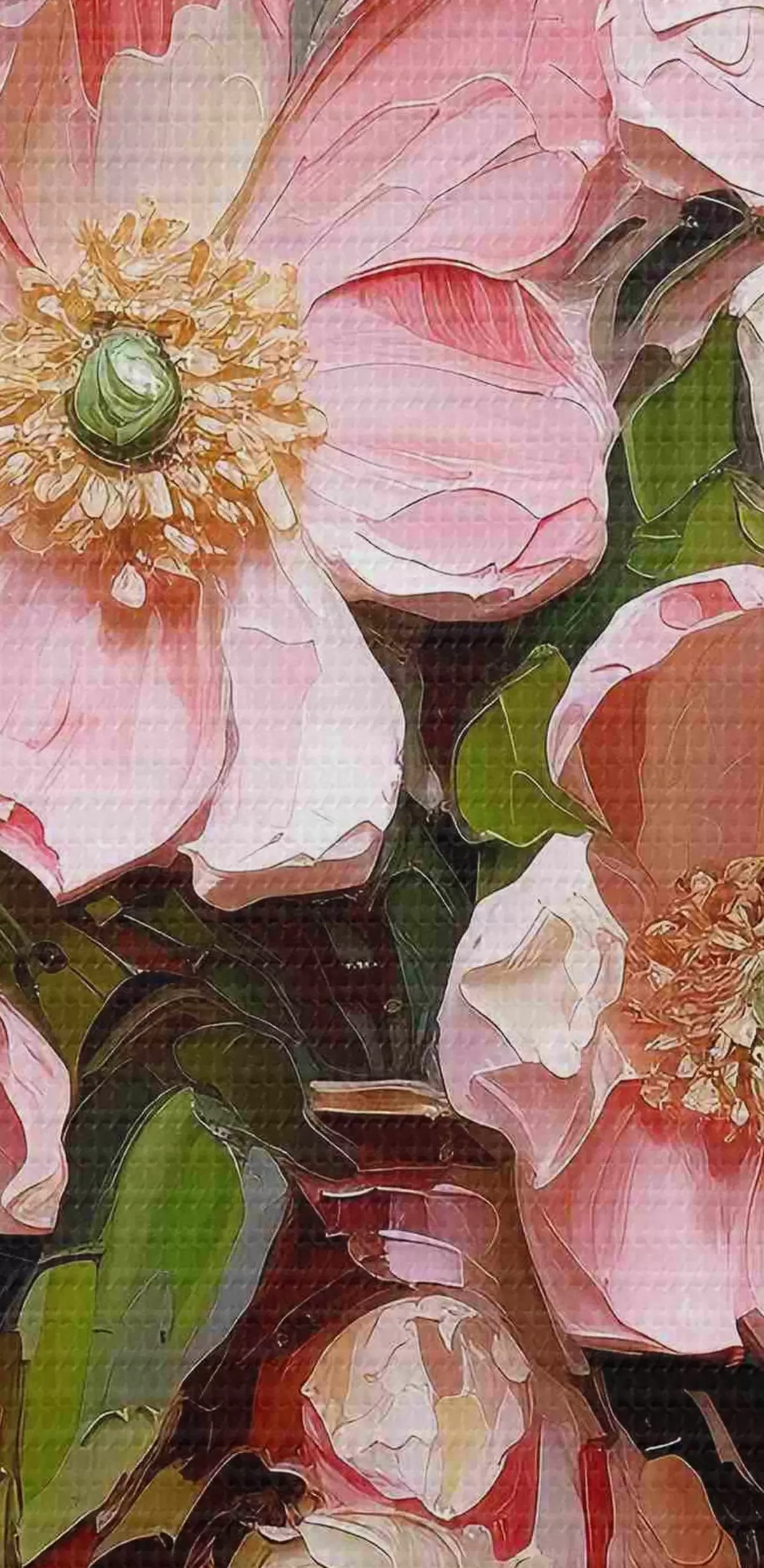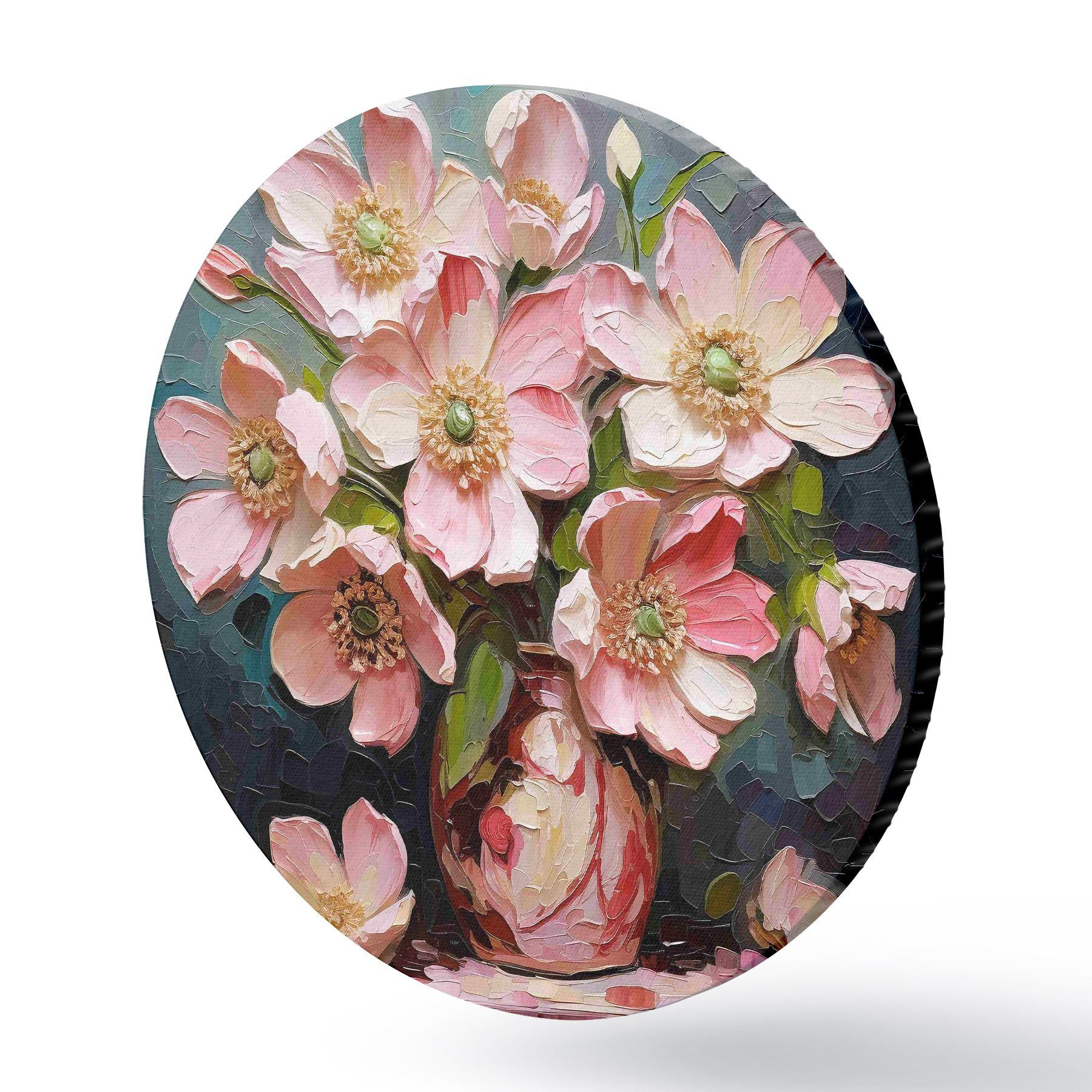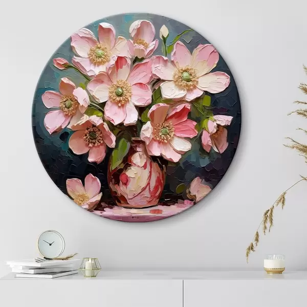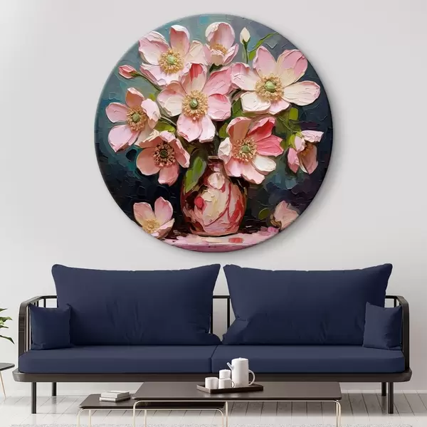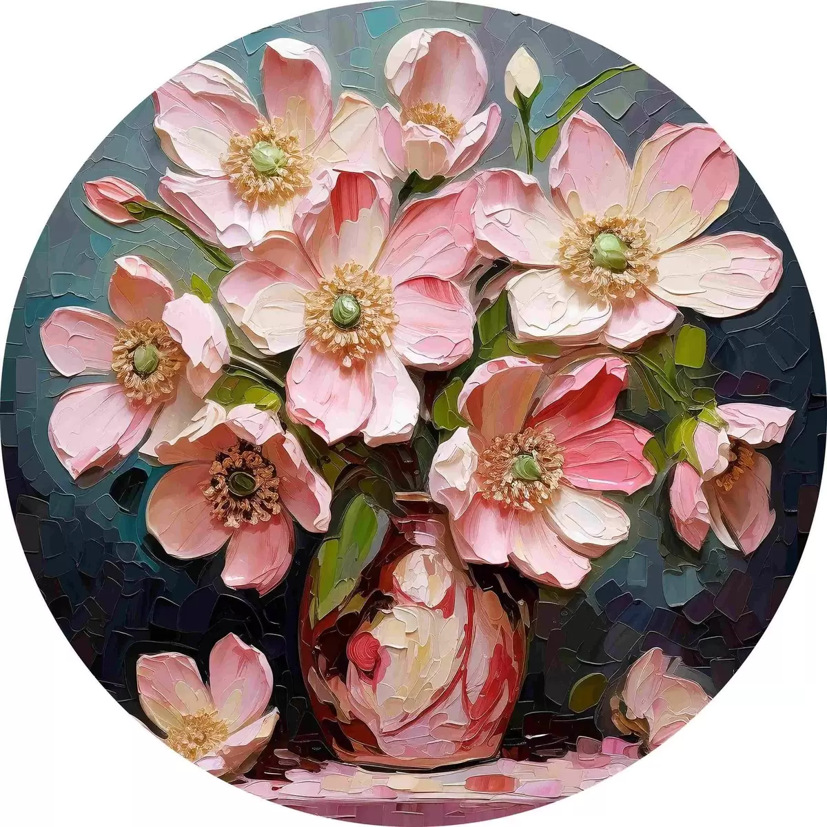 Runde Gemälde Ein Gemälde mit rosa Blumen in einer Vase r37558