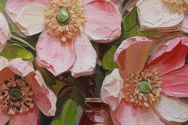 Bild Ein Gemälde mit rosa Blumen in einer Vase Nr r37558