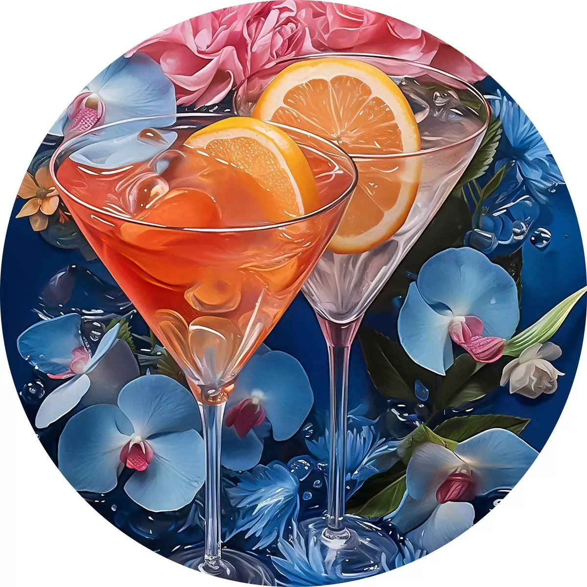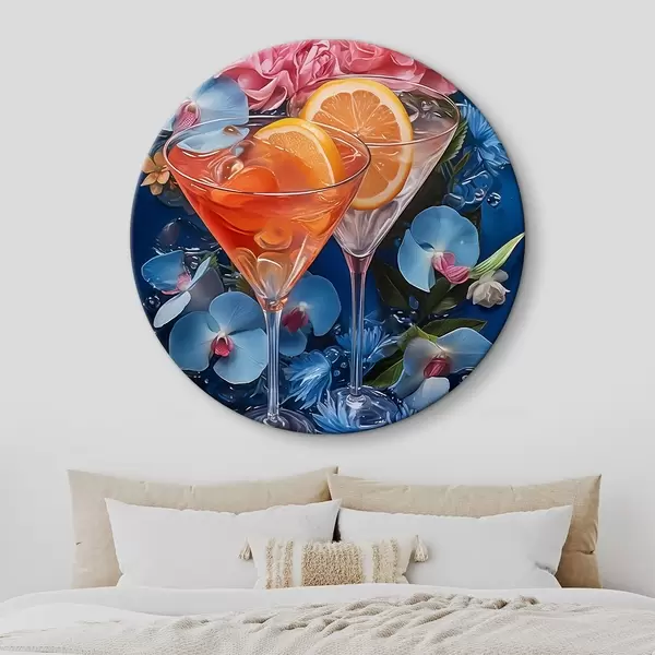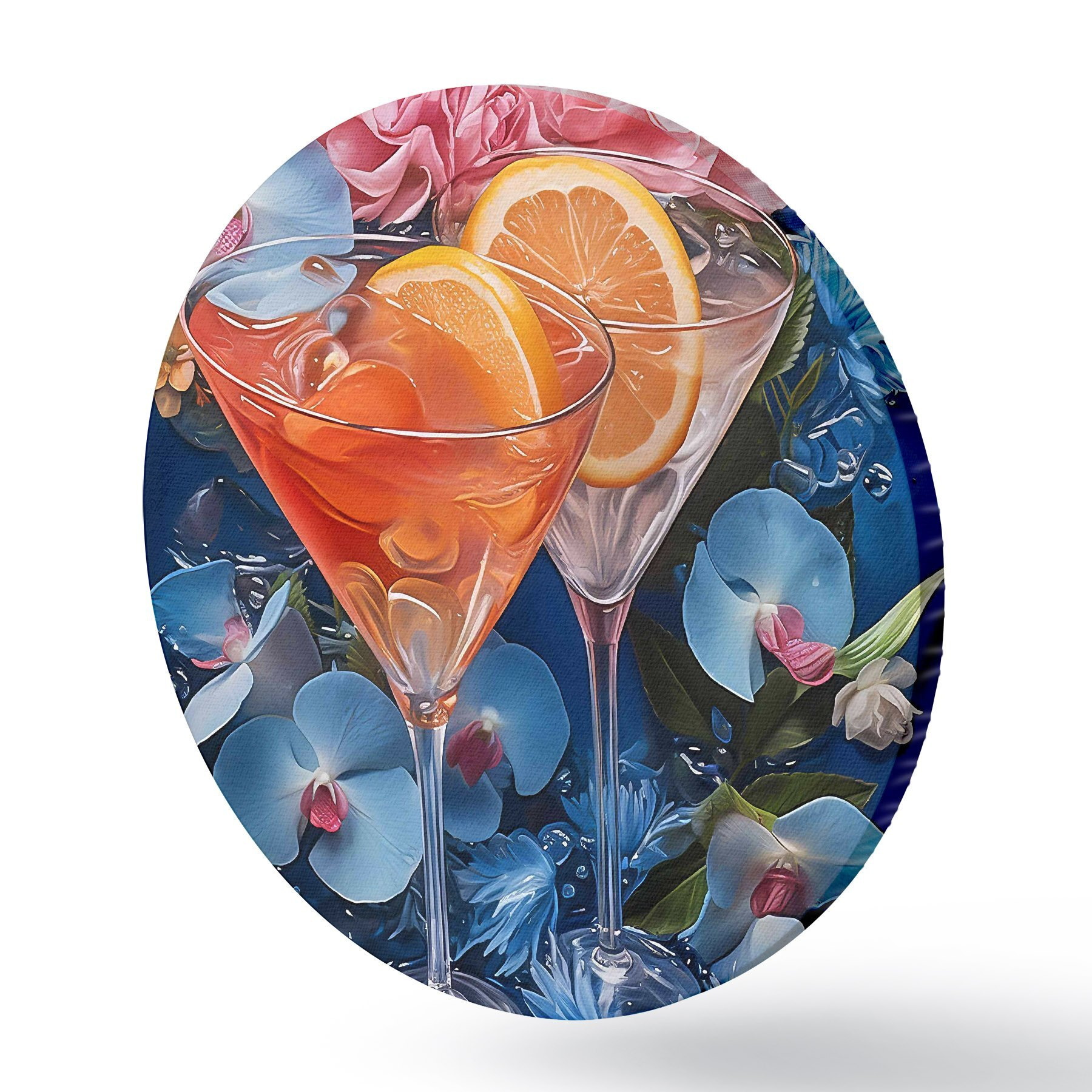 Runde Gemälde Eine Brille mit Orangen und Blumen r37564