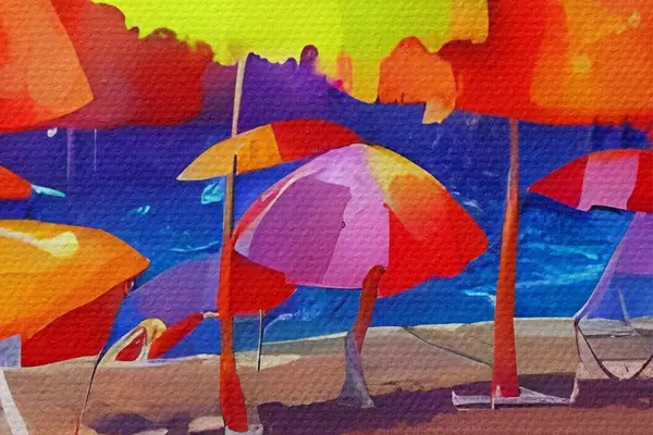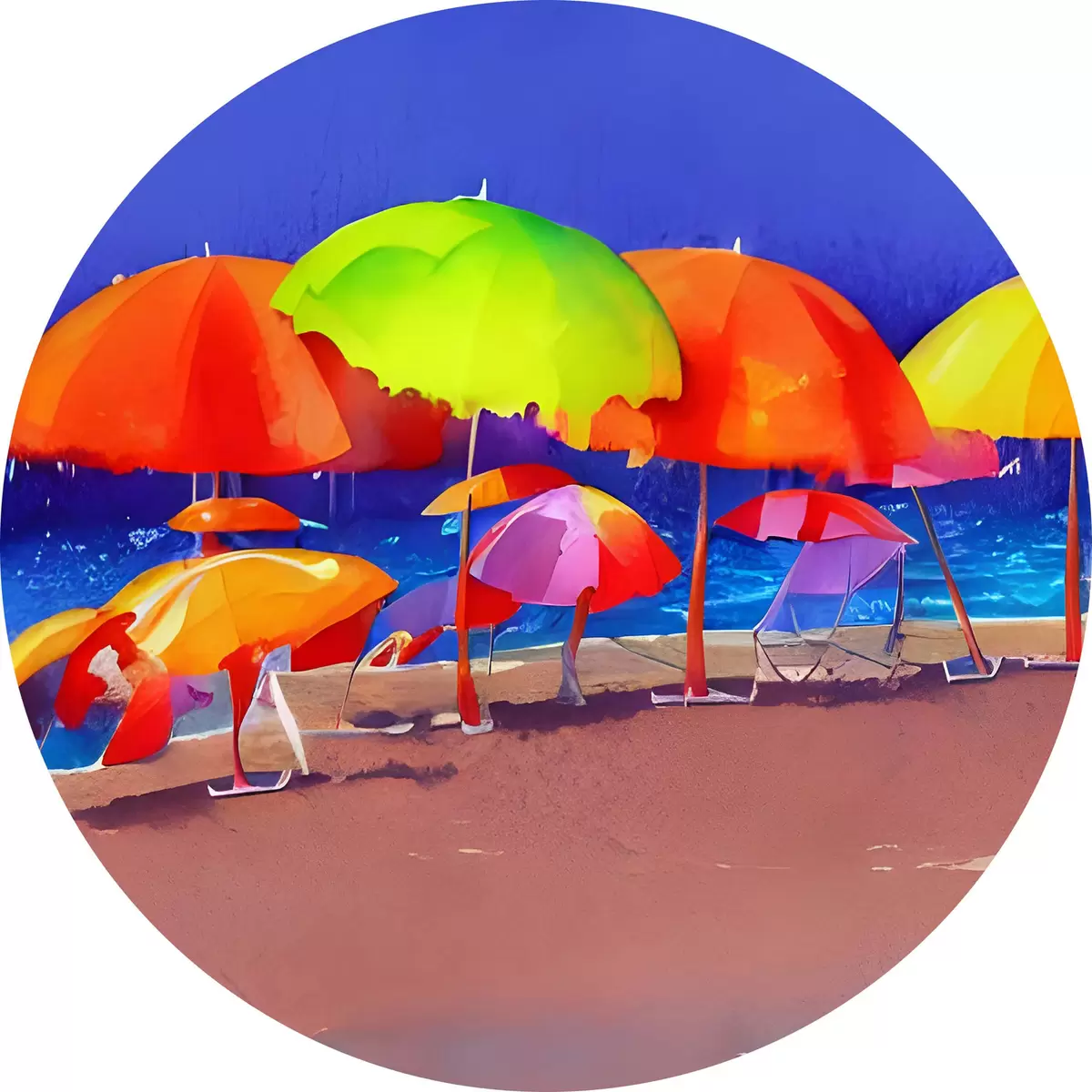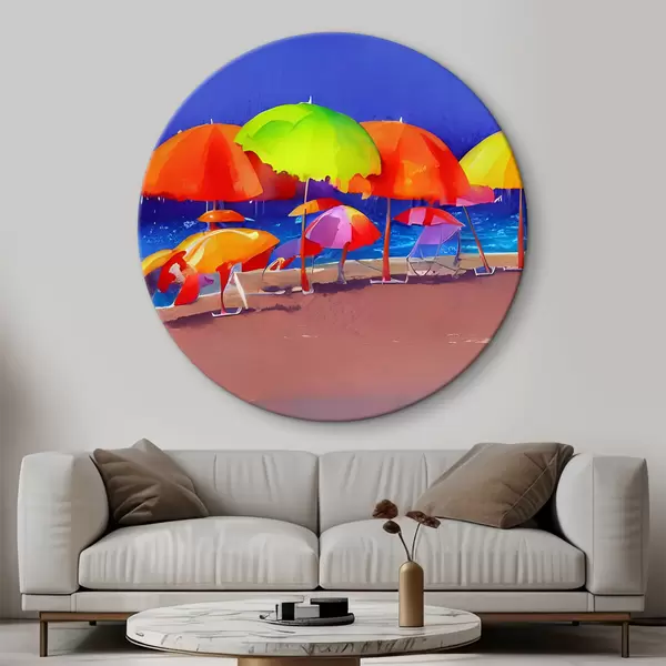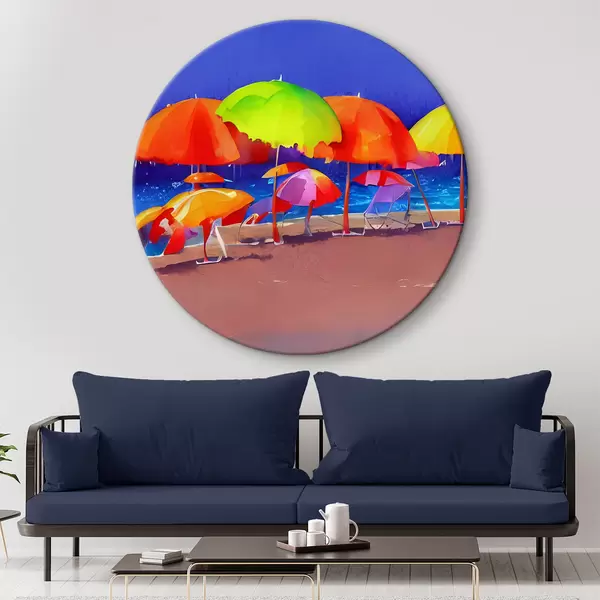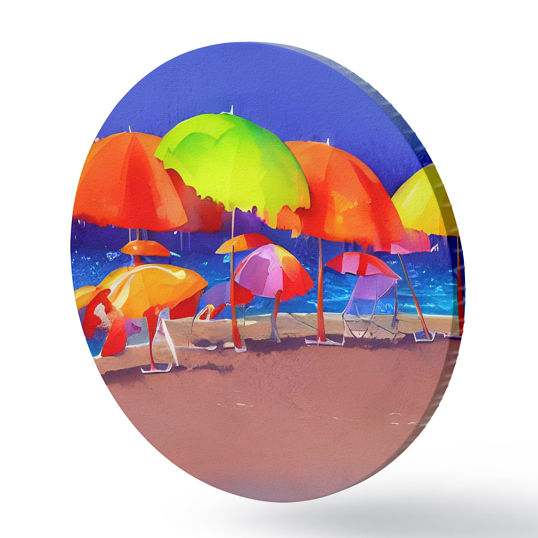 Runde Gemälde Gruppe von bunten Sonnenschirmen am Strand r37626