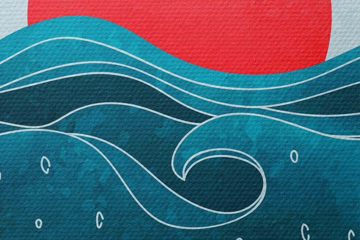 Bild Wasser mit Wellen und roter Sonne Nr r37640