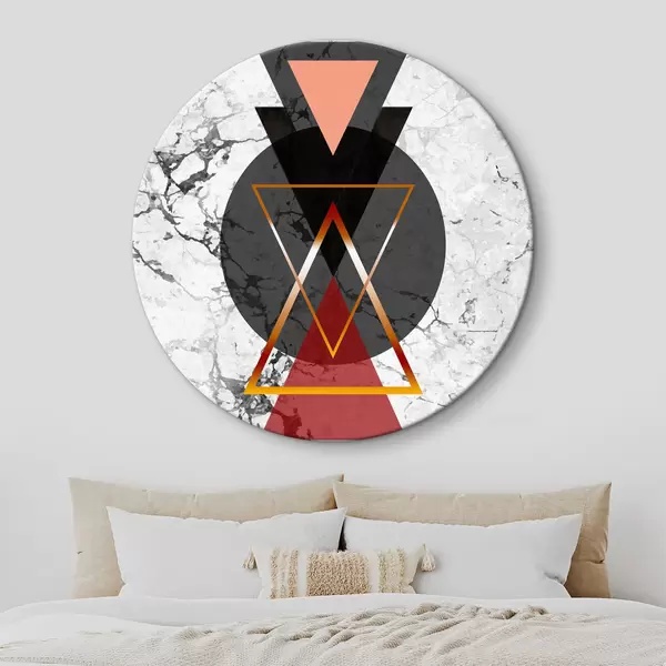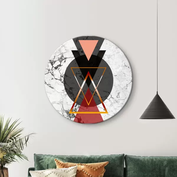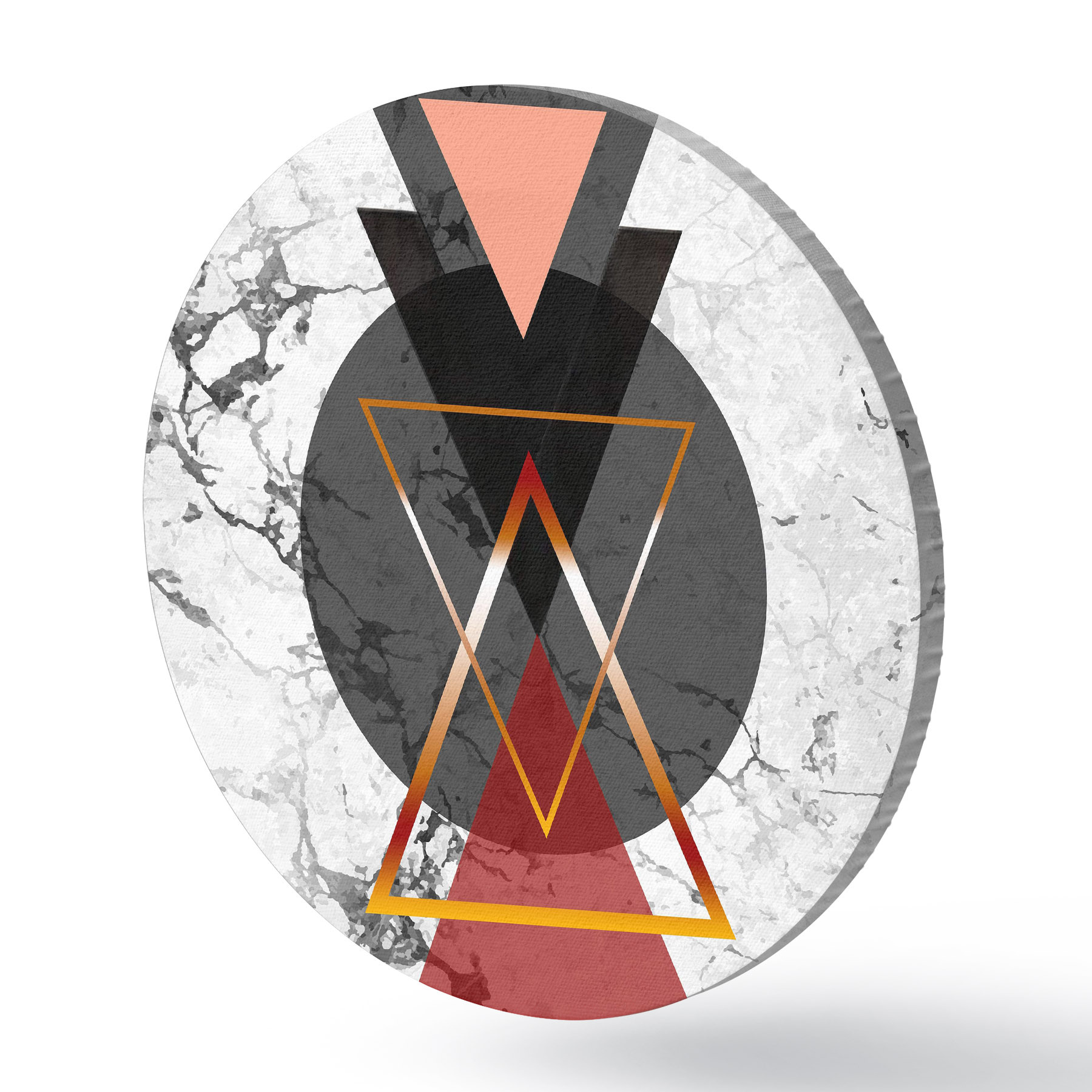 Runde Gemälde Schwarzes und rotes Dreieck und Kreis auf Marmoroberfläche r37771