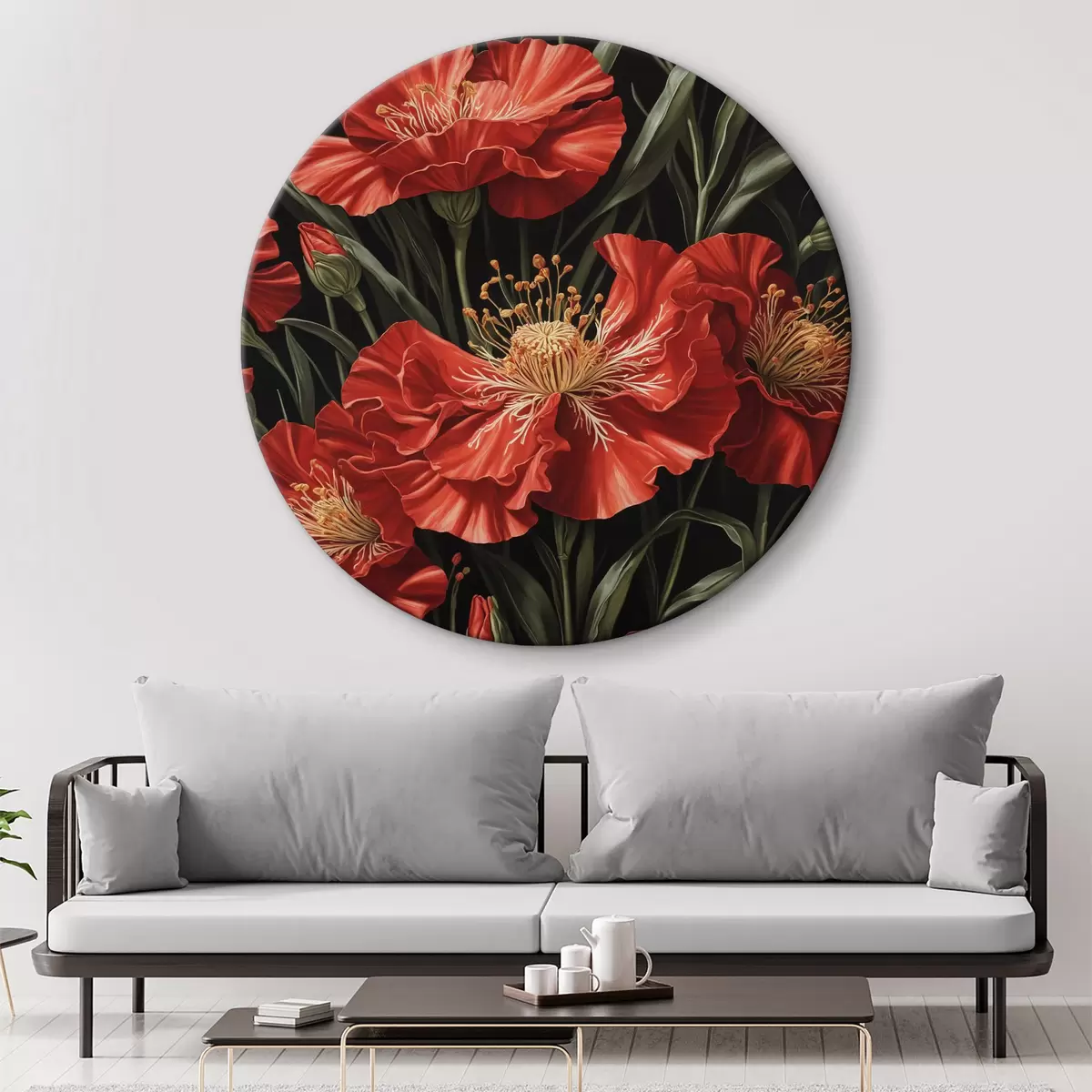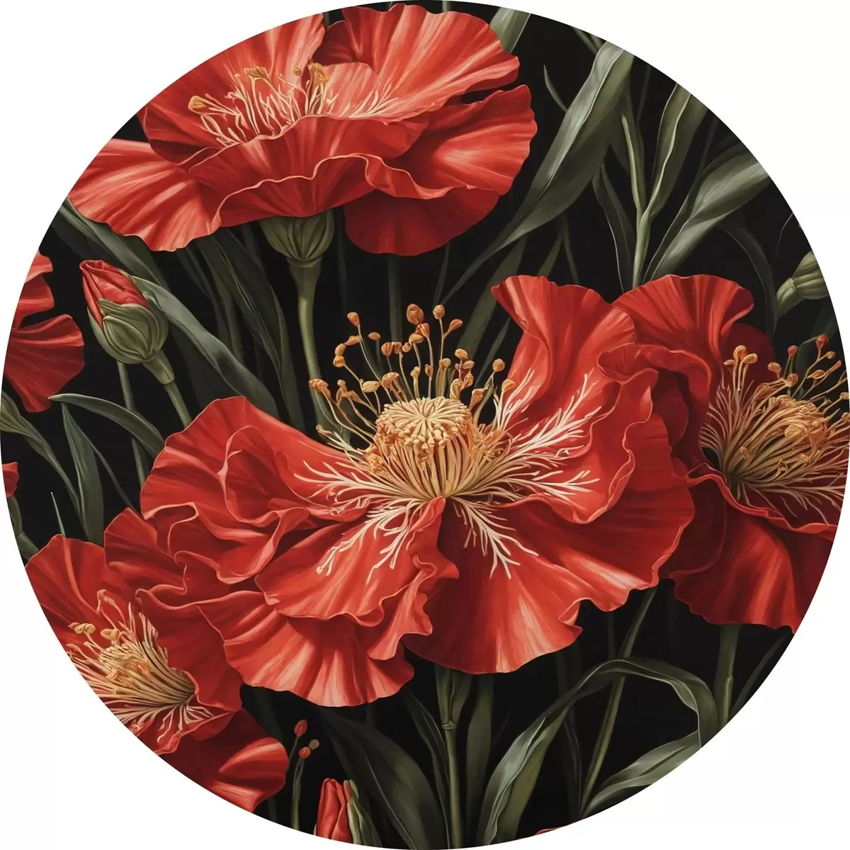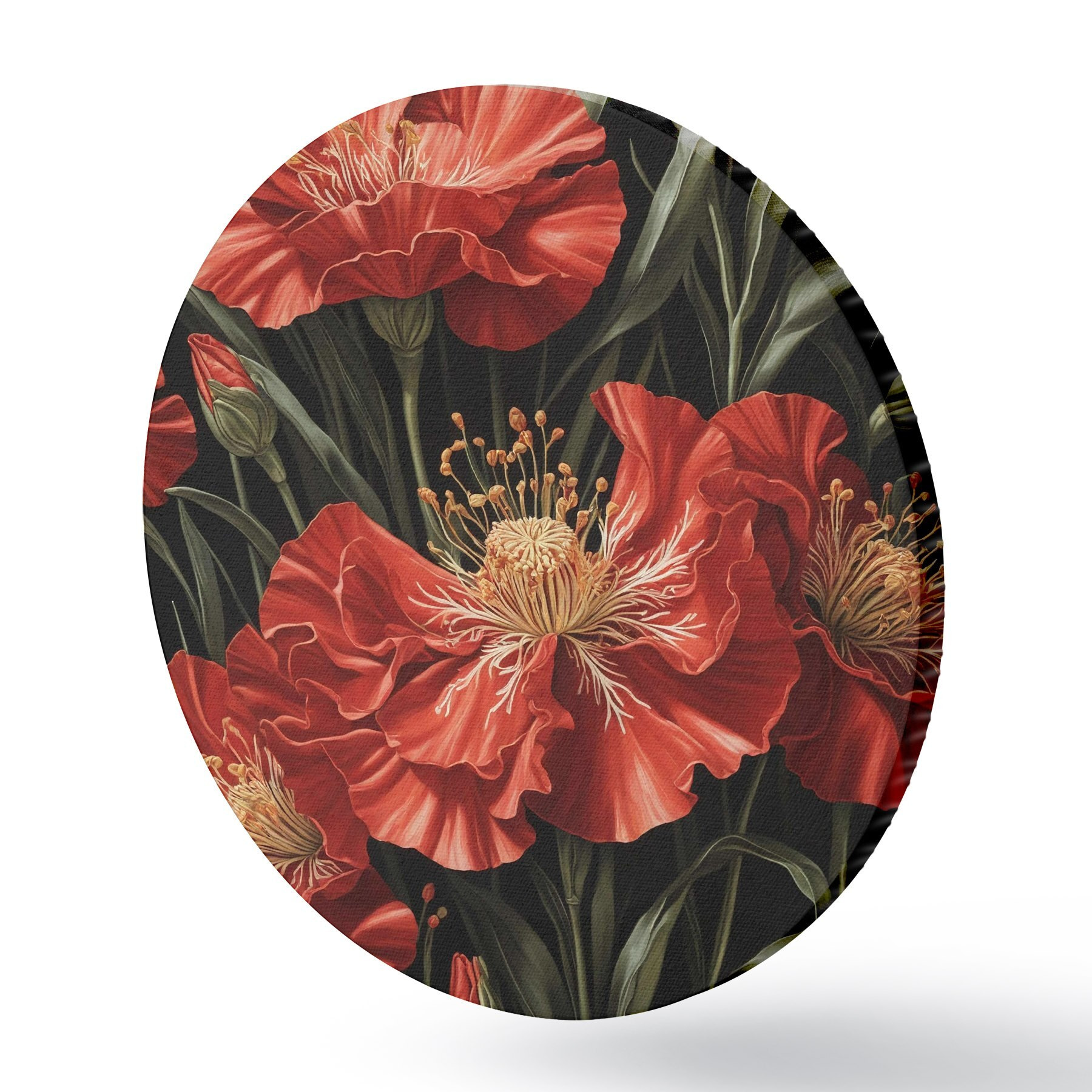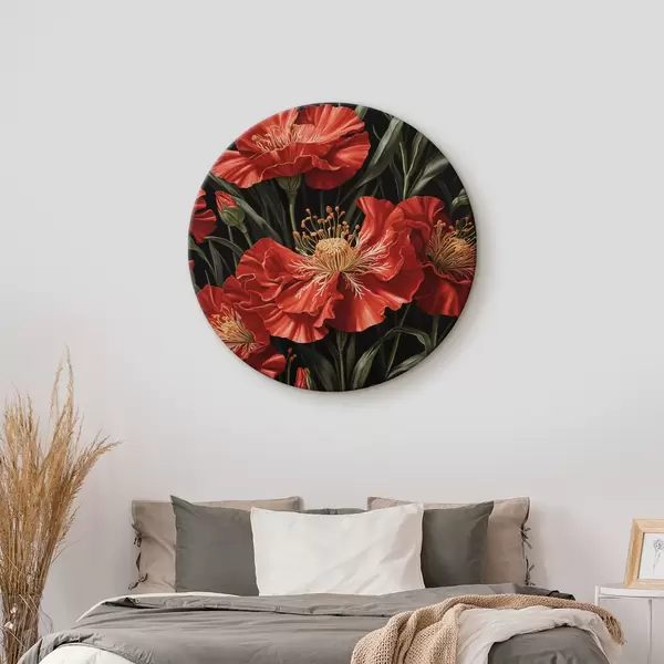 Runde Gemälde Rote Mohnblumen r37774