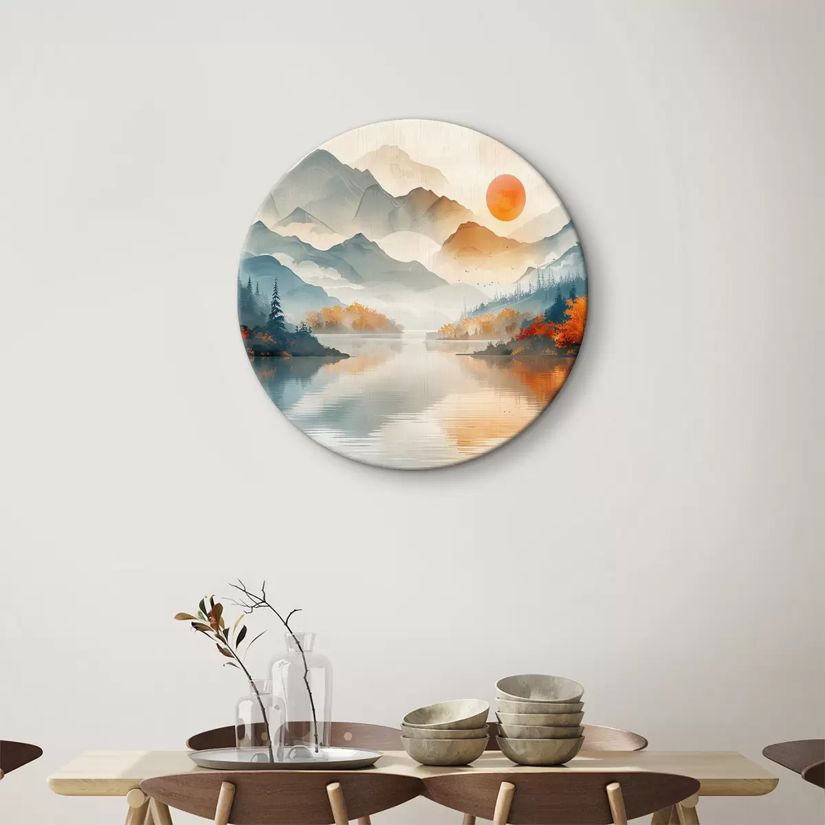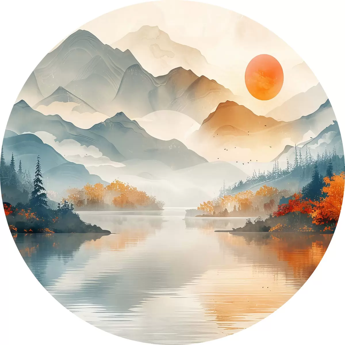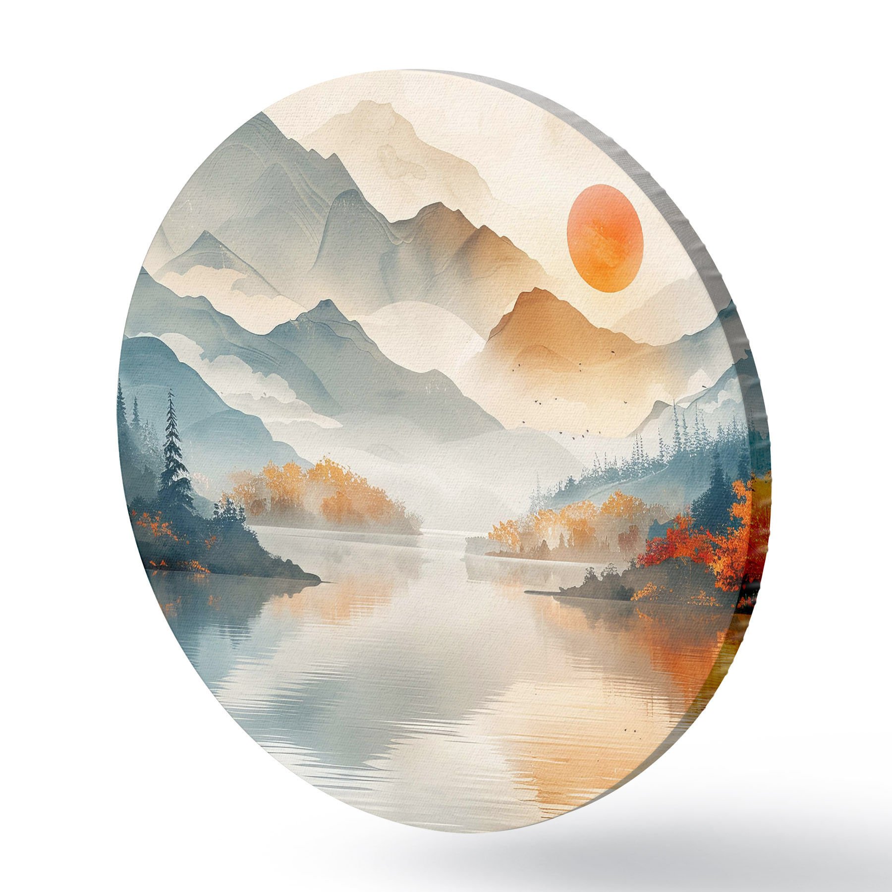 Runde Gemälde Landschaft mit Bergen und Wasser r37780