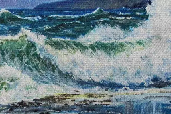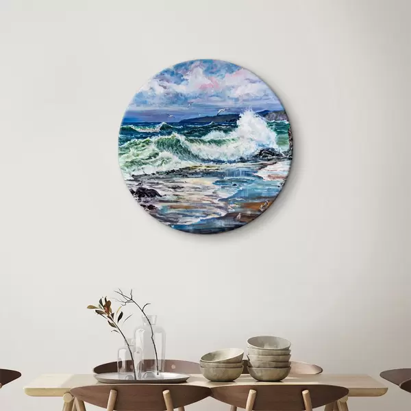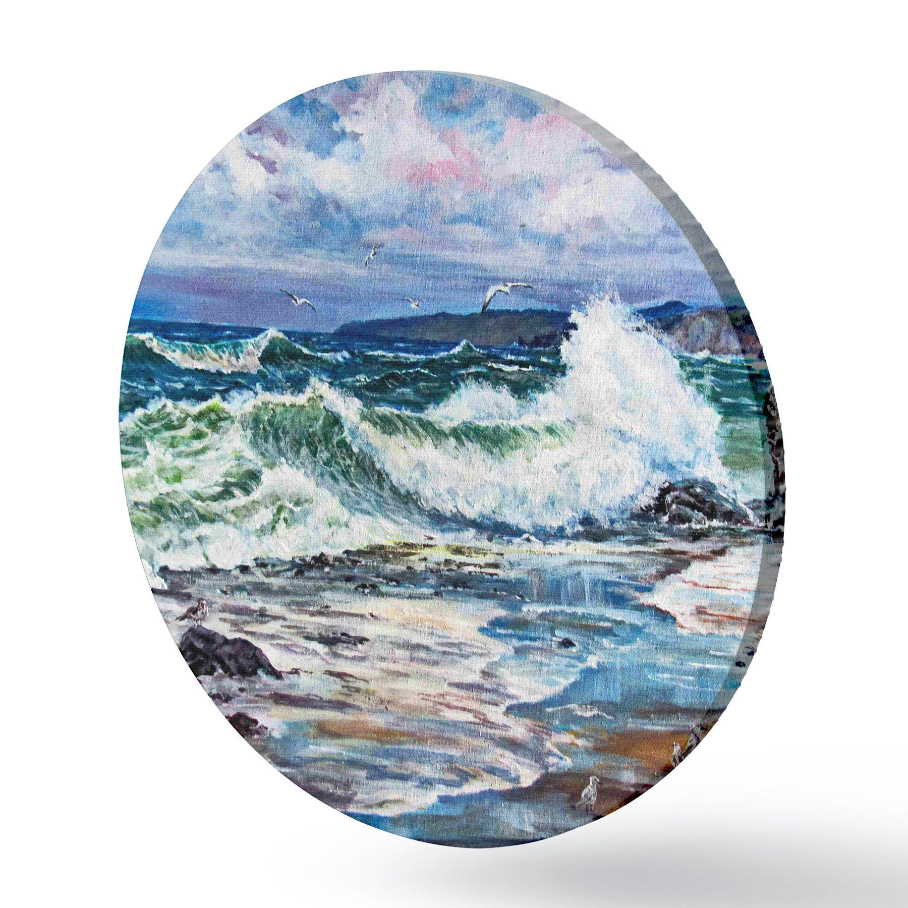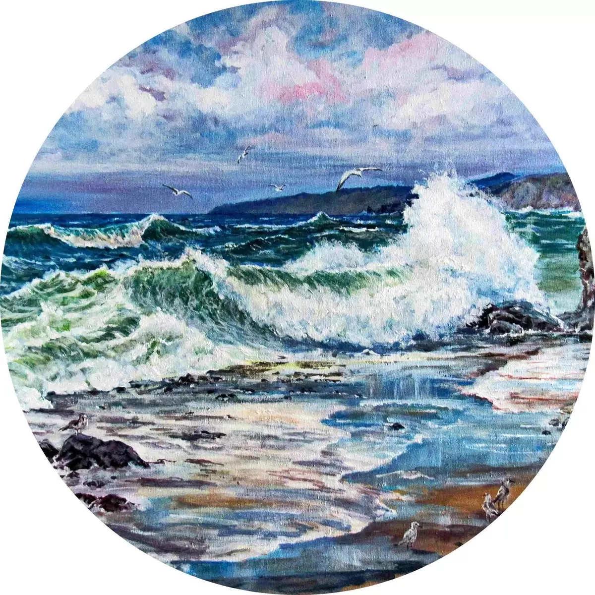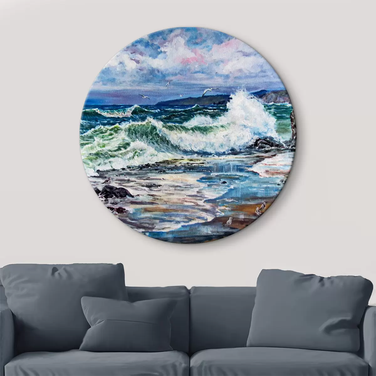 Runde Gemälde Ein Bild von Wellen, die an einen Strand schlagen r37785